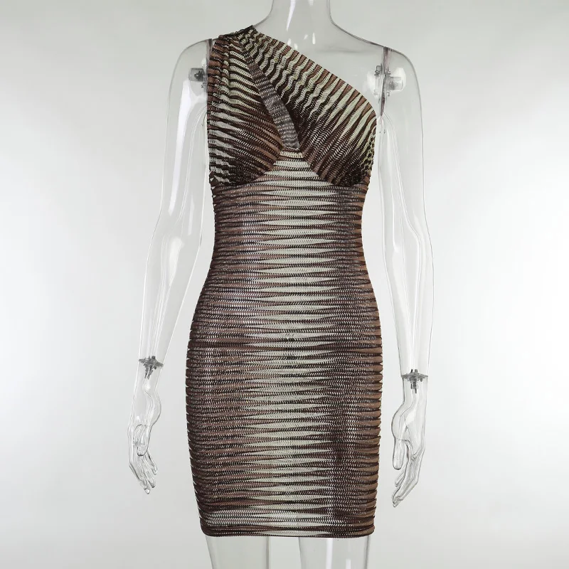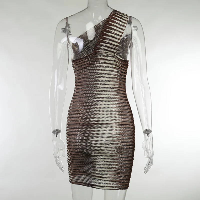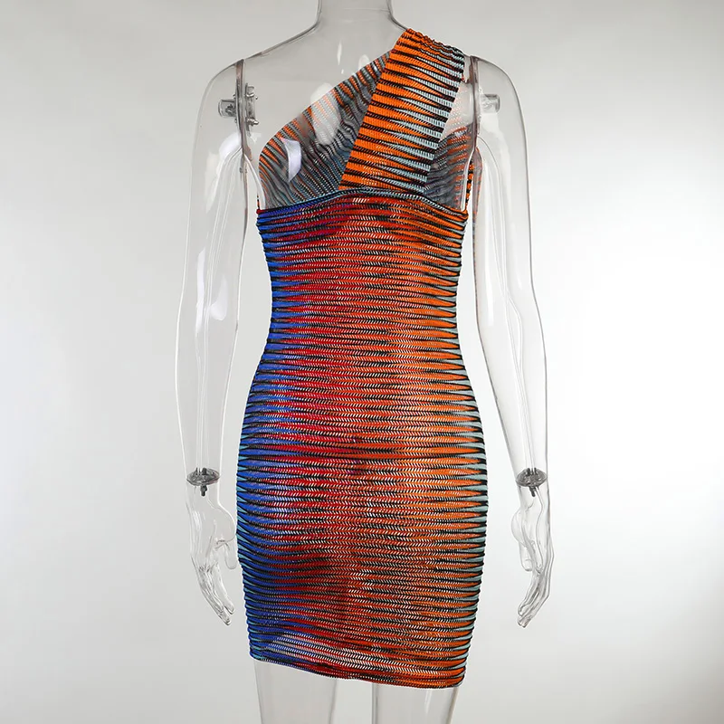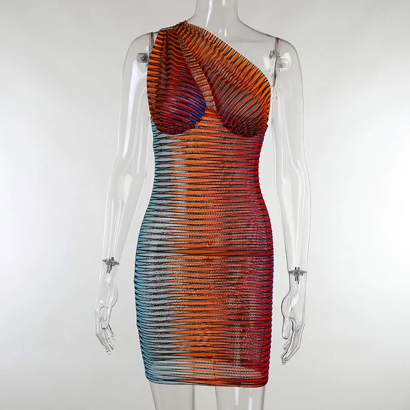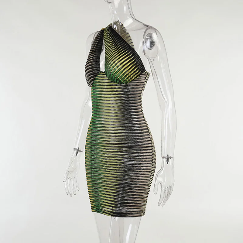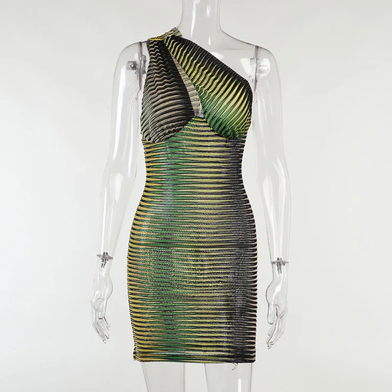 victoria’s vogue Summer Sleeveless Y2K Mini Dress For Women Stripe Backless One Shoulder Asymmetric Hollow Out Sexy Grils Dresses
