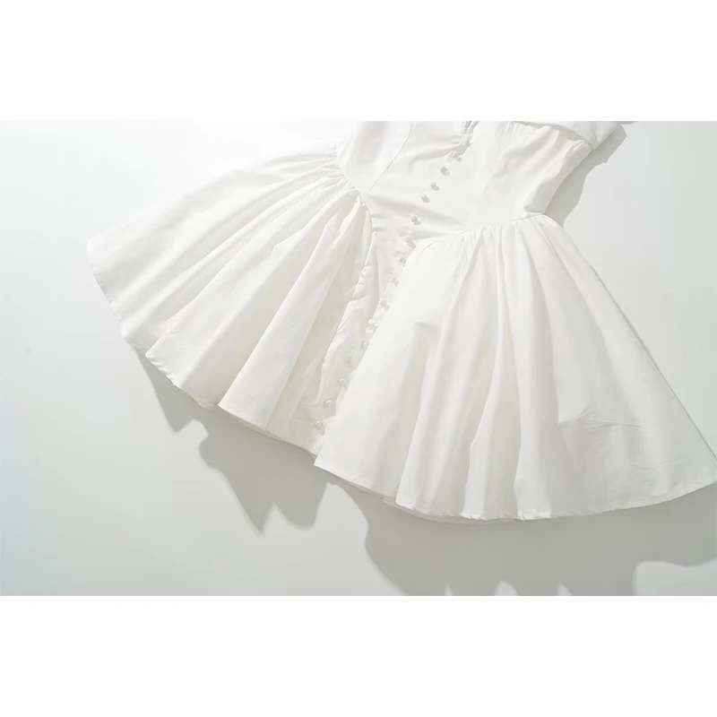 Victoria’s Vogue Summer Women Sexy Fit And Flare White Mini Dresses Short Sleeve Low Waist Elegant