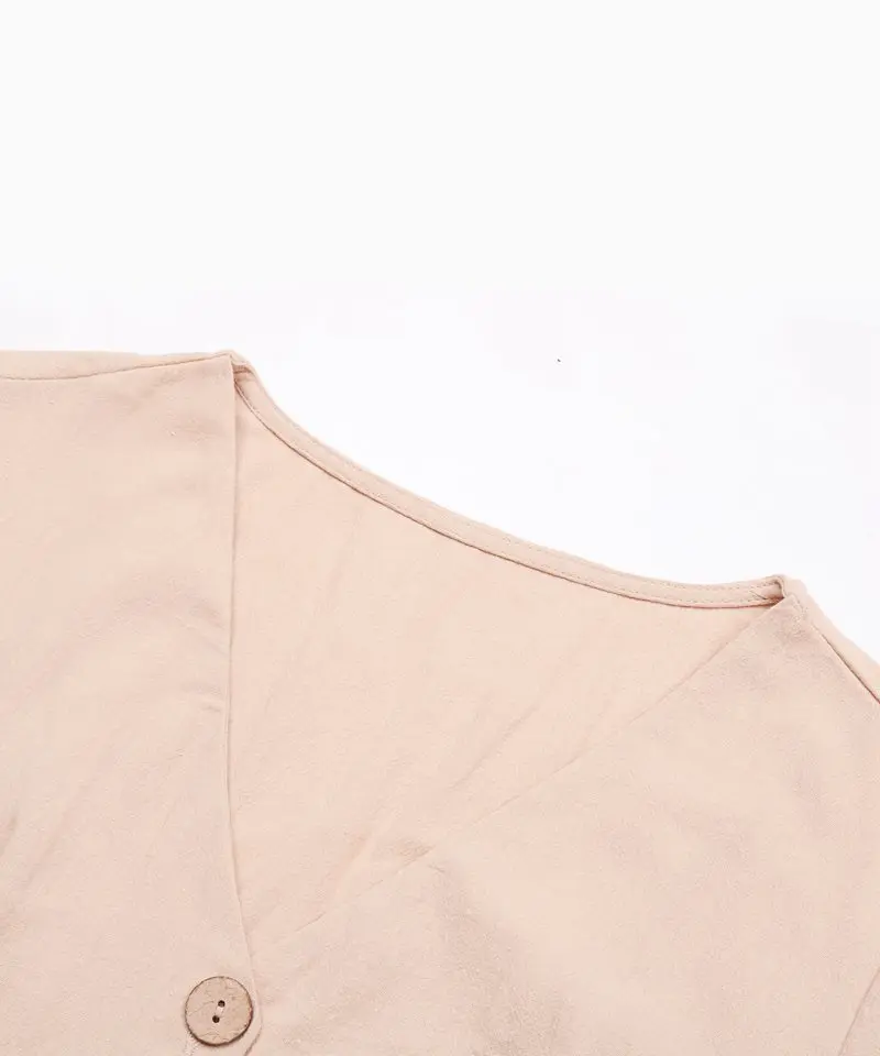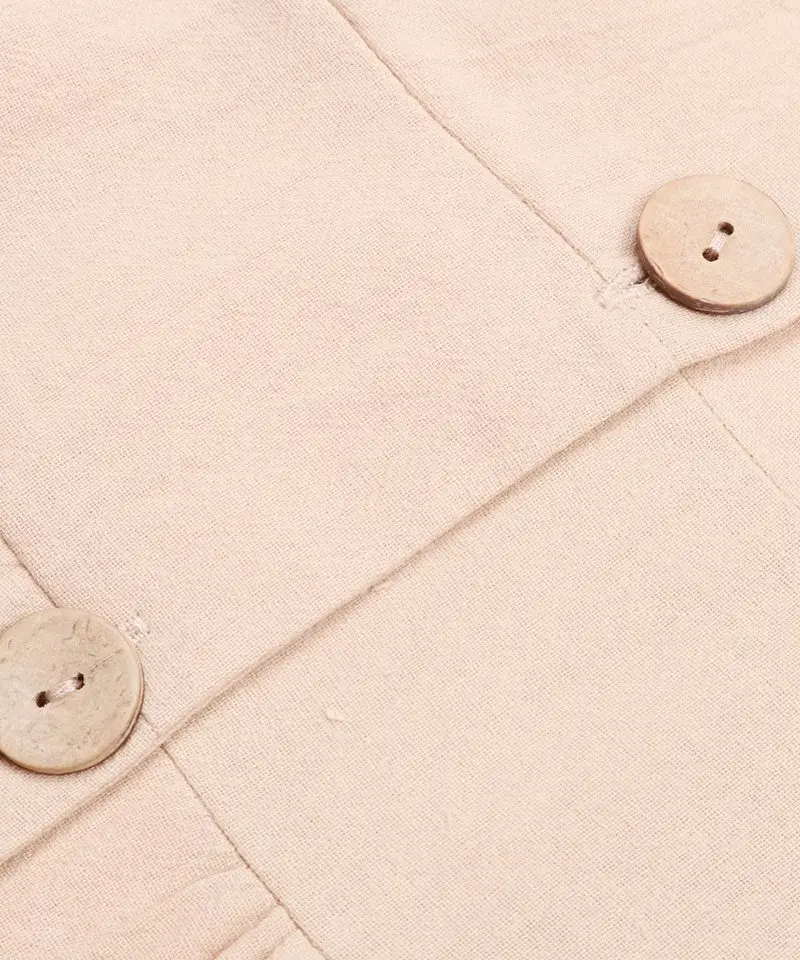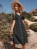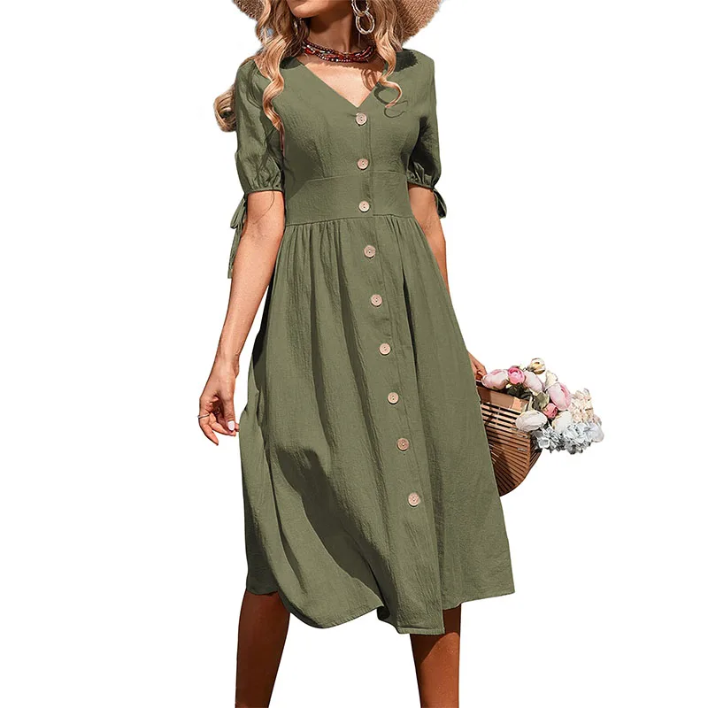 Victoria’s Vogue Summer Women’s Short Sleeve V Neck Solid Color Single Breasted Cotton Linen A Line Causal Dress