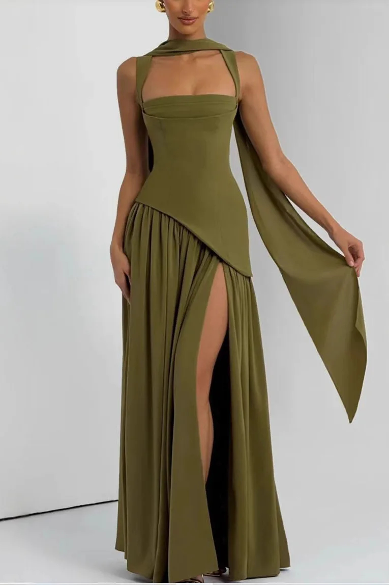 A flowy V-neck long dress that turns heads at birthdays, weddings, and graduations.