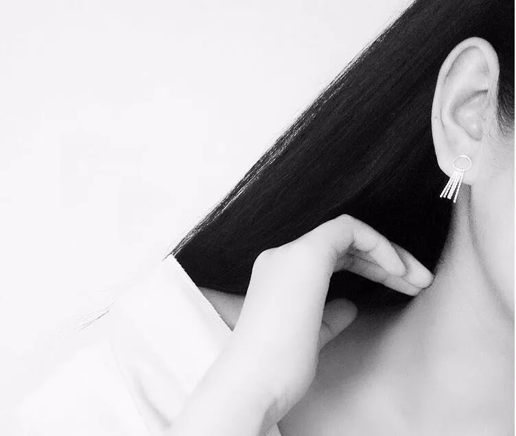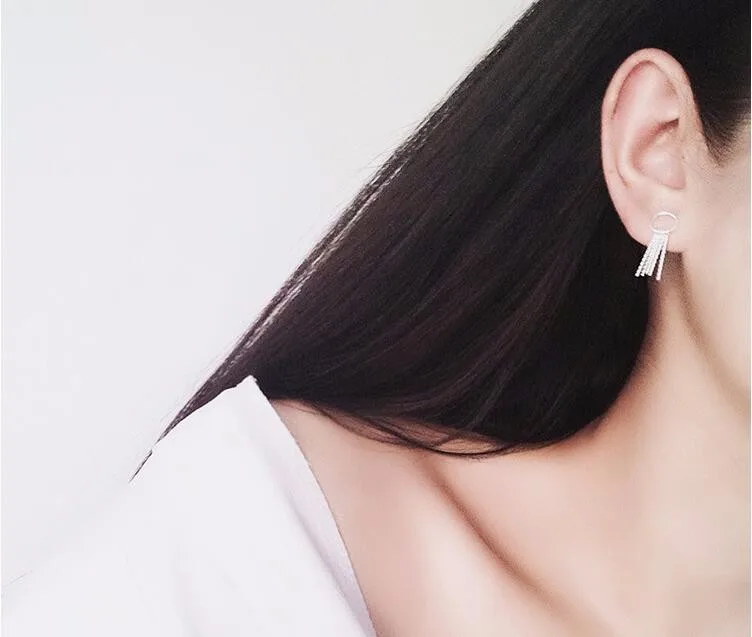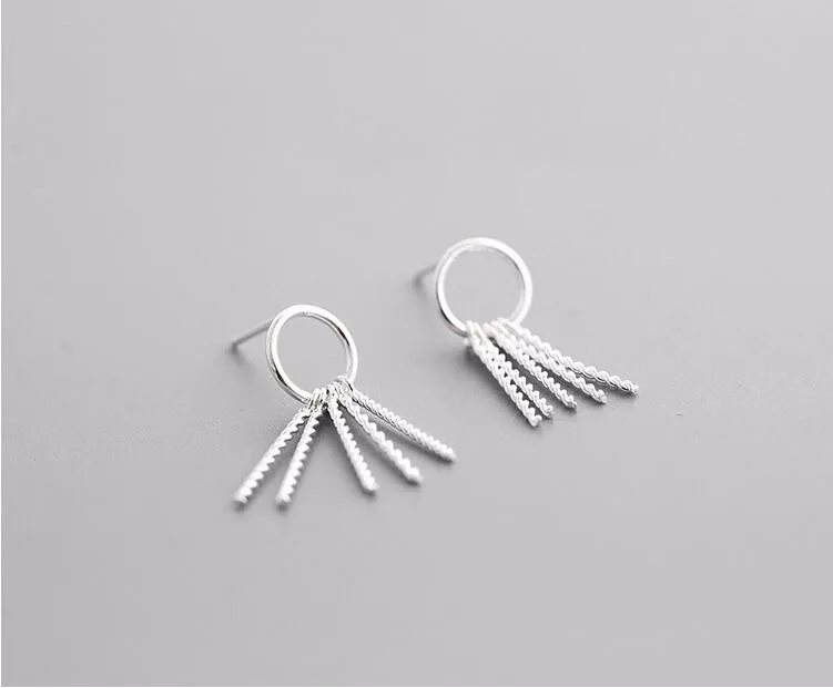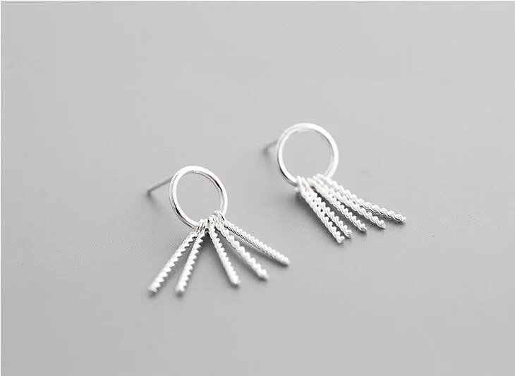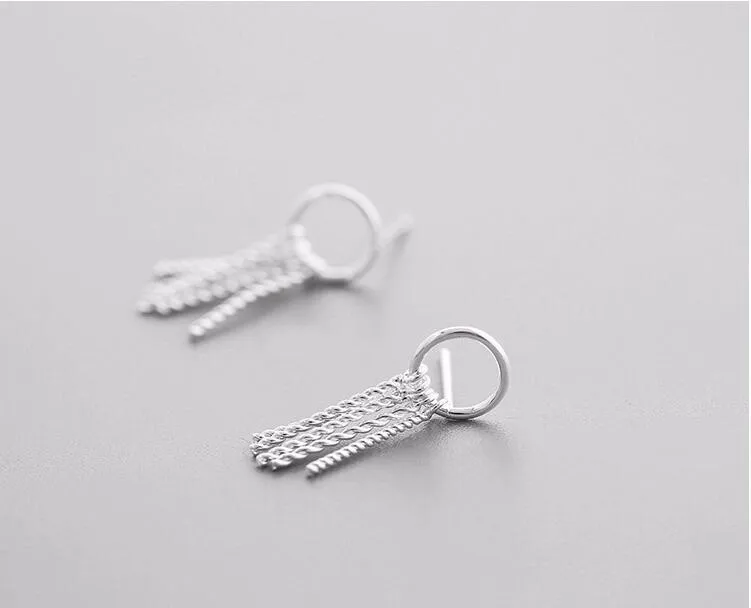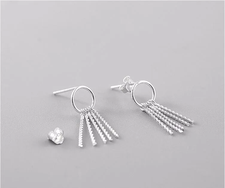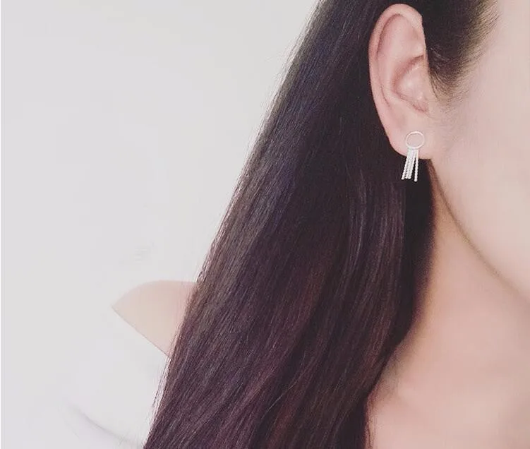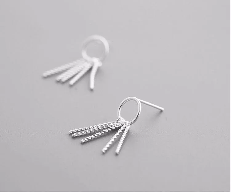 Victoria’s Vogue Sweet Simple Fashion 925 Sterling Silver Jewelry Temperament Cute Fringed Tassel Round Female Anti-Allergic Earrings