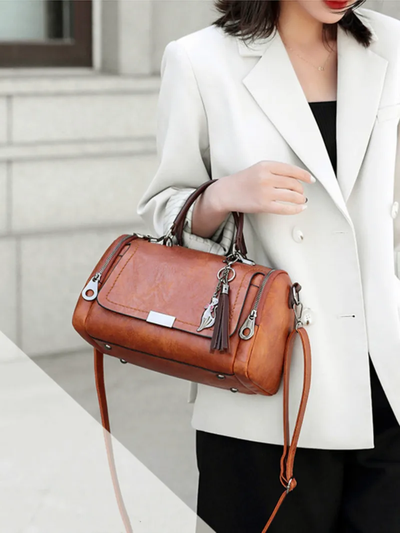 Victoria’s Vogue Tassel Decor Handbag, Women’s Large Capacity Shoulder Bag, Fashion Zipper Crossbody Bag With Removable Strap