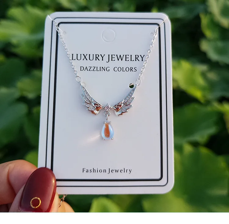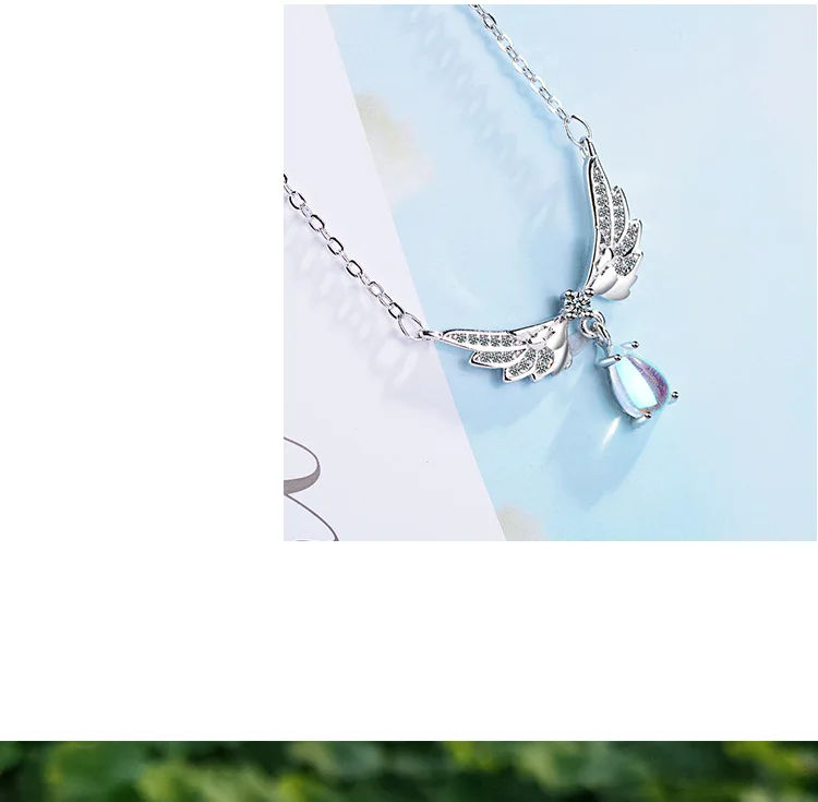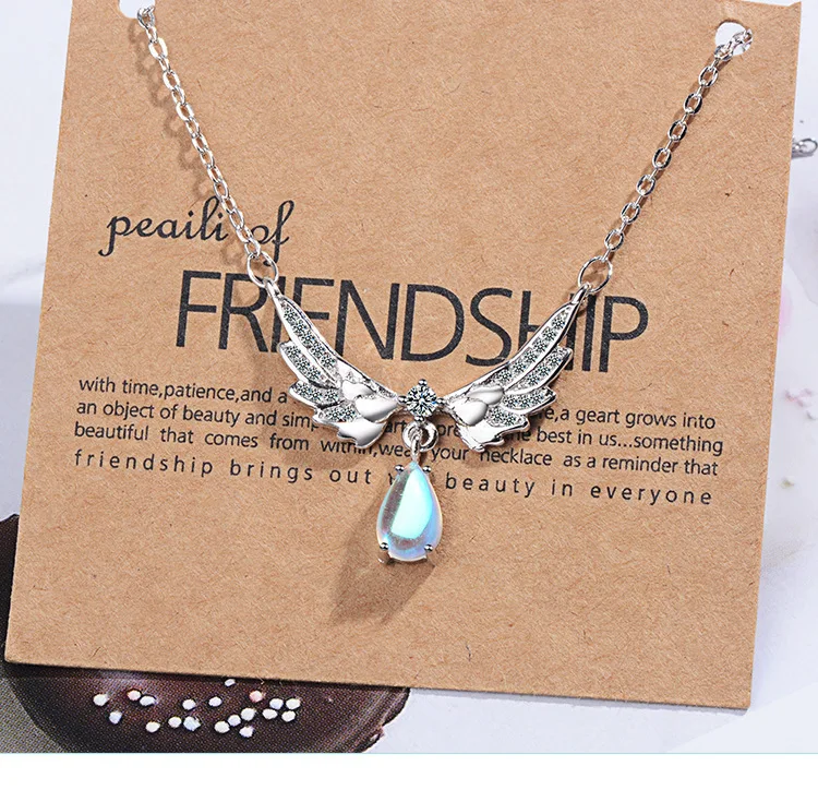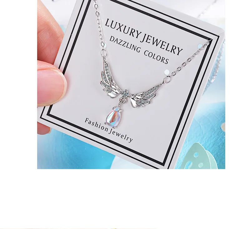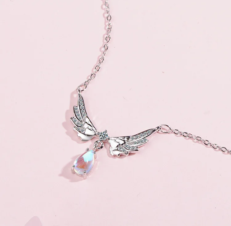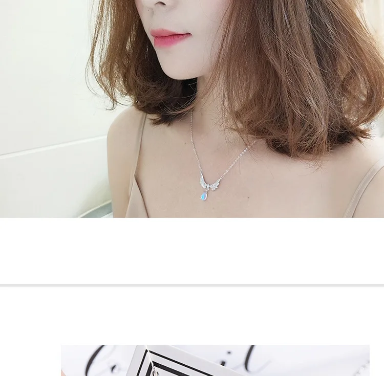 victoria’s vogue Temperament Exquisite New Fashion Angel Wings 925 Sterling Silver Jewelry Moonstone Wild Clavicle Chain Pendant Necklaces