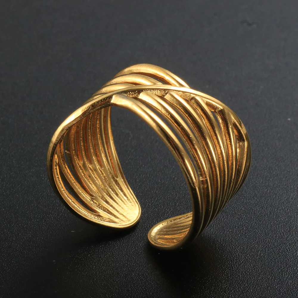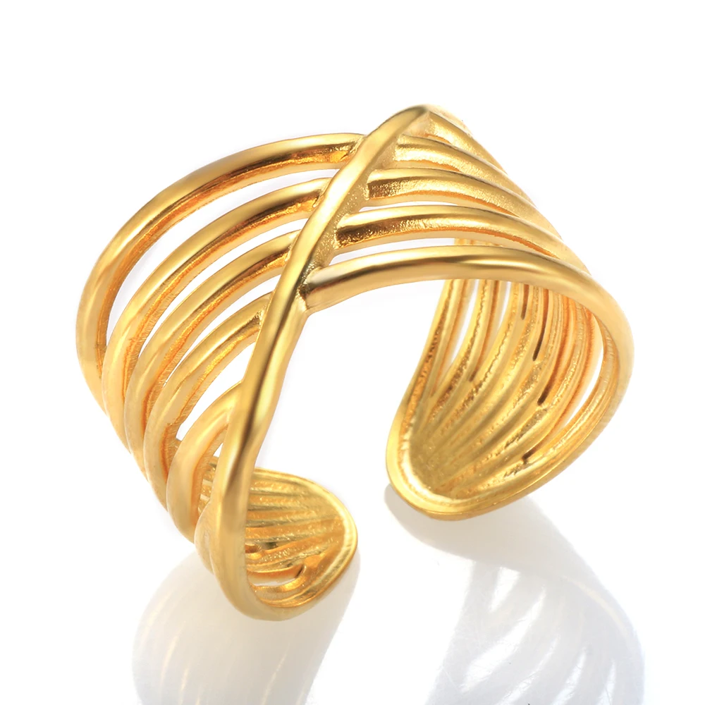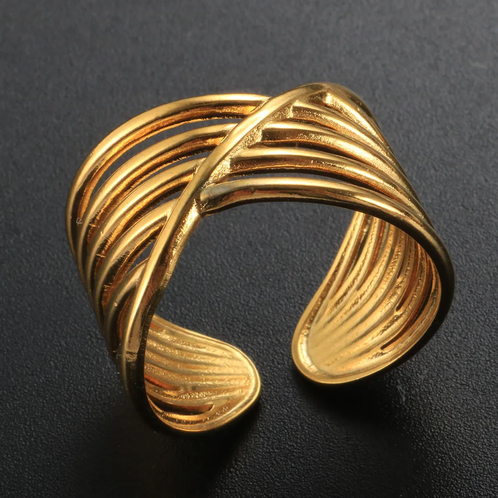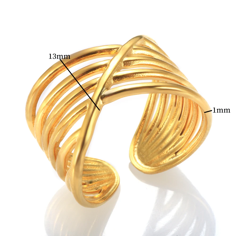 victoria’s vogue Trend Adjustable Rings Multi-layered Crossing Lines Opening For Women Men Couples Hollow Out Stainless Steel Punk Jewelry Gift