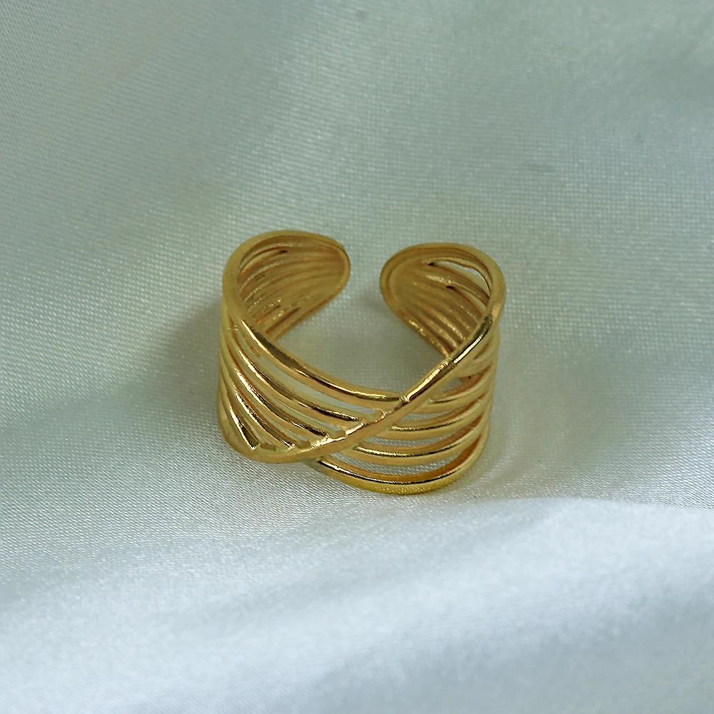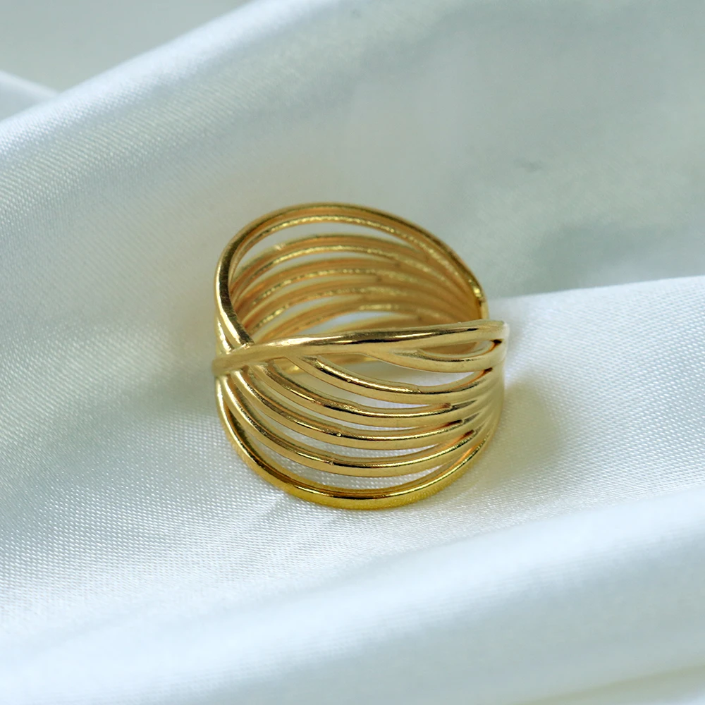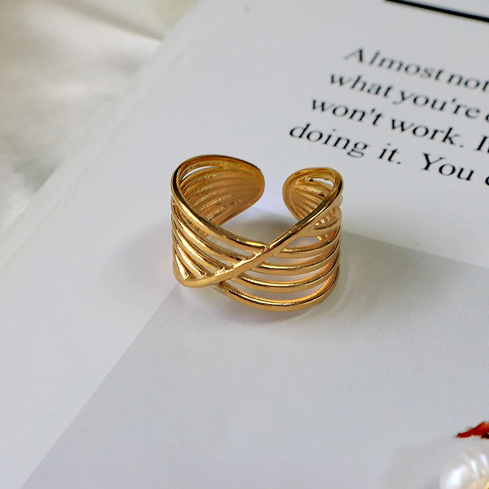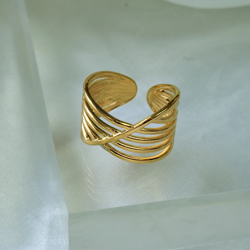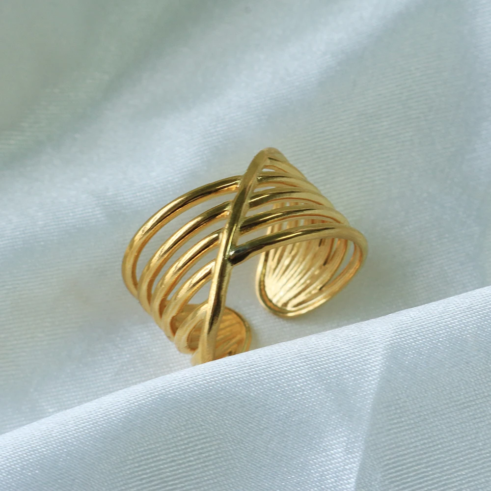 victoria’s vogue Trend Adjustable Rings Multi-layered Crossing Lines Opening For Women Men Couples Hollow Out Stainless Steel Punk Jewelry Gift