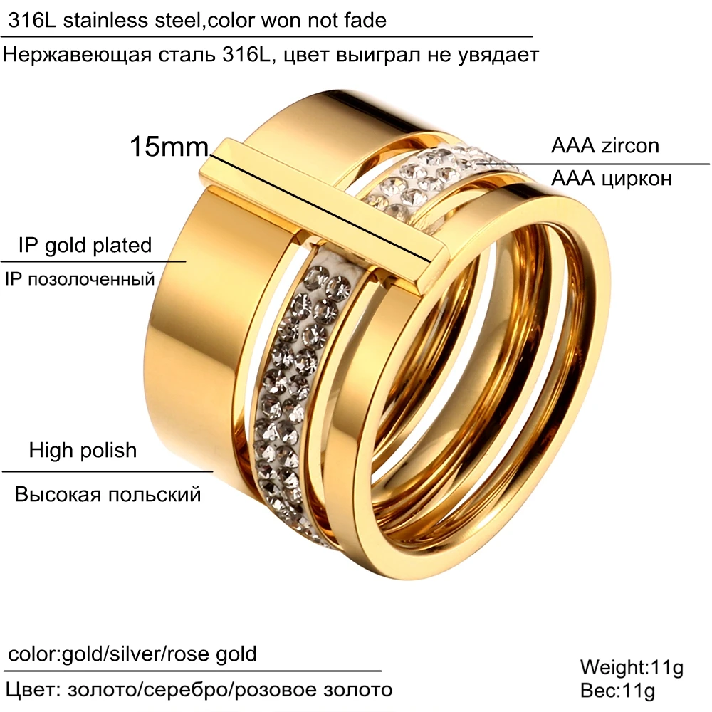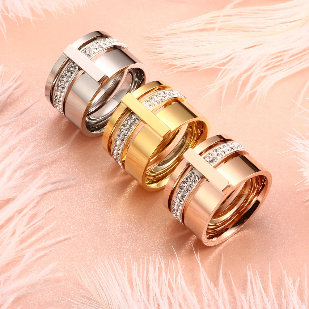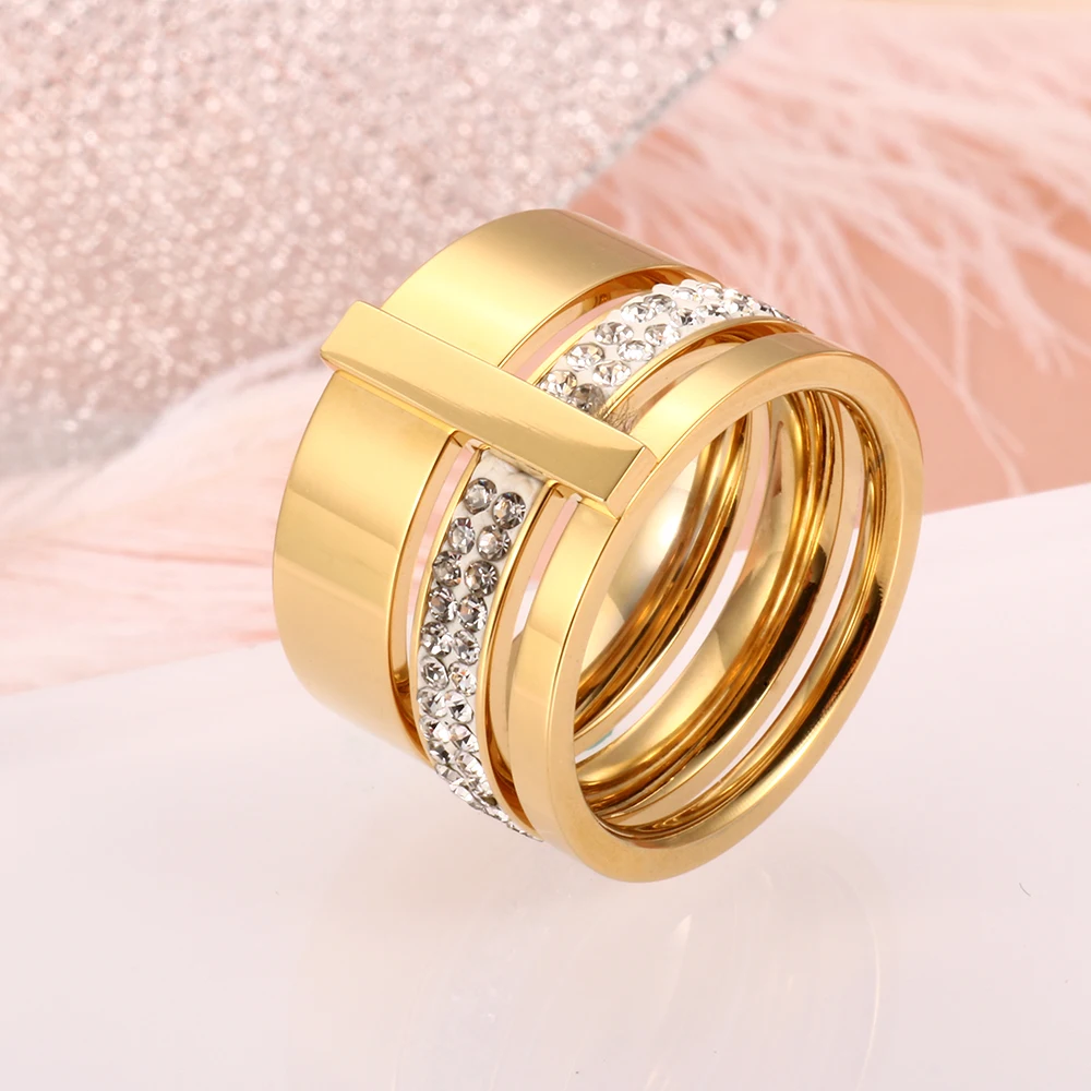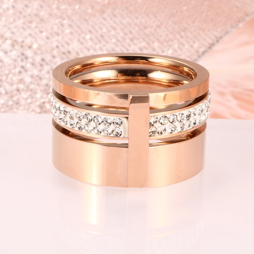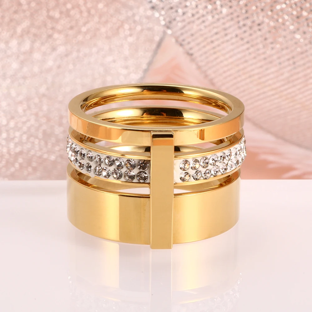 victoria’s vogue Trendy Brand Three Layers 316L Stainless Steel Crystal Rings For Women Rings Jewelry Engagement Gift Female Rings