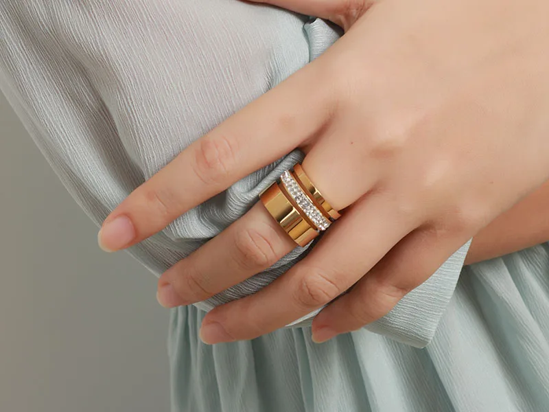 Name: Trendy Brand Three Layers 316L Stainless Steel Crystal Rings