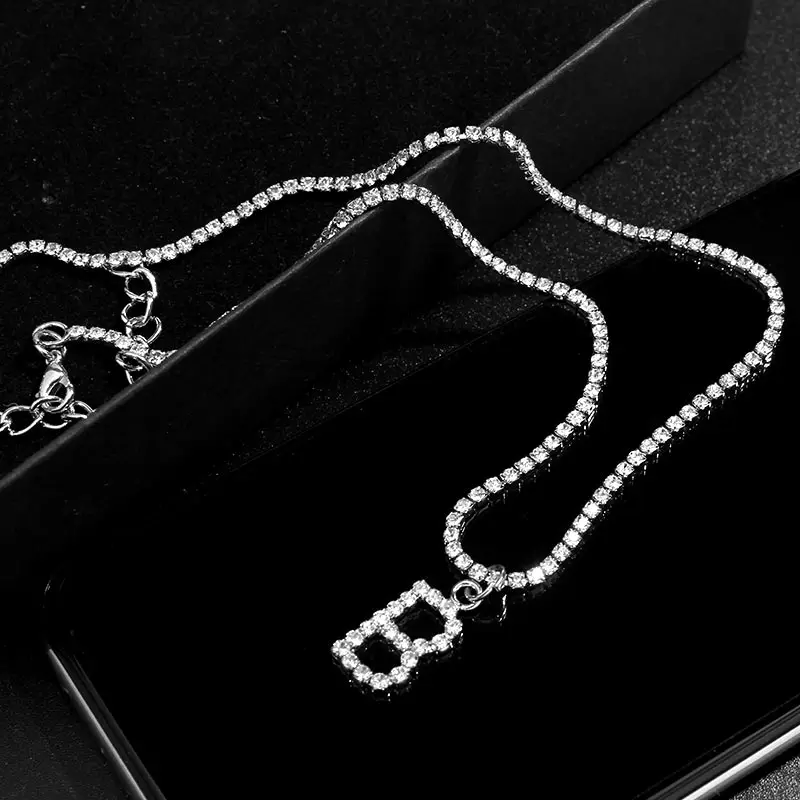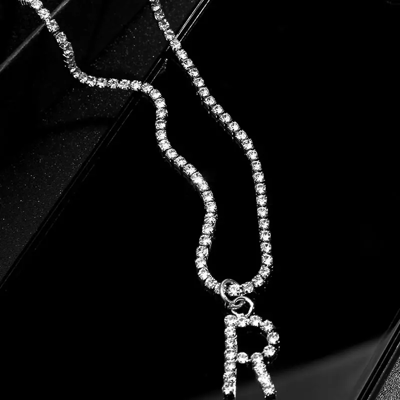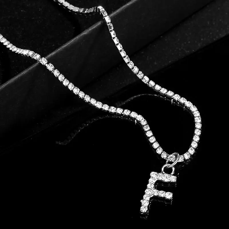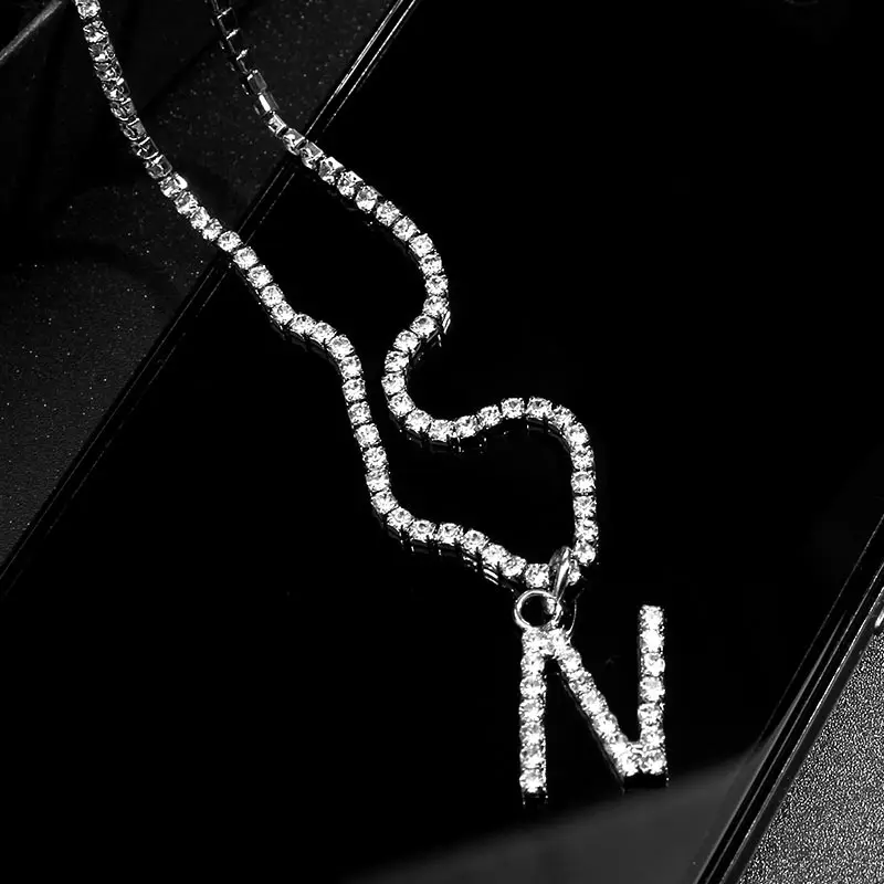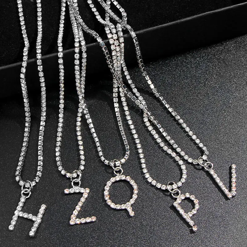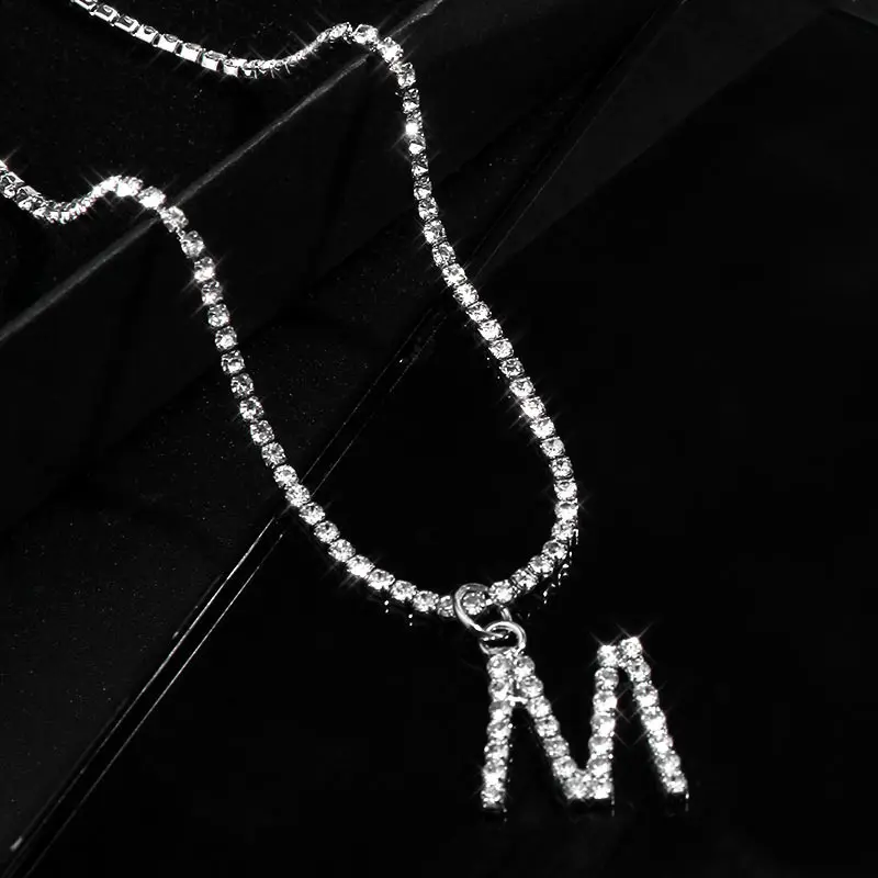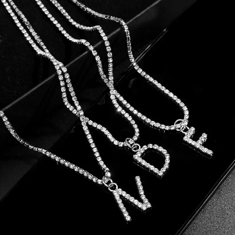 victoria’s vogue Trendy New Crystal 26 Letter Pendant Necklace for Women Shiny Rhinestone Tennis Chain Necklace Statement Jewelry Party Gift