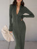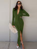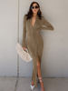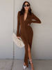 victoria’s vogue Turn Down Collar Knitted Dresses Women 2022 Spring Sexy Long Sleeve High Waist Single Breasted Side Split Evening Dress