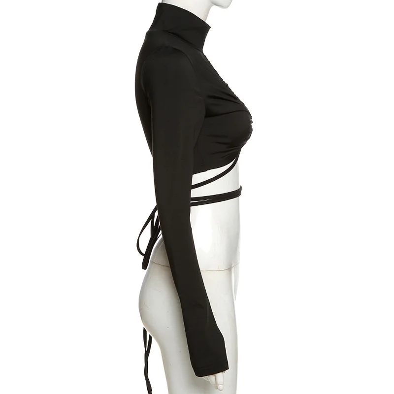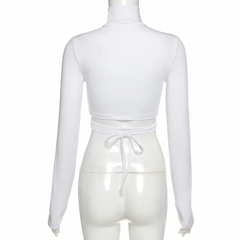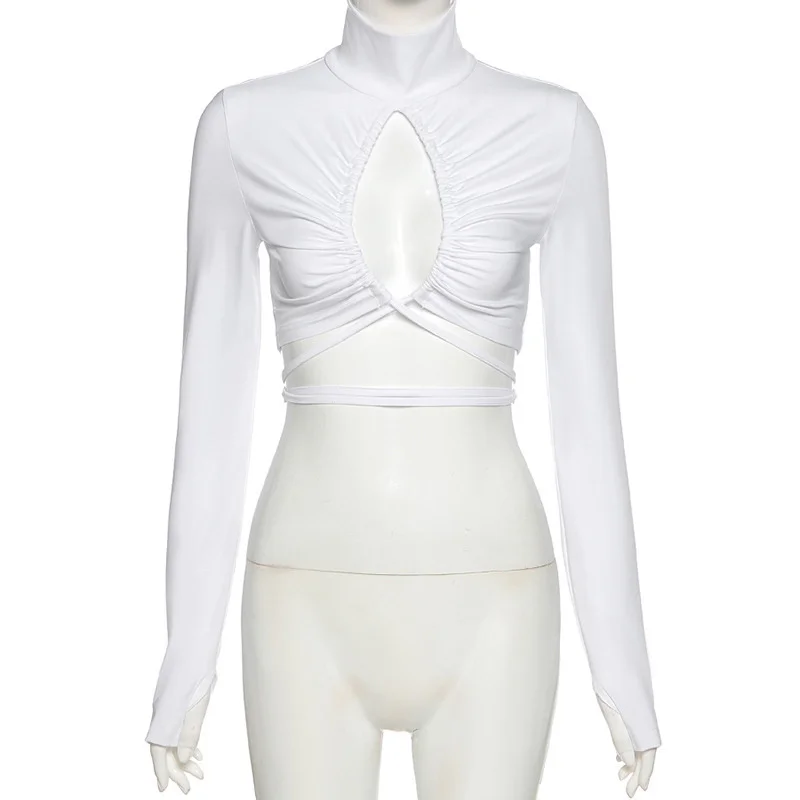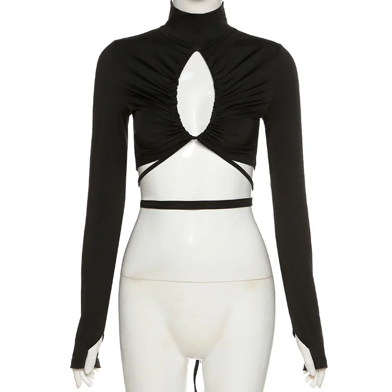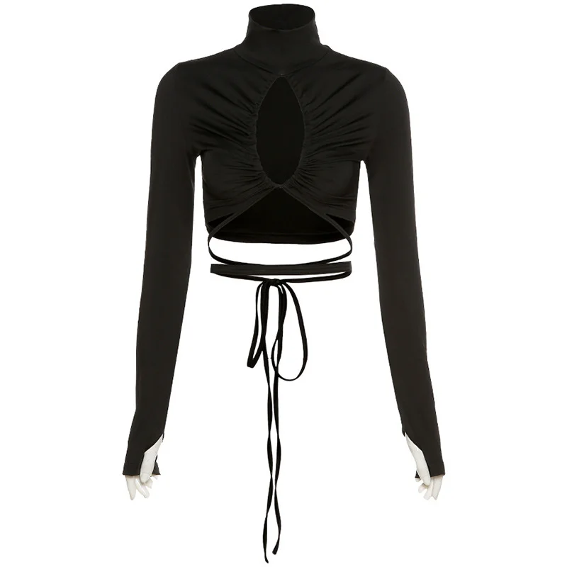 victoria’s vogue Turtleneck Hollow Out T Shirts Women 2022 Spring Sexy Long Sleeve Elegant Female Crop Tops Solid Casual Tee Shirt