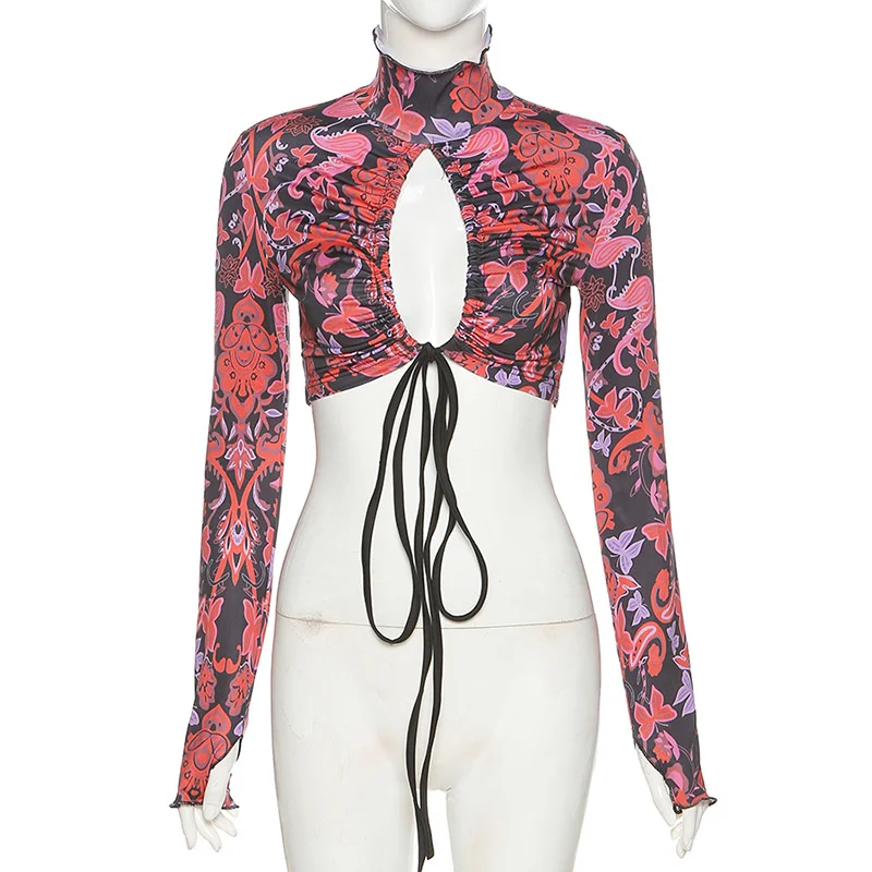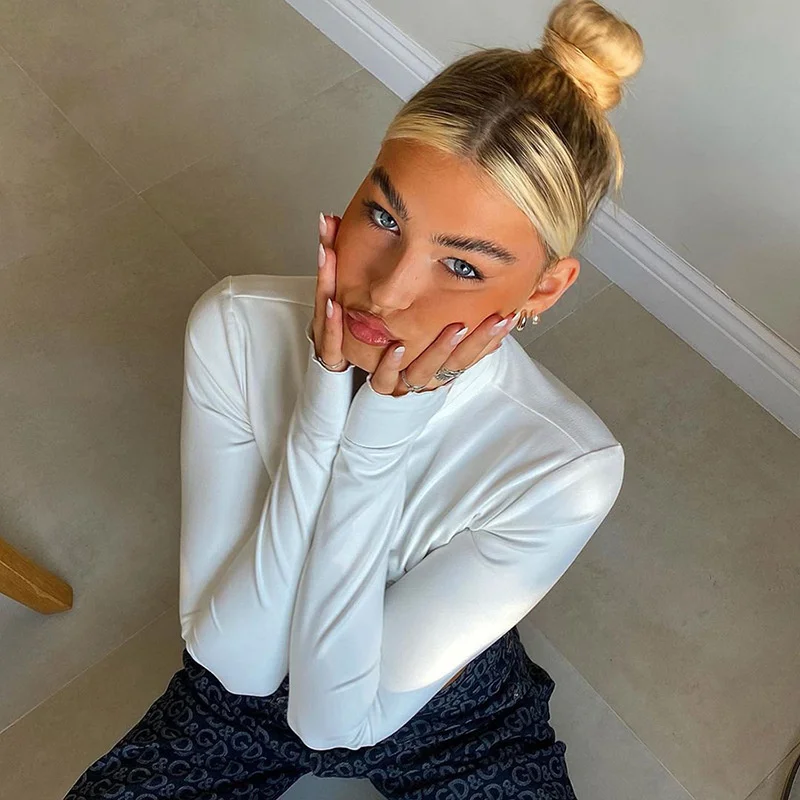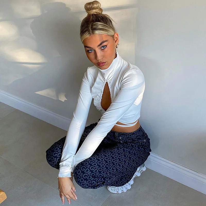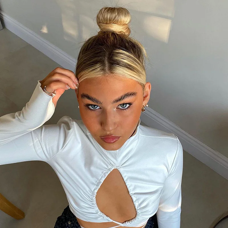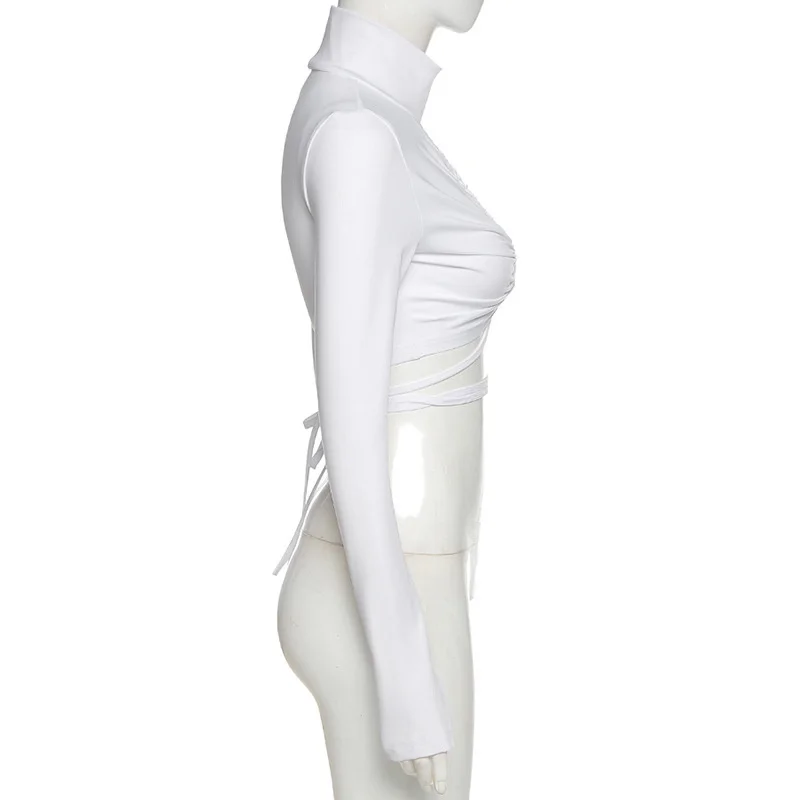victoria’s vogue Turtleneck Hollow Out T Shirts Women 2022 Spring Sexy Long Sleeve Elegant Female Crop Tops Solid Casual Tee Shirt