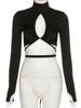 victoria’s vogue Turtleneck Hollow Out T Shirts Women 2022 Spring Sexy Long Sleeve Elegant Female Crop Tops Solid Casual Tee Shirt