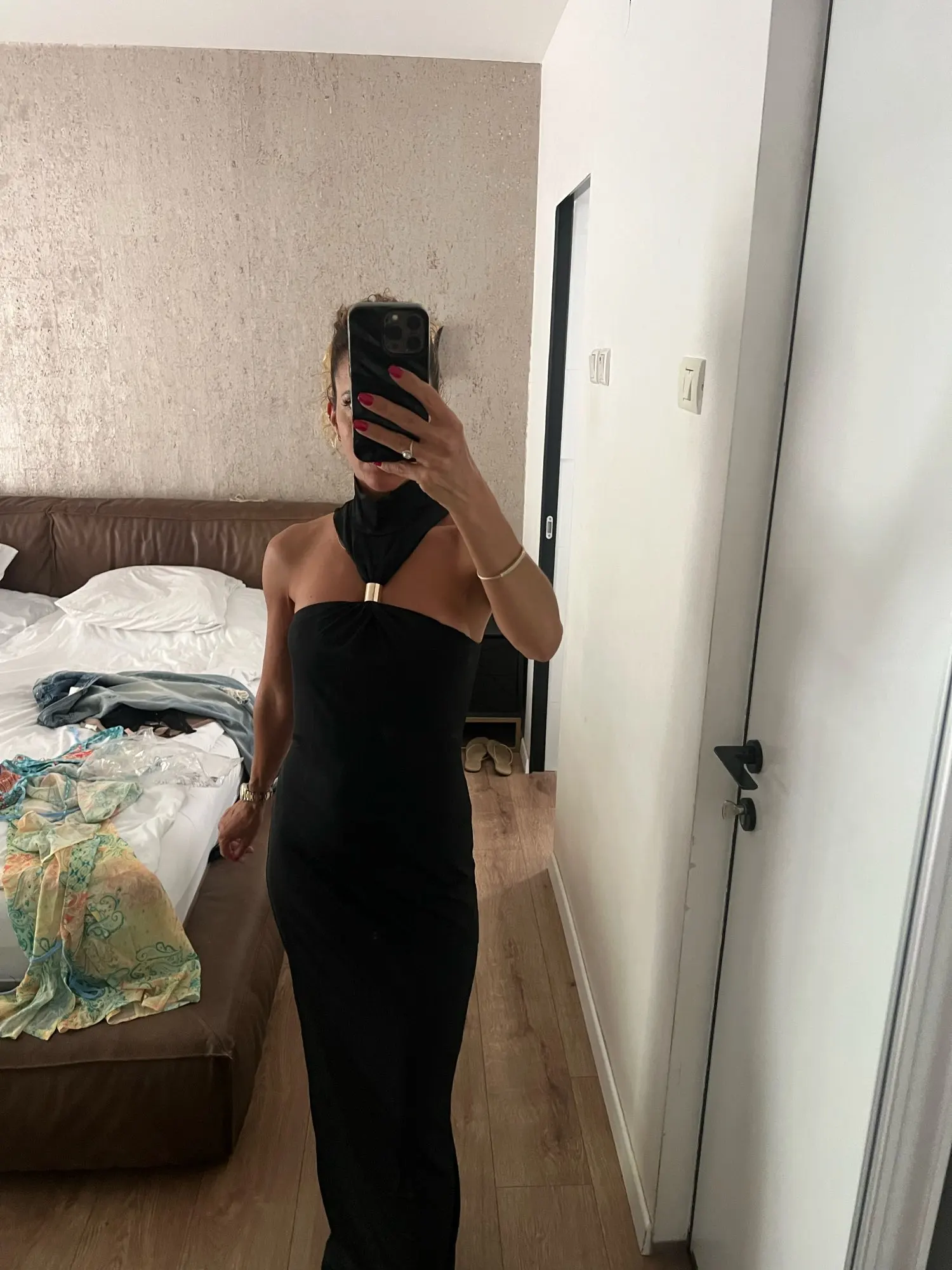 Crafted with a premium knitted fabric, this maxi dress offers a flattering high-waist fit that enhances your natural curves while providing warmth and comfort. The sleeveless and strapless-inspired structure highlights the shoulders beautifully, while the metal buckle detail adds a luxurious and modern fashion accent. The bodycon fit sculpts your figure, ensuring a sleek and confident silhouette for any occasion.