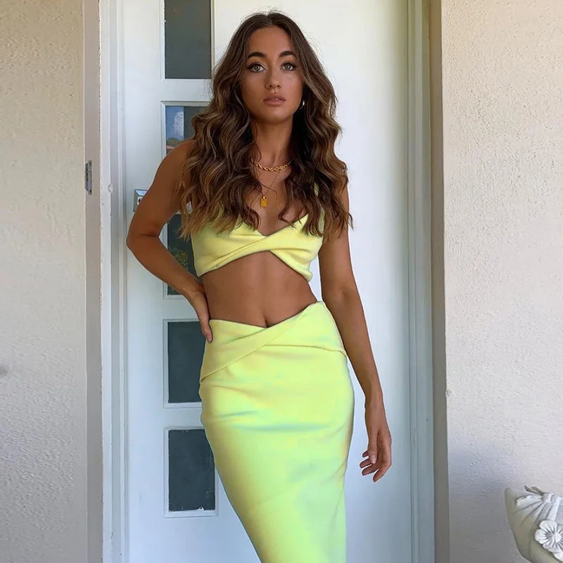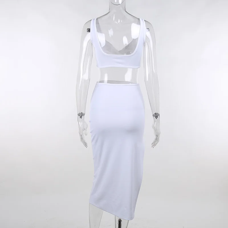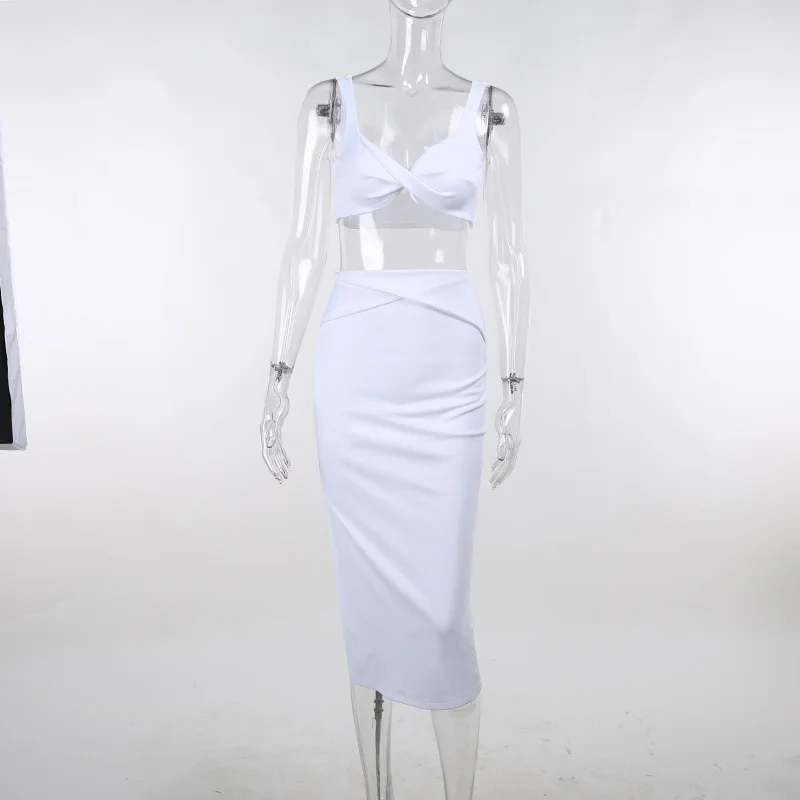 victoria’s vogue Two Piece Set Women Summer Ankle-Length Skirts Women Crop Top Sexy Party Outfit Elegant Solid Hollow Out Skirts Sets