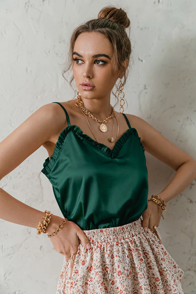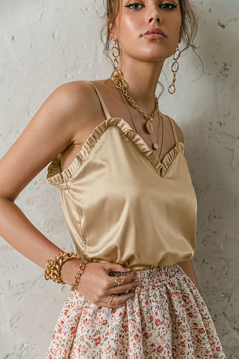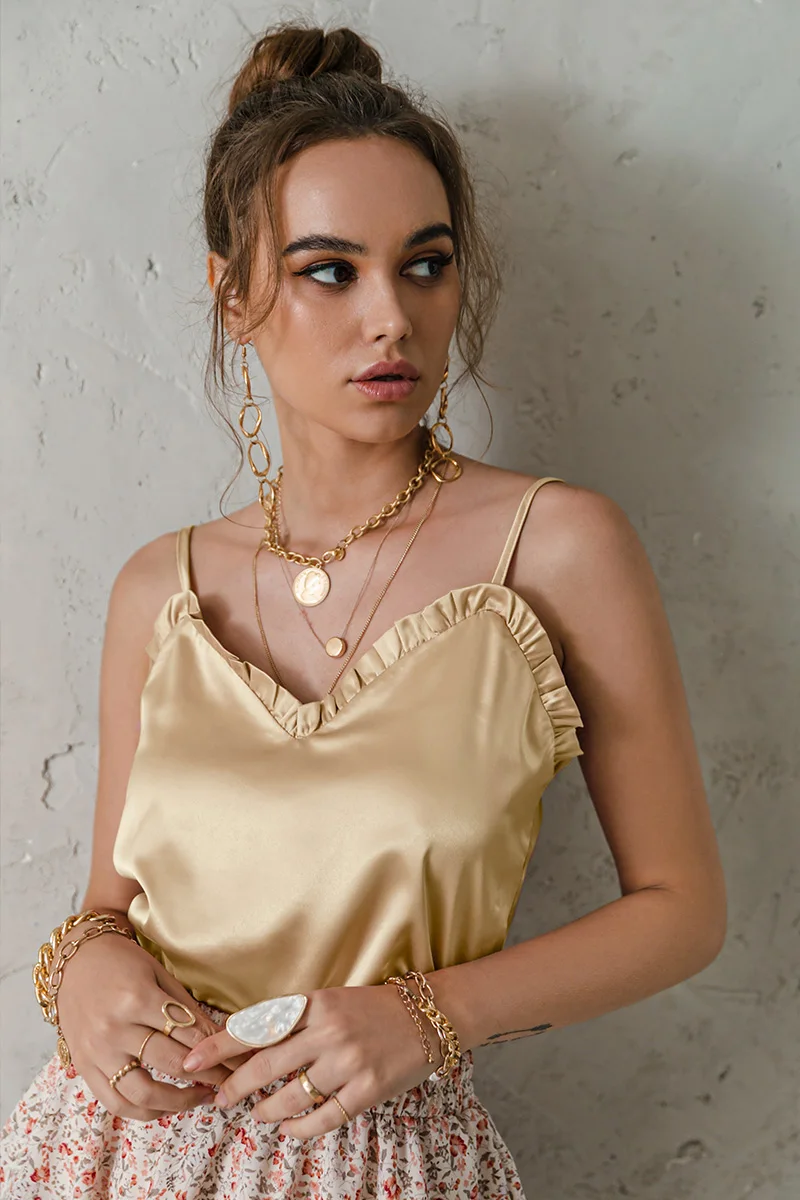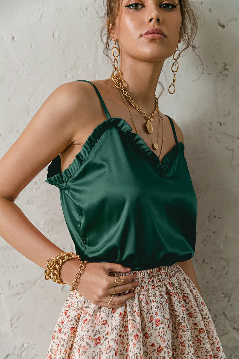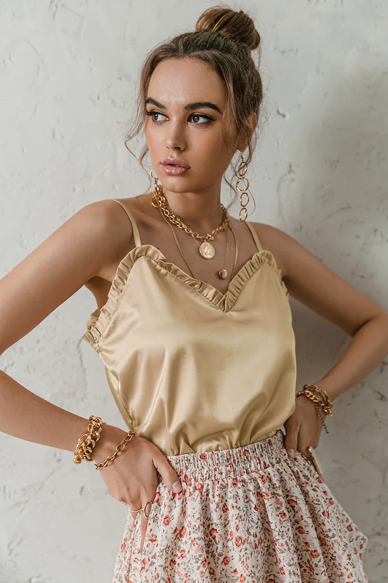 victoria’s vogue V-neck Sexy Satin ruffle Female Tanks Pink Loose Basic Sleeveless Office Lady Camis Fashion Women’s Summer Sling Top