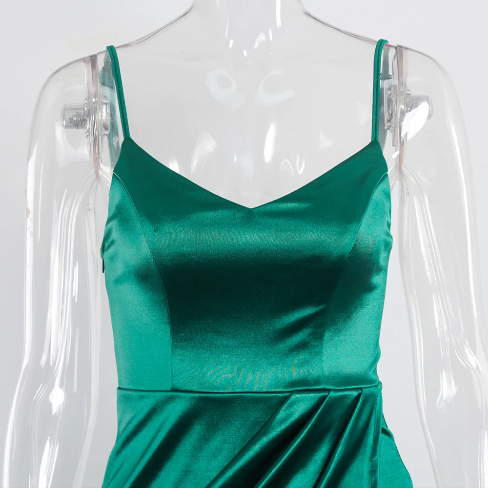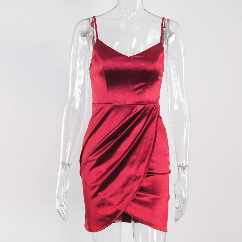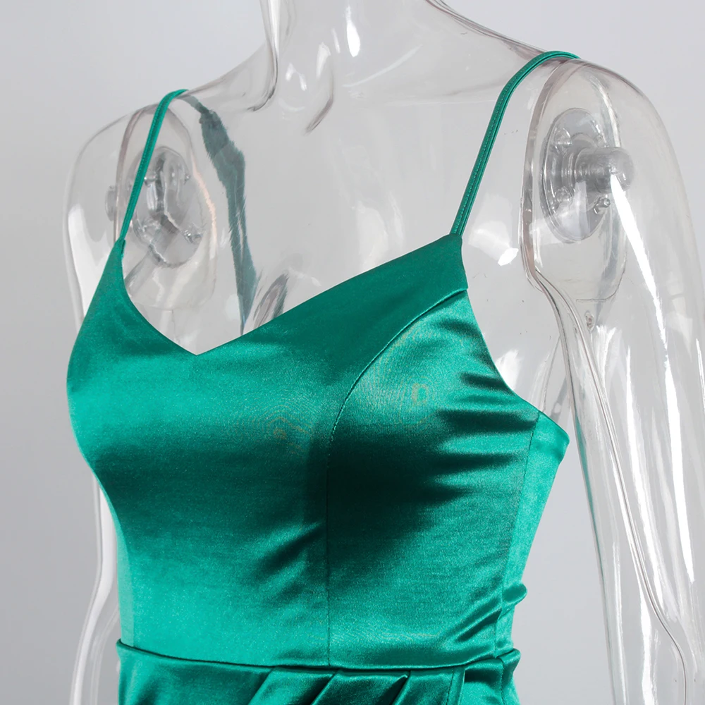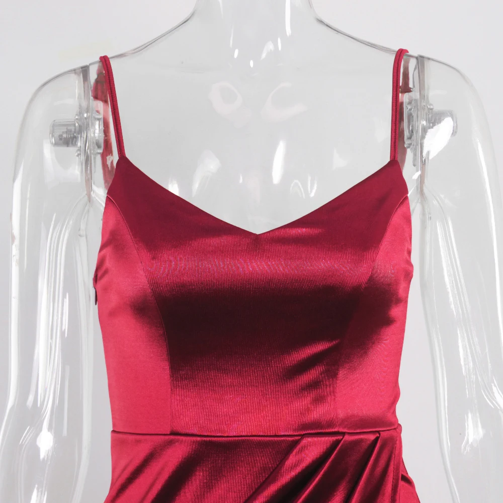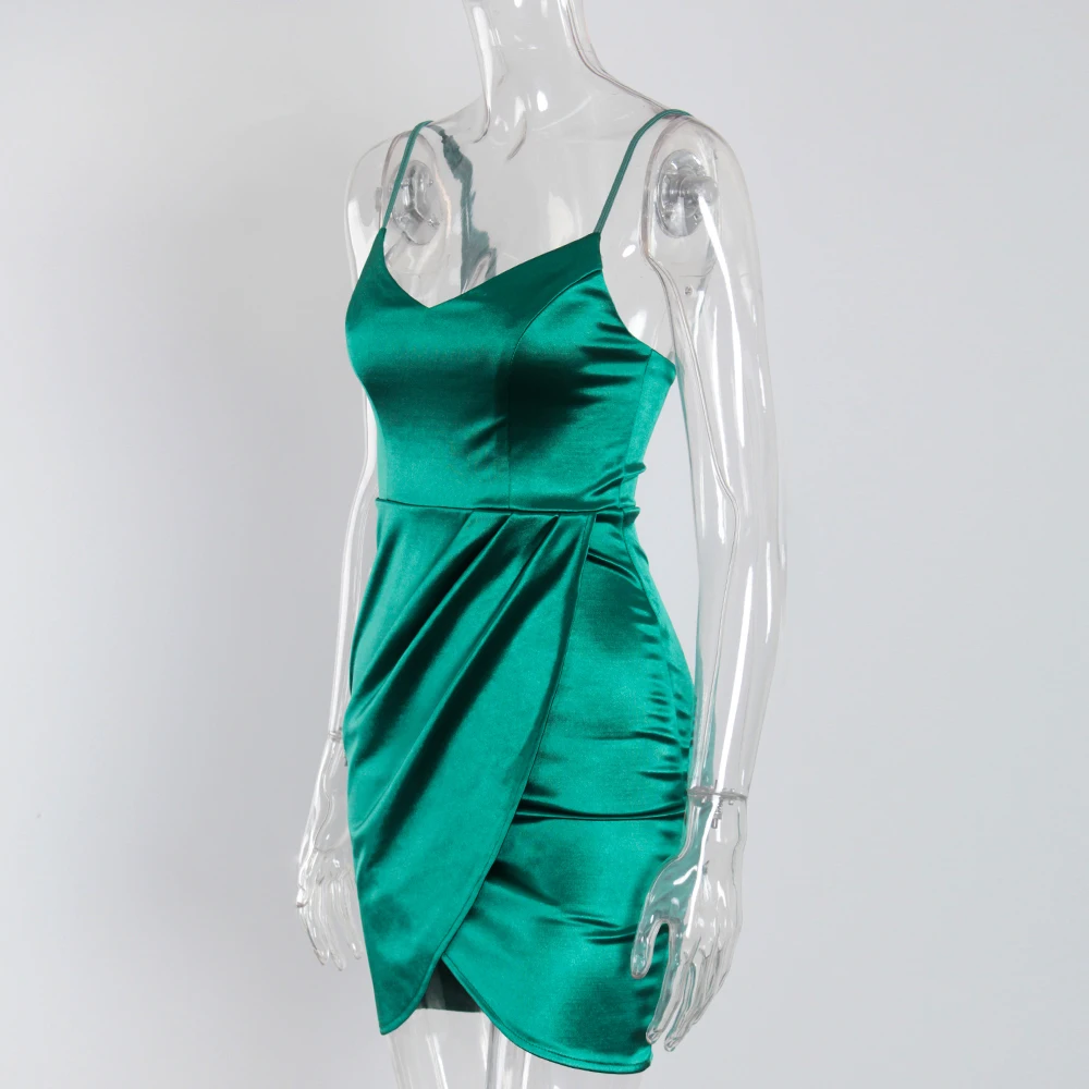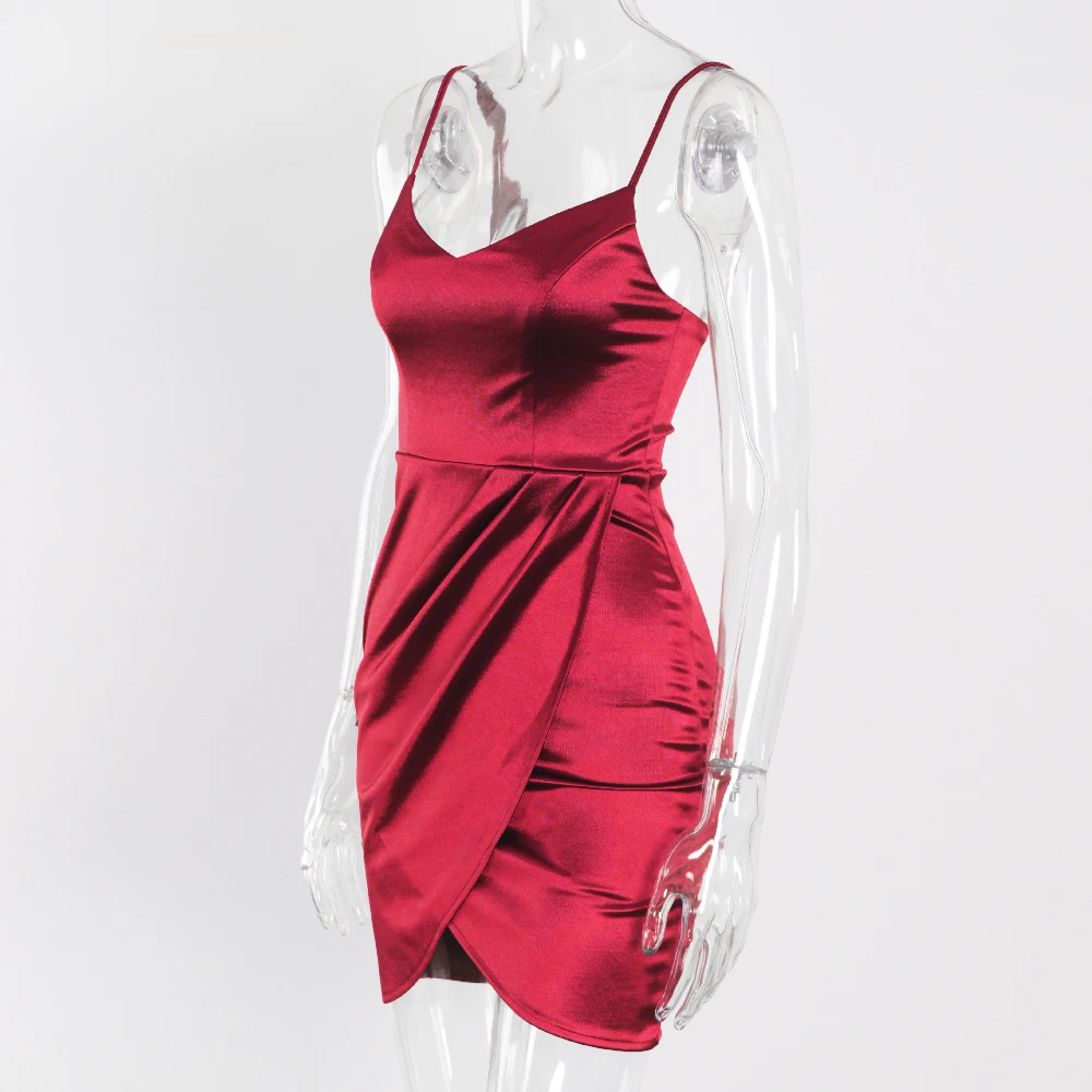 victoria’s vogue V Neck Sleeveless Short Satin Mini Dress Bodycon Stretch Backless Ruched Split Spaghetti Straps Party Clubbing Vestidos