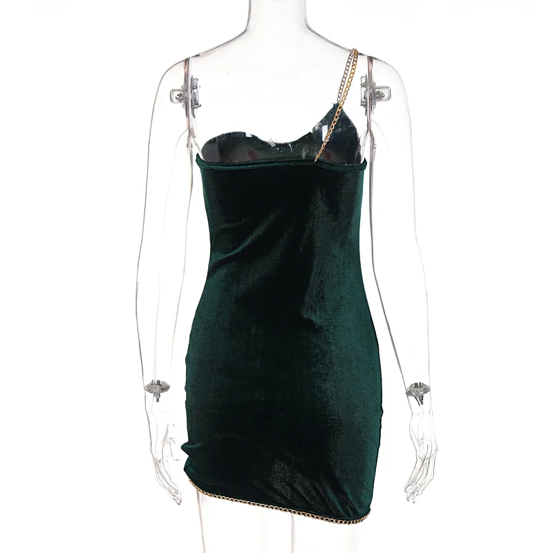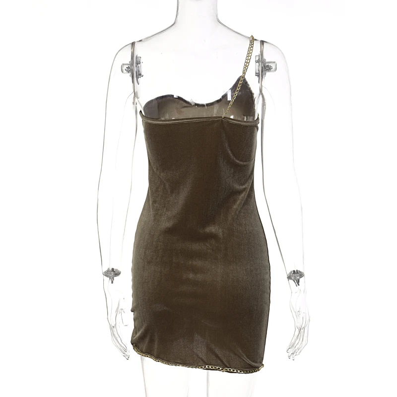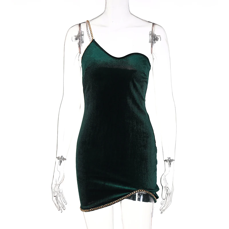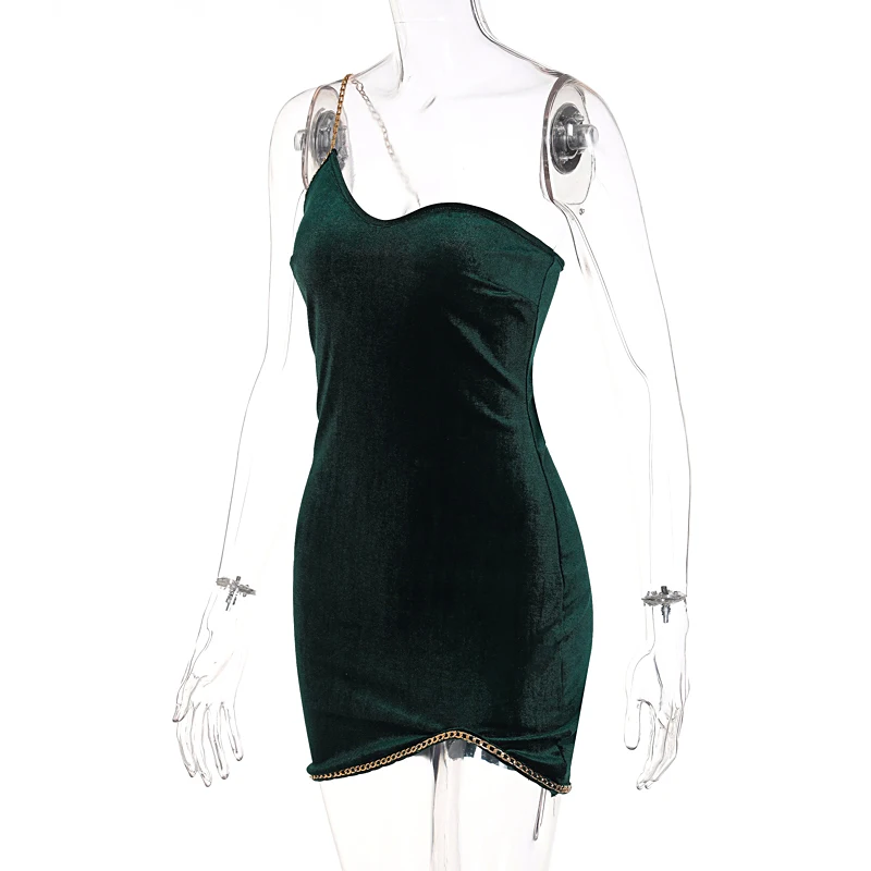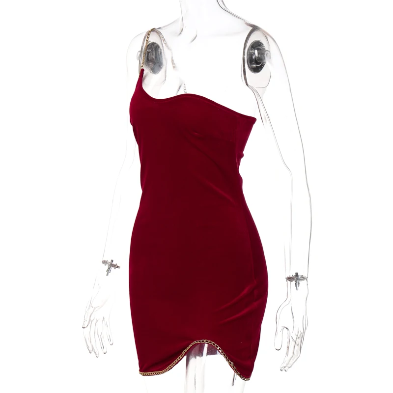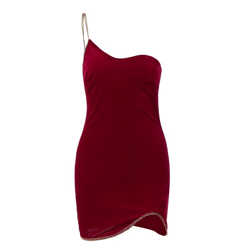victoria’s vogue Velvet Metal Chain Decoration Slip Irregular Mini Dress 2022 New Year Bodycon Evening Party Elegant Y2K One Shoulder