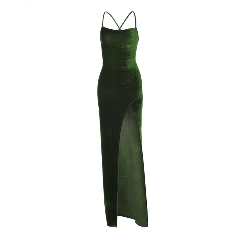 victoria’s vogue Velvet Slip Swinging Collar Sleeveless Backless Slit Maxi Dress Solid 2021 Fall Bodycon Evening Party Elegant Vestido
