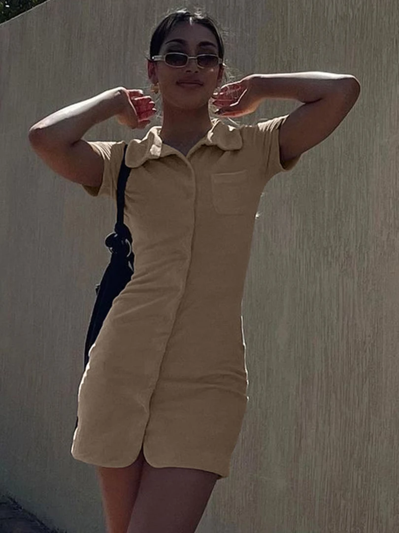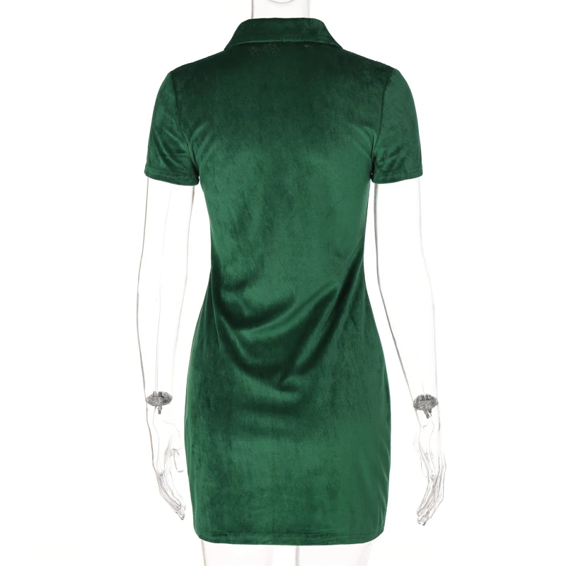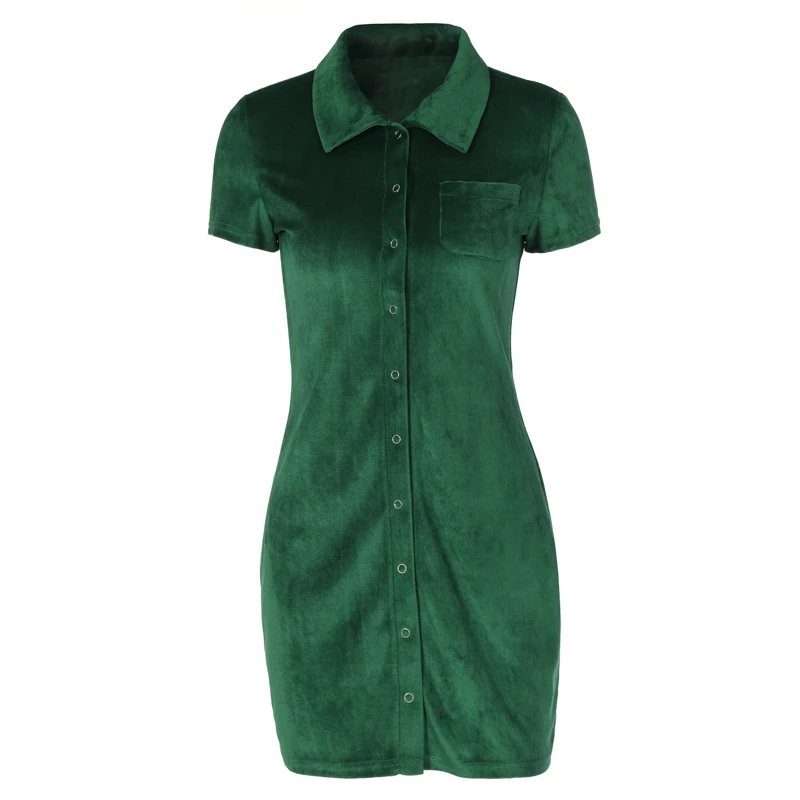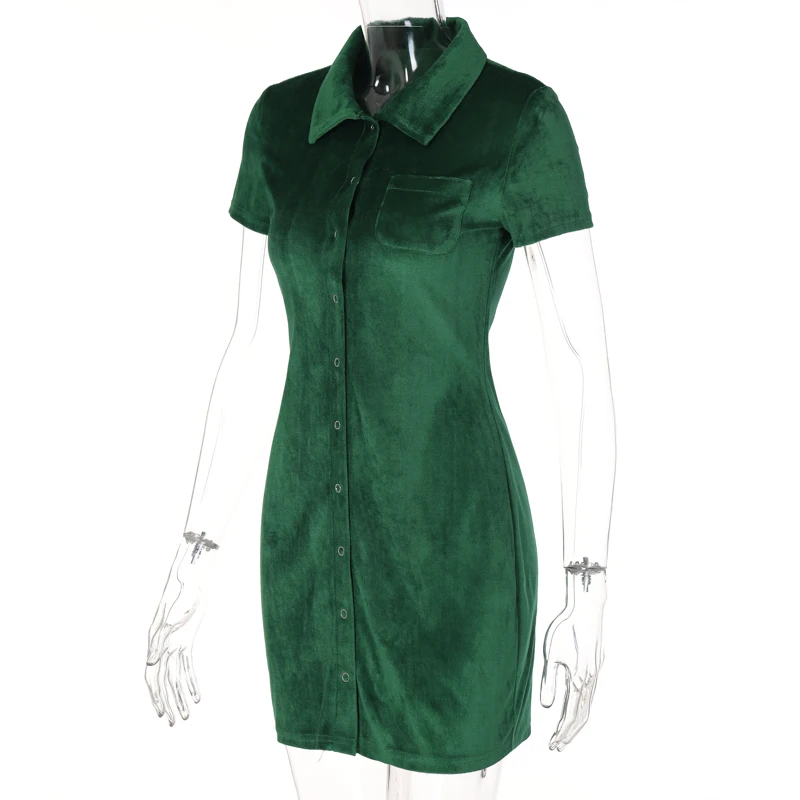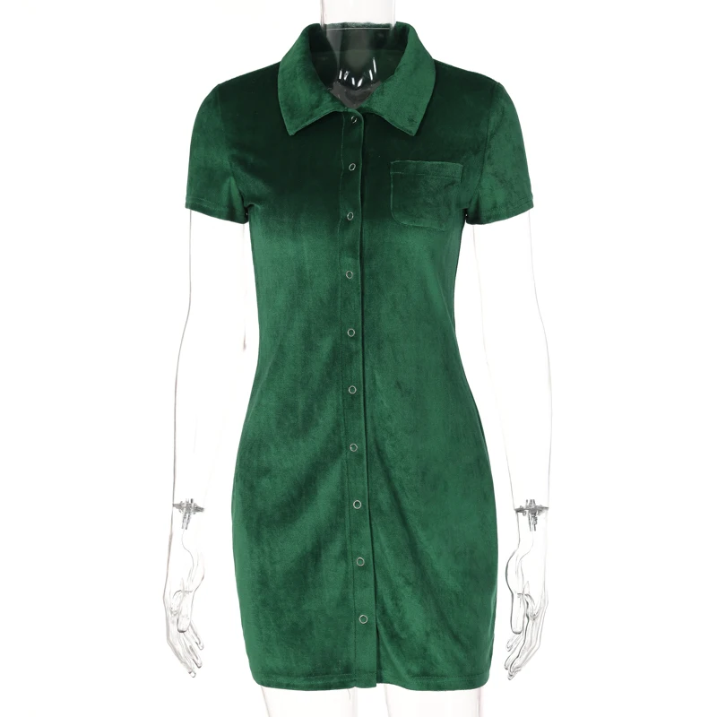 victoria’s vogue Velvet Solid Buttons Short Sleeves Bodycon Mini Prom Dress Streetwear 2022 Summer Beach Turndown Collar Clothes Y2K