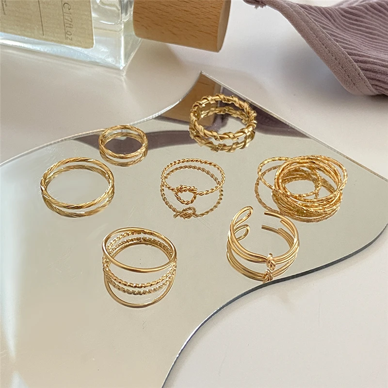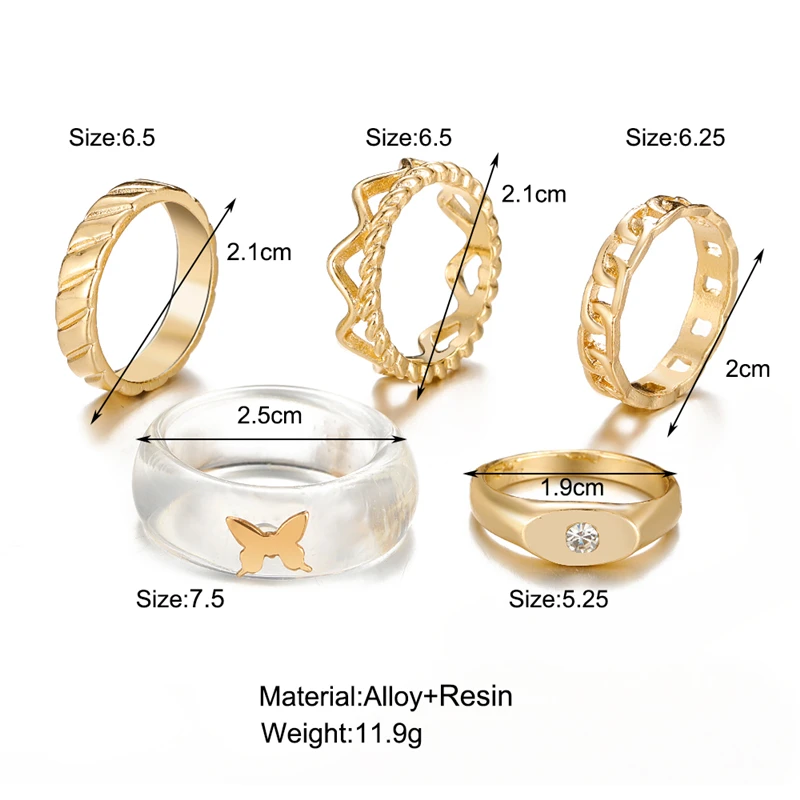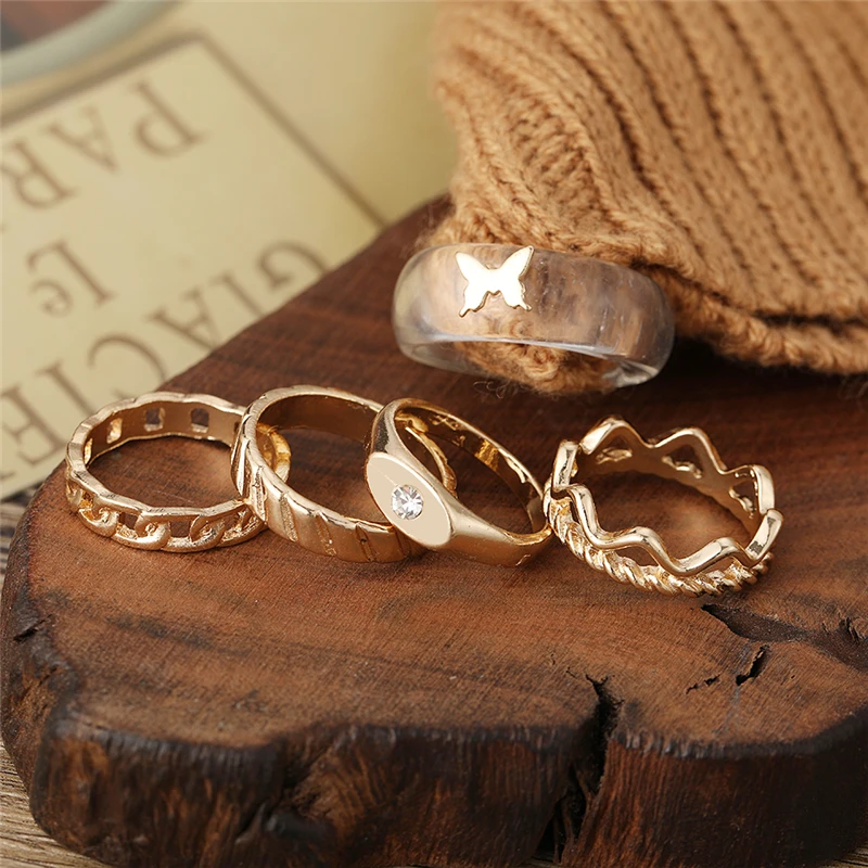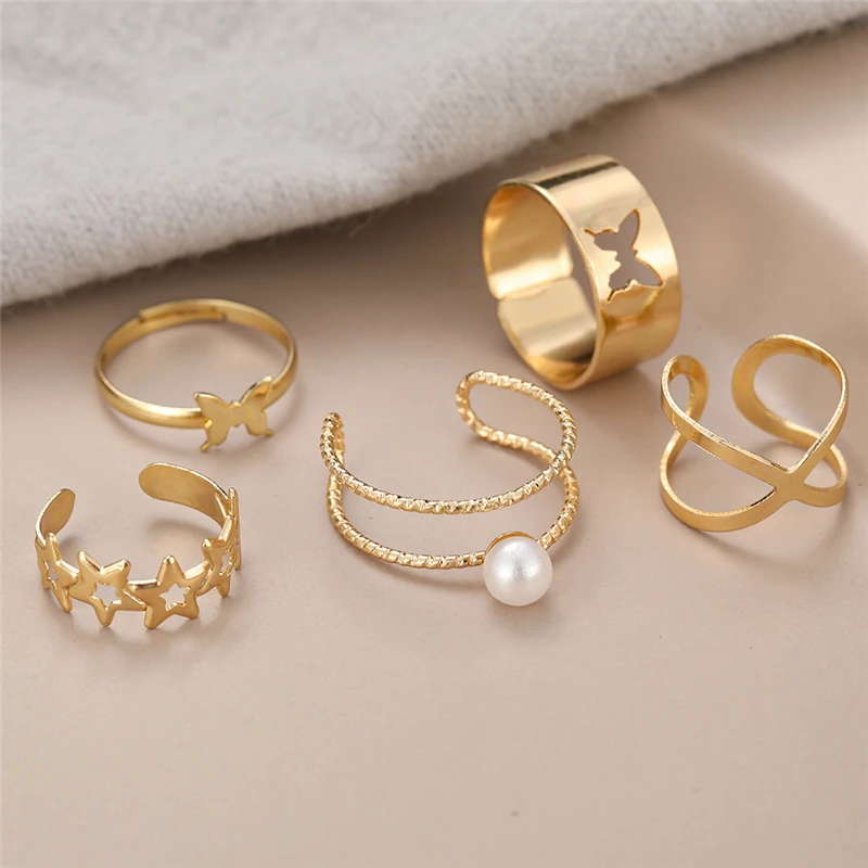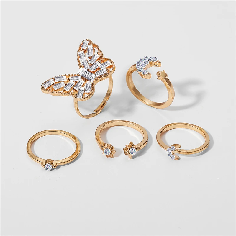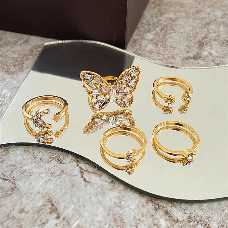 victoria’s vogue Vintage Crystal Butterfly Rings Set for Women Boho Gold Color Moon Star Finger Ring 2022 Trend Jewelry Party