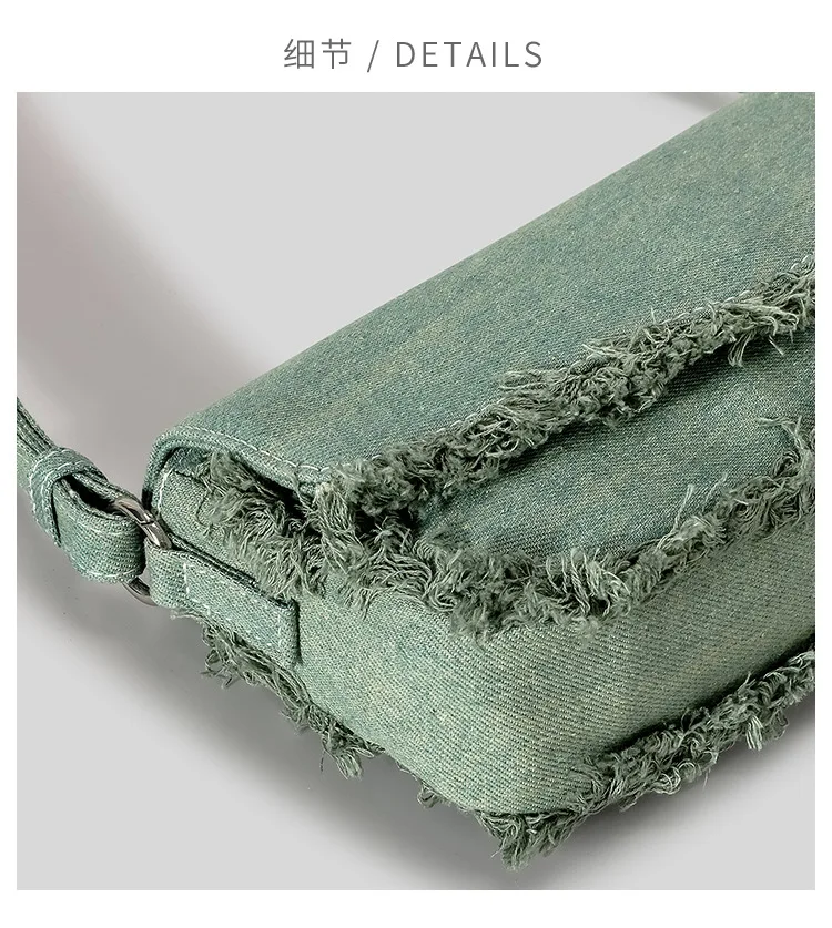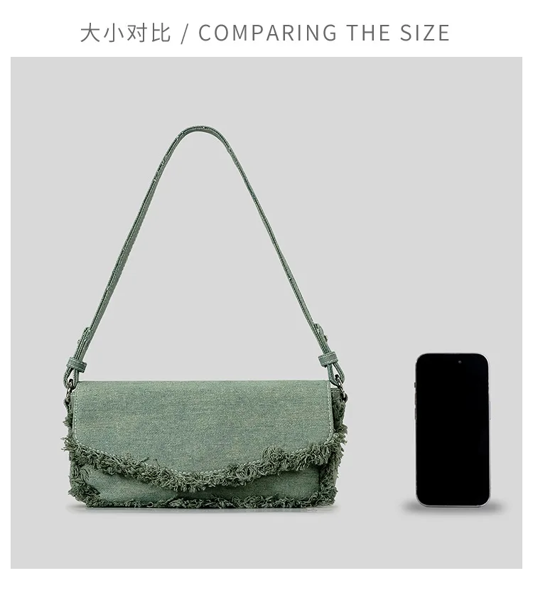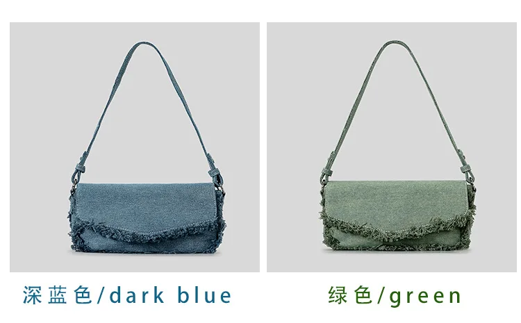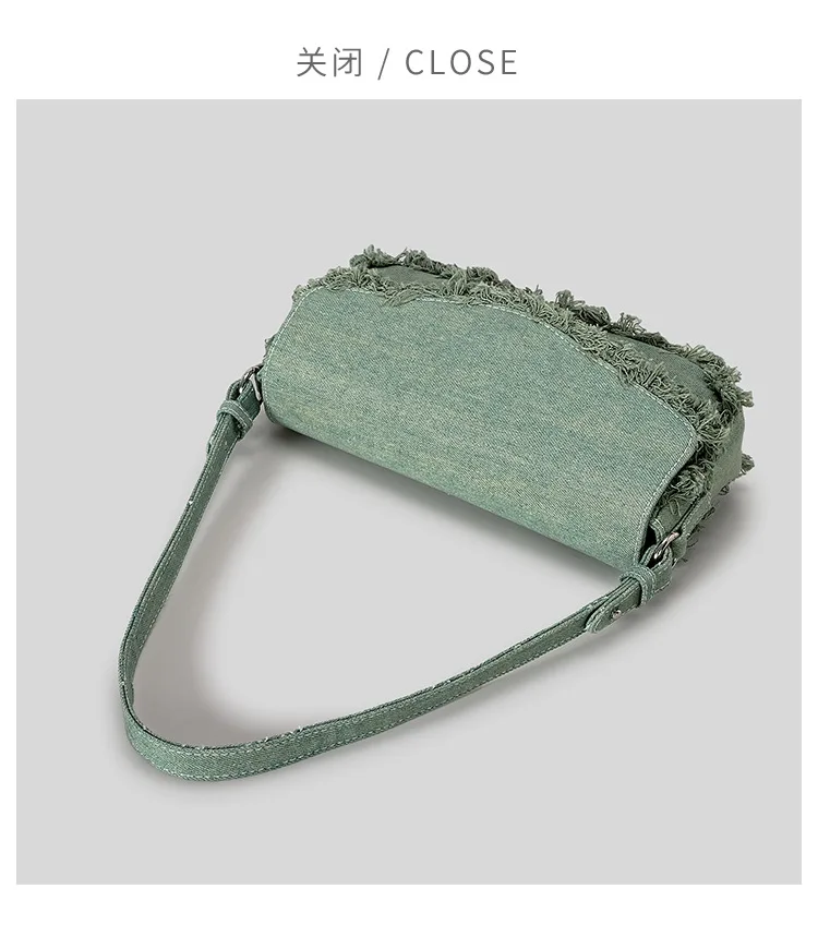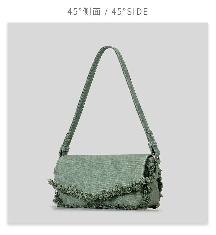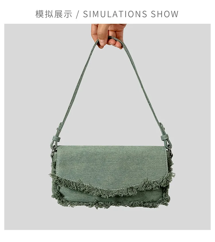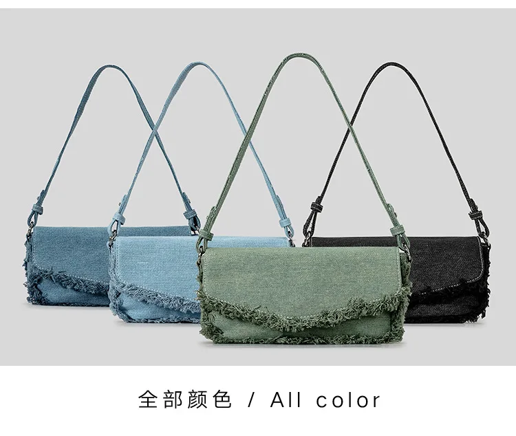 Victoria’s Vogue Vintage Fringe Denim Women Shoulder Bags Retro Lady Handbags Designer Small Flap Bag Fashion Simple Female Armpit Bag 2024