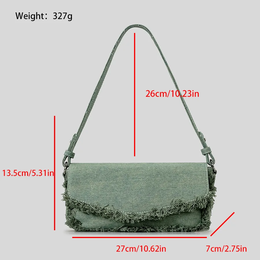 Victoria’s Vogue Vintage Fringe Denim Women Shoulder Bags Retro Lady Handbags Designer Small Flap Bag Fashion Simple Female Armpit Bag 2024
