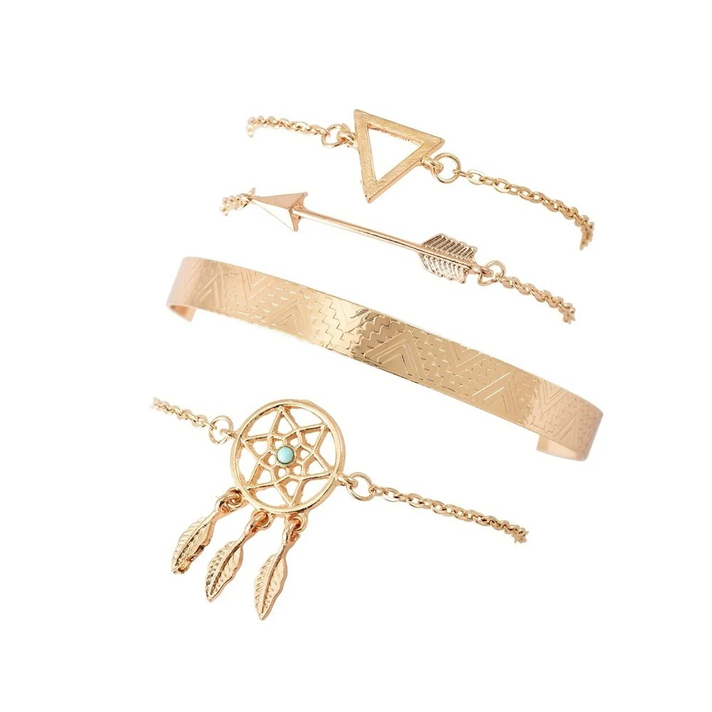 Victoria’s Vogue Vintage Geometric Six-pointed Star Feather Arrow Adjustable Bracelet Set For Women Boho Gold Bracelets & Bangles Fashion Jewelry