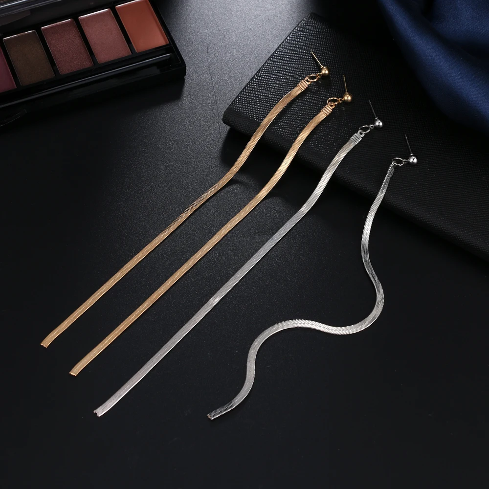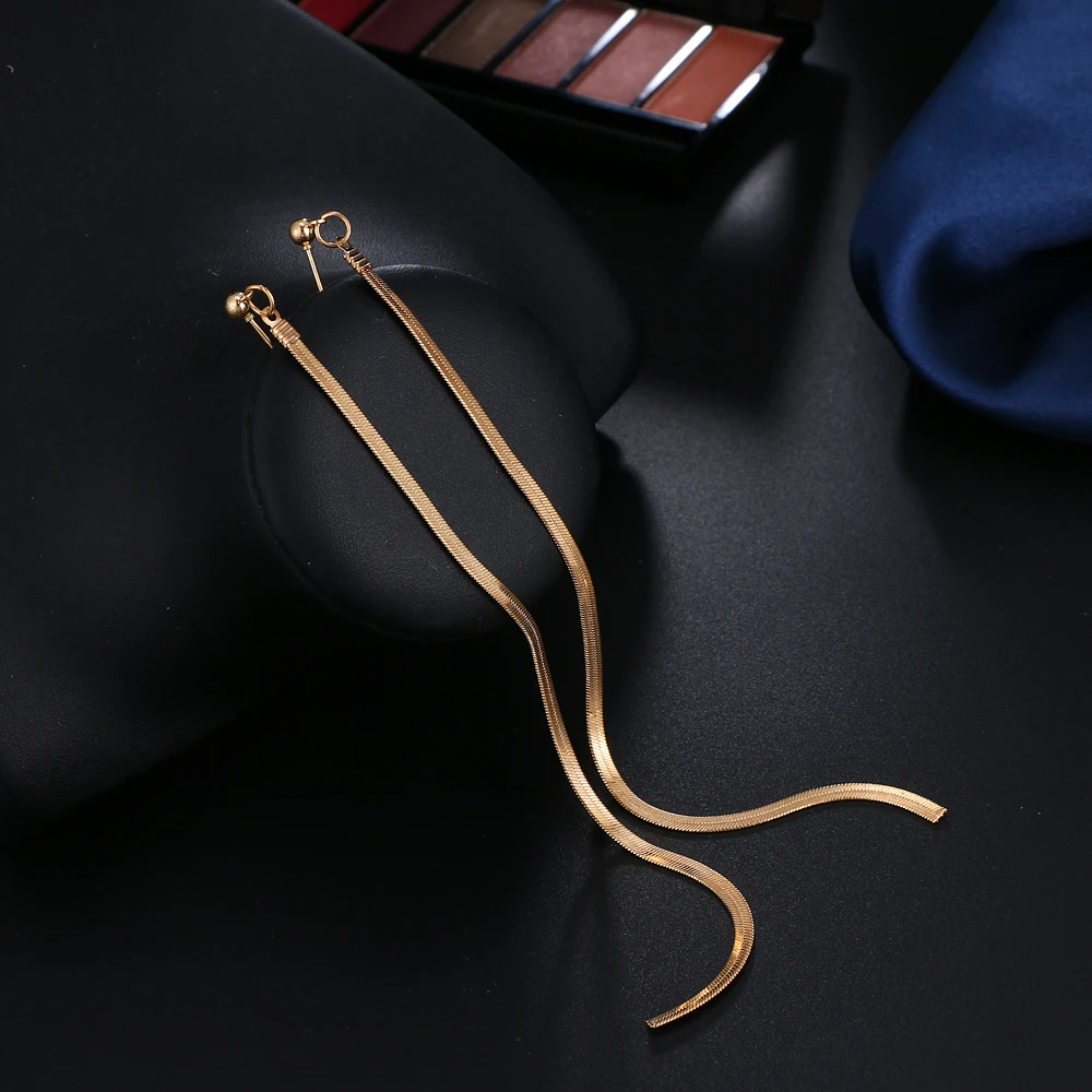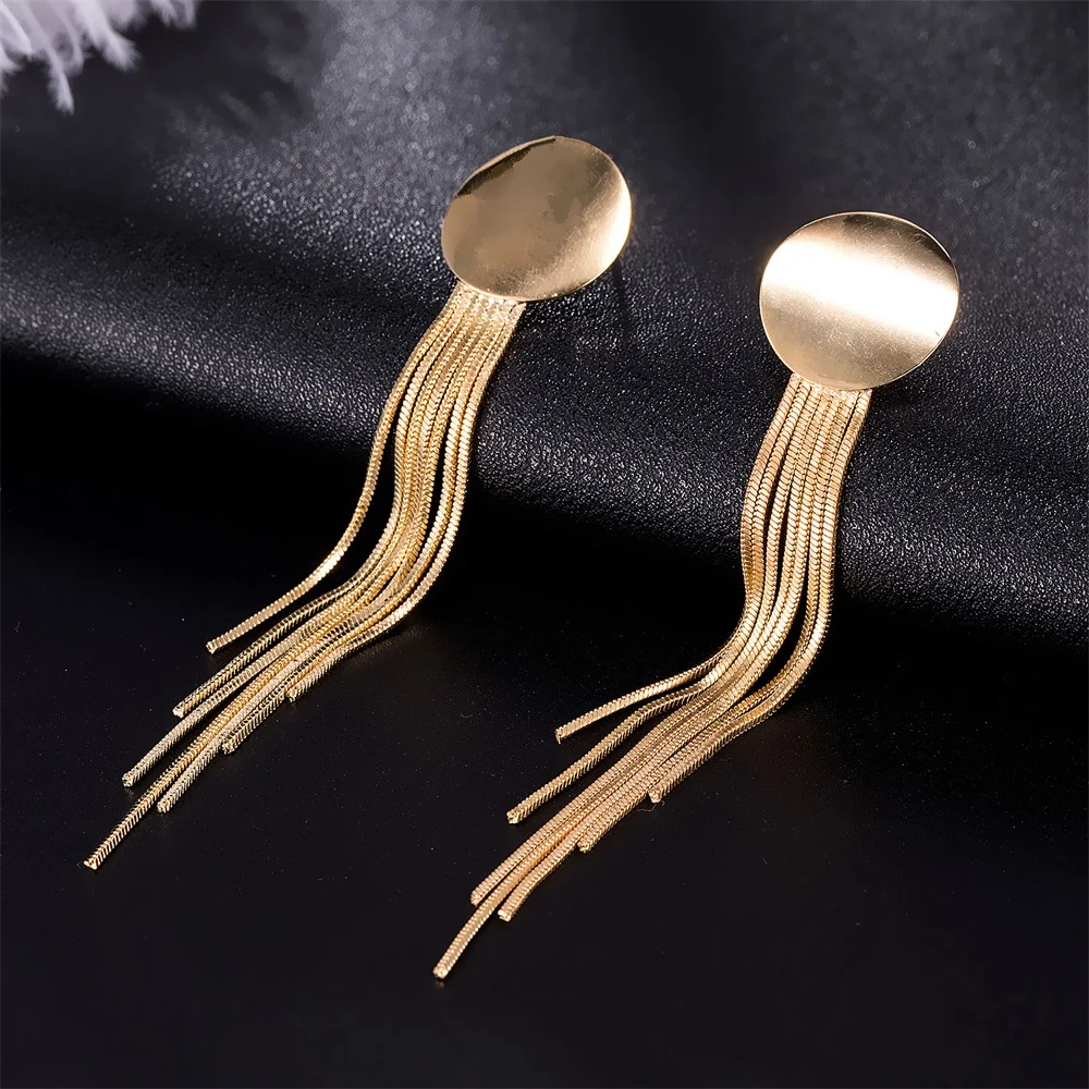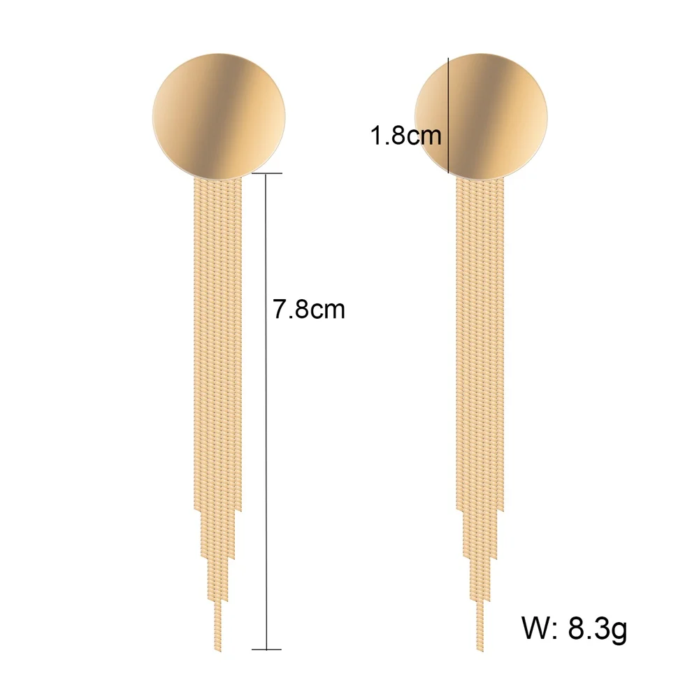 victoria’s vogue Vintage Gold Color Bar Long Thread Tassel Drop Earrings for Women Glossy Arc Geometric Korean Fashion Hanging Jewelry