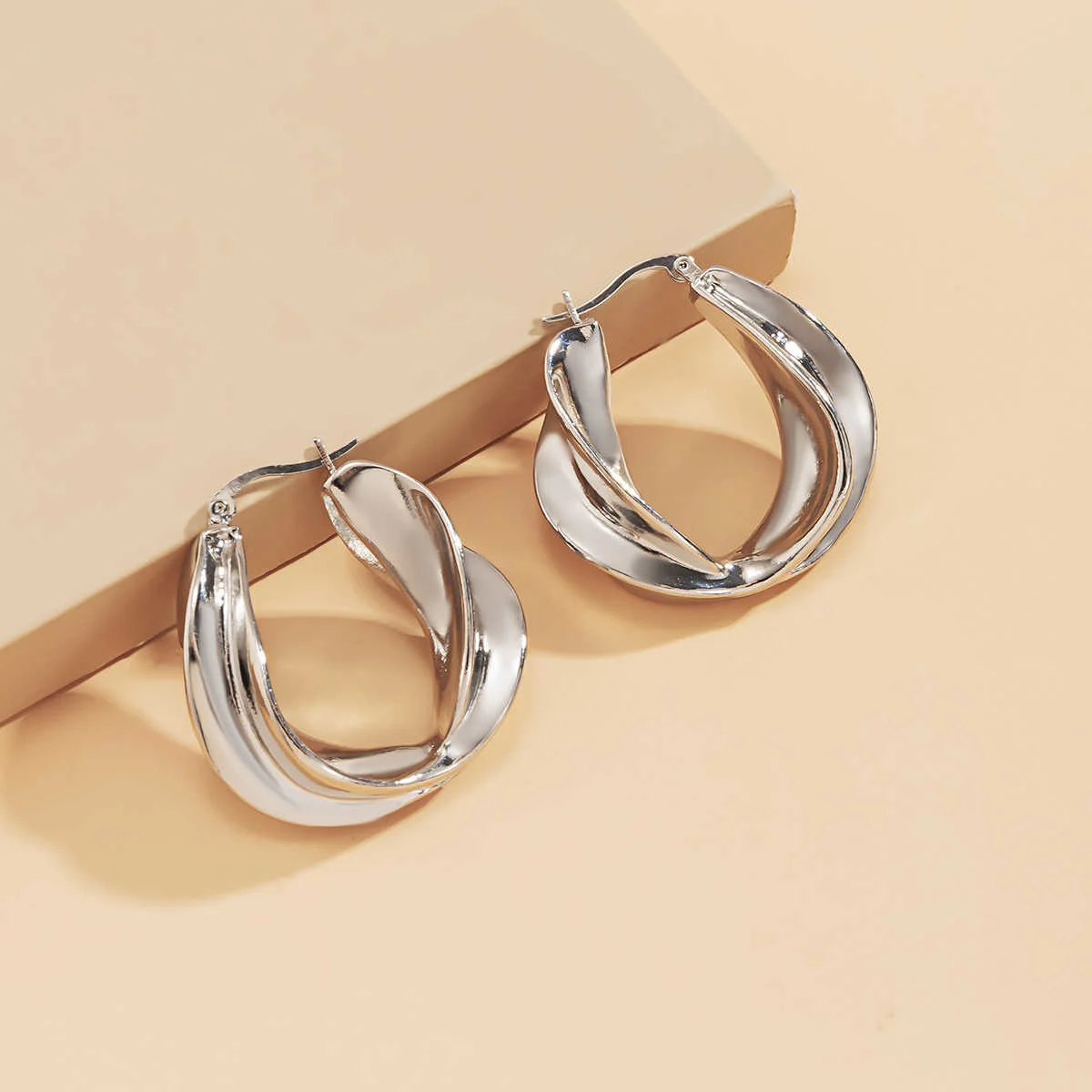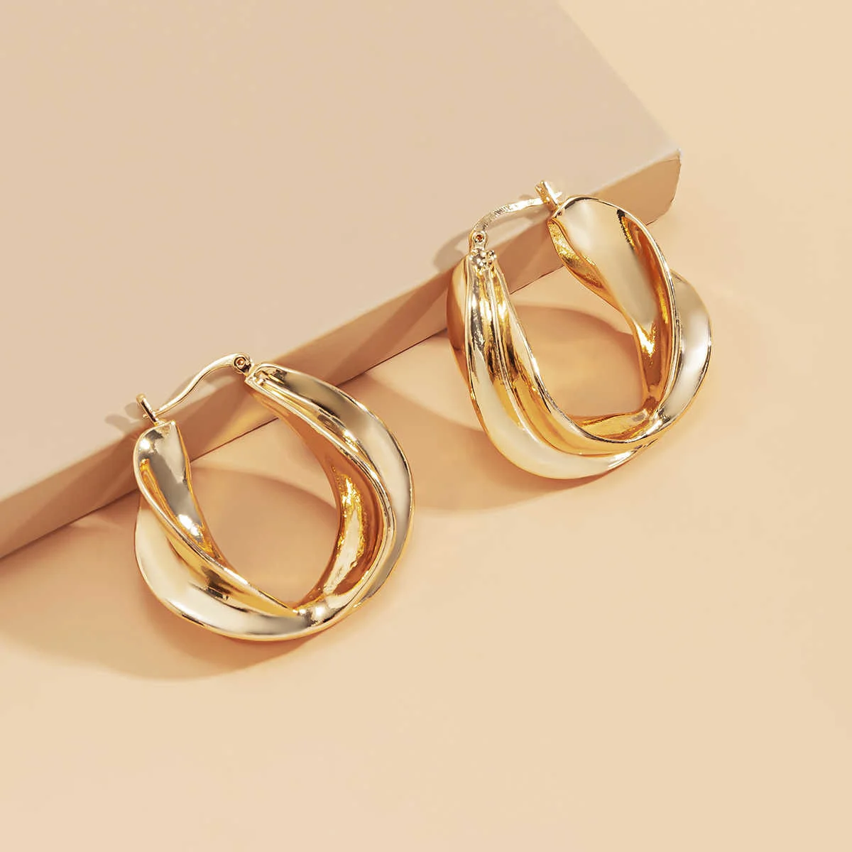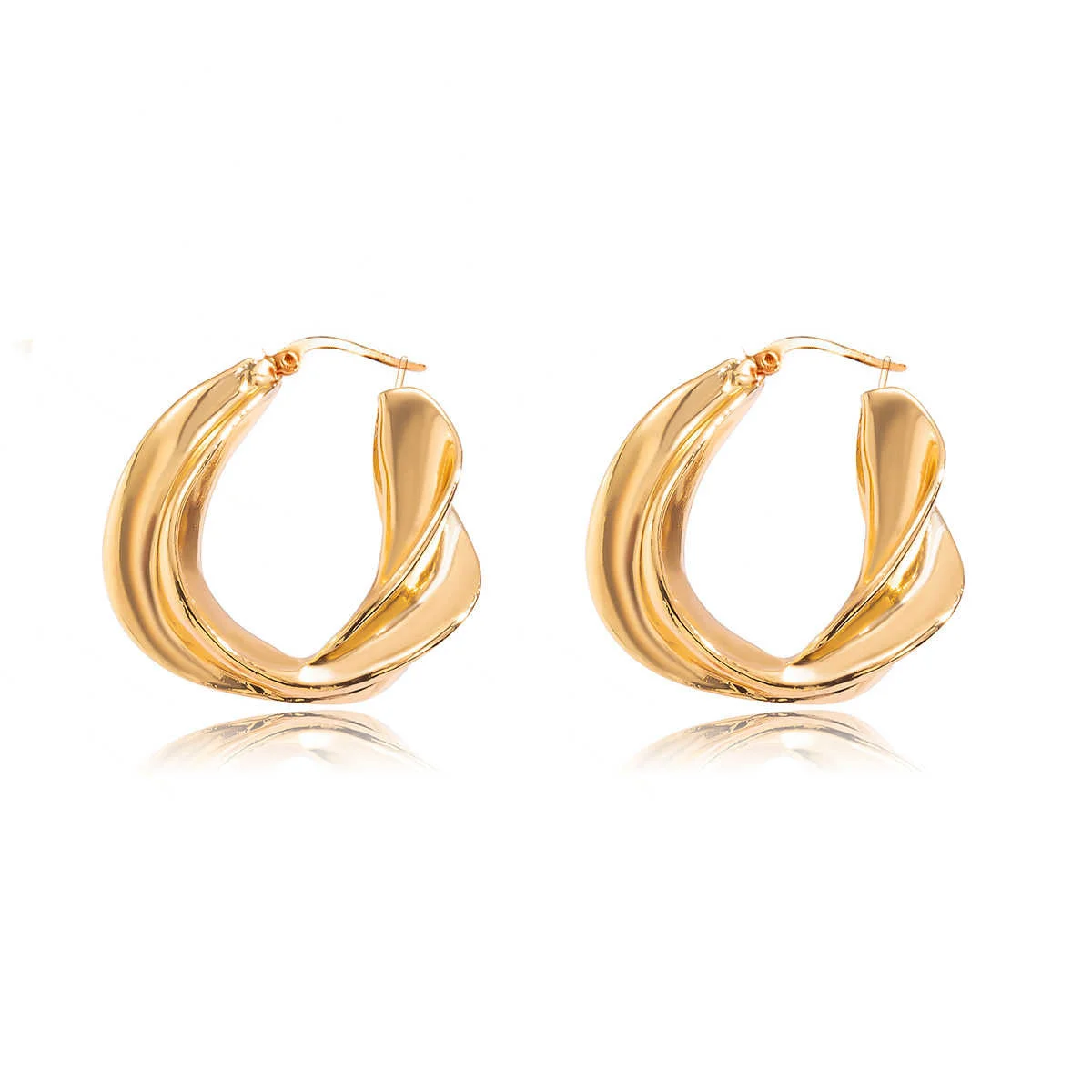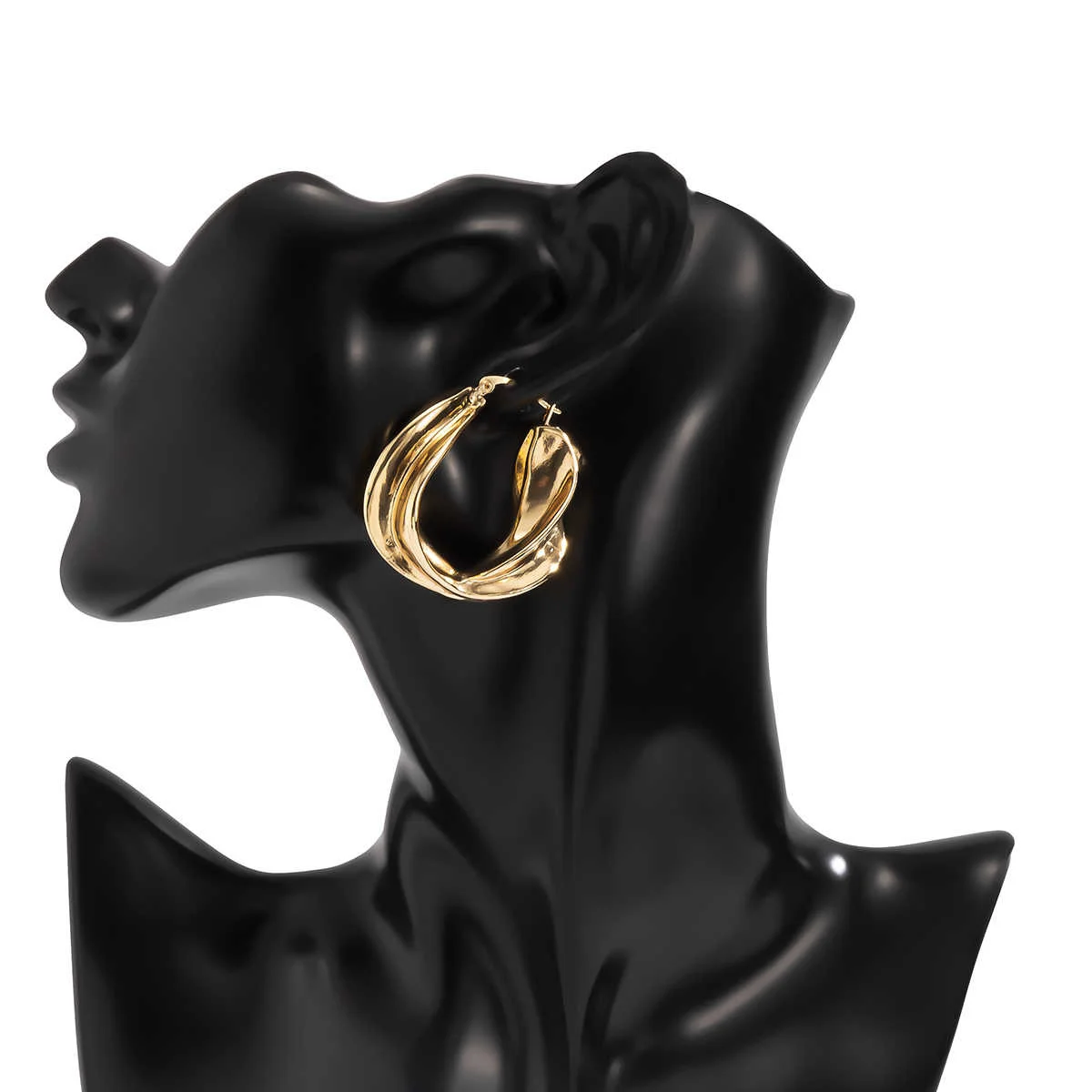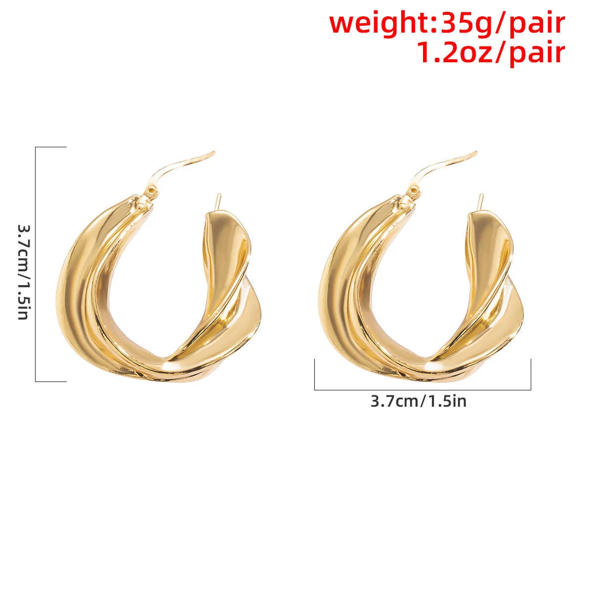 victoria’s vogue Vintage Irregular Twisted Metal Hoop Earrings Punk Gold Color Geometric Circle Loop Earrings Female Jewelry Bijoux