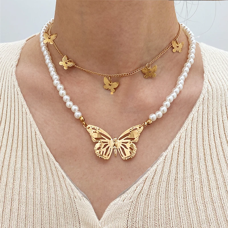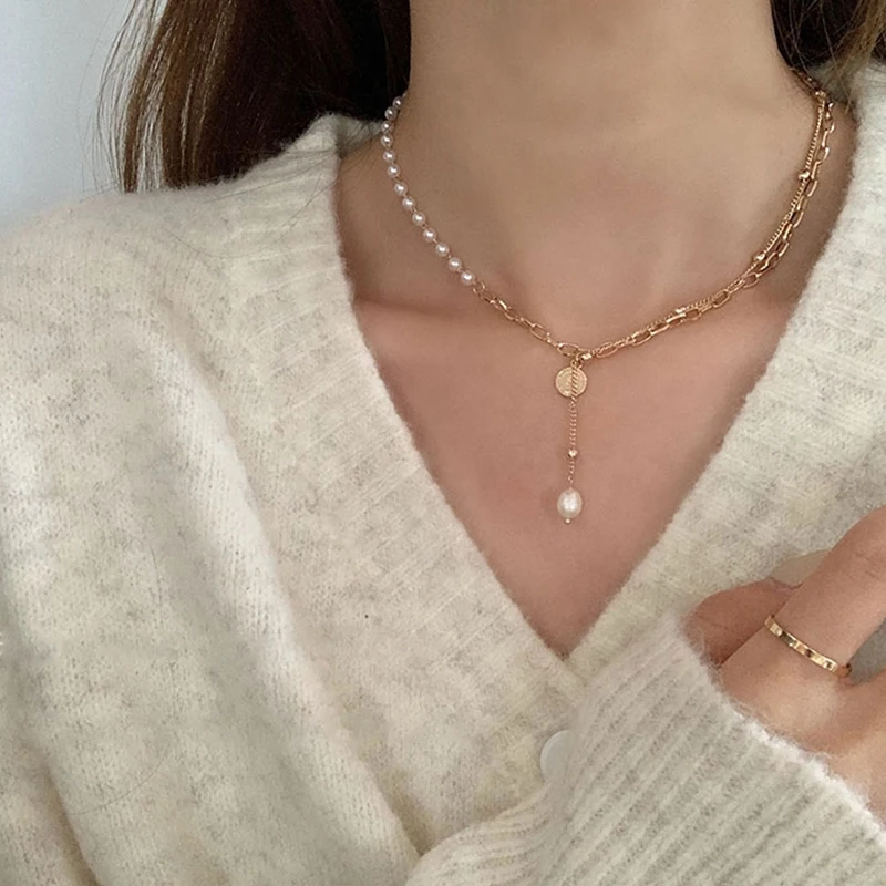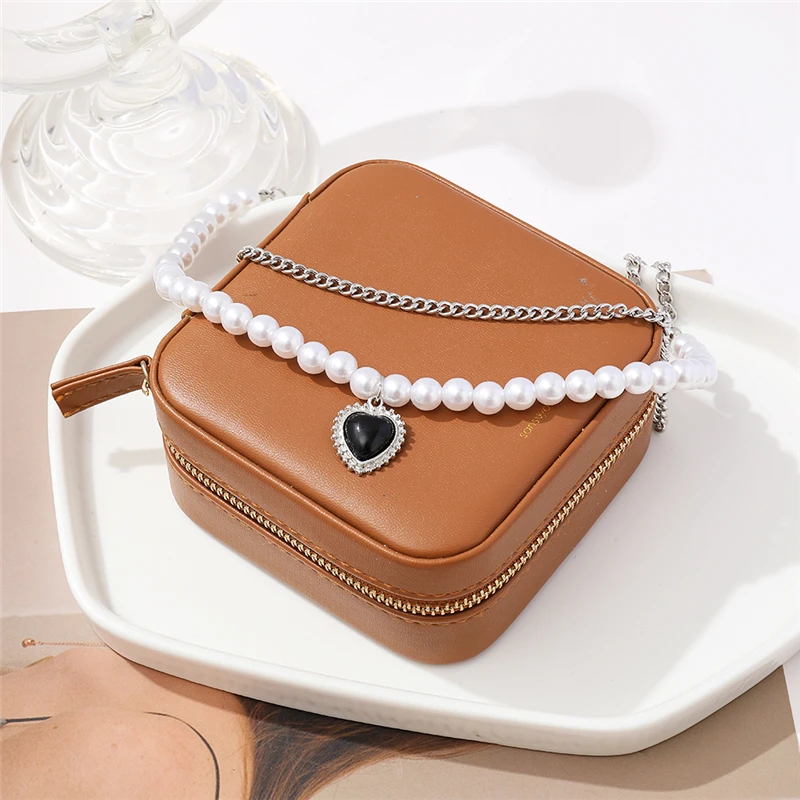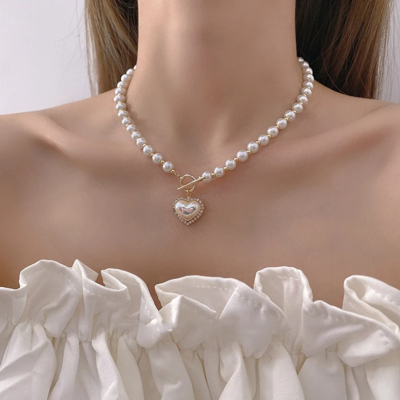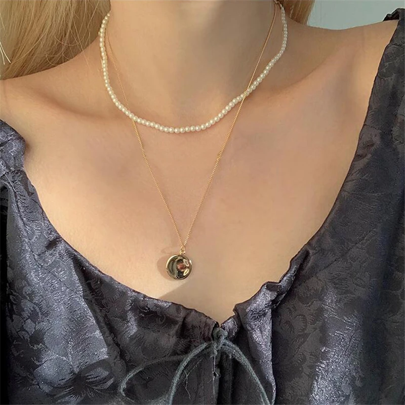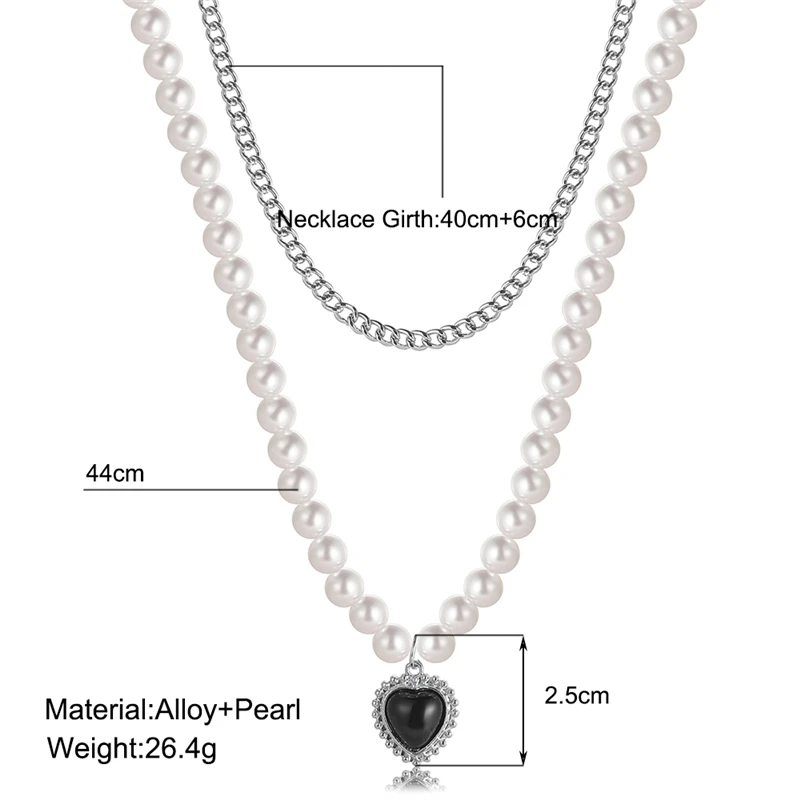 victoria’s vogue Vintage Multilayer Pearl Heart Necklace for Women Trendy Gold Silver Color Chain Collar Necklace Jewelry Gift