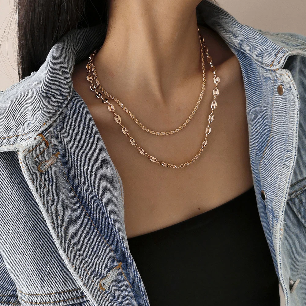 Victoria’s Vogue Vintage Multilevel Chain Gold Silver Color Necklaces For Women Female Fashion Round Sequined Five-pointed Star Pendant Jewelry