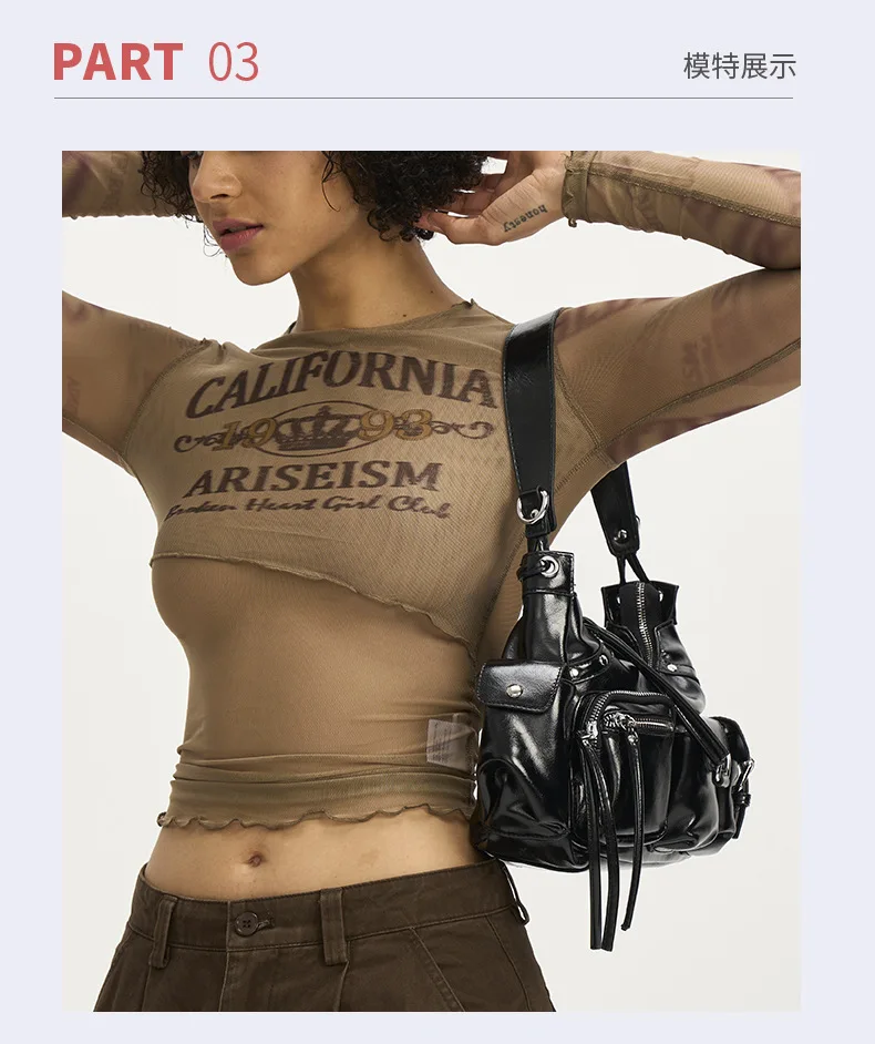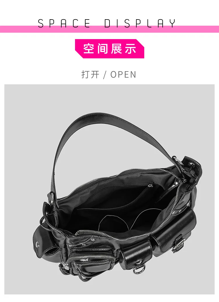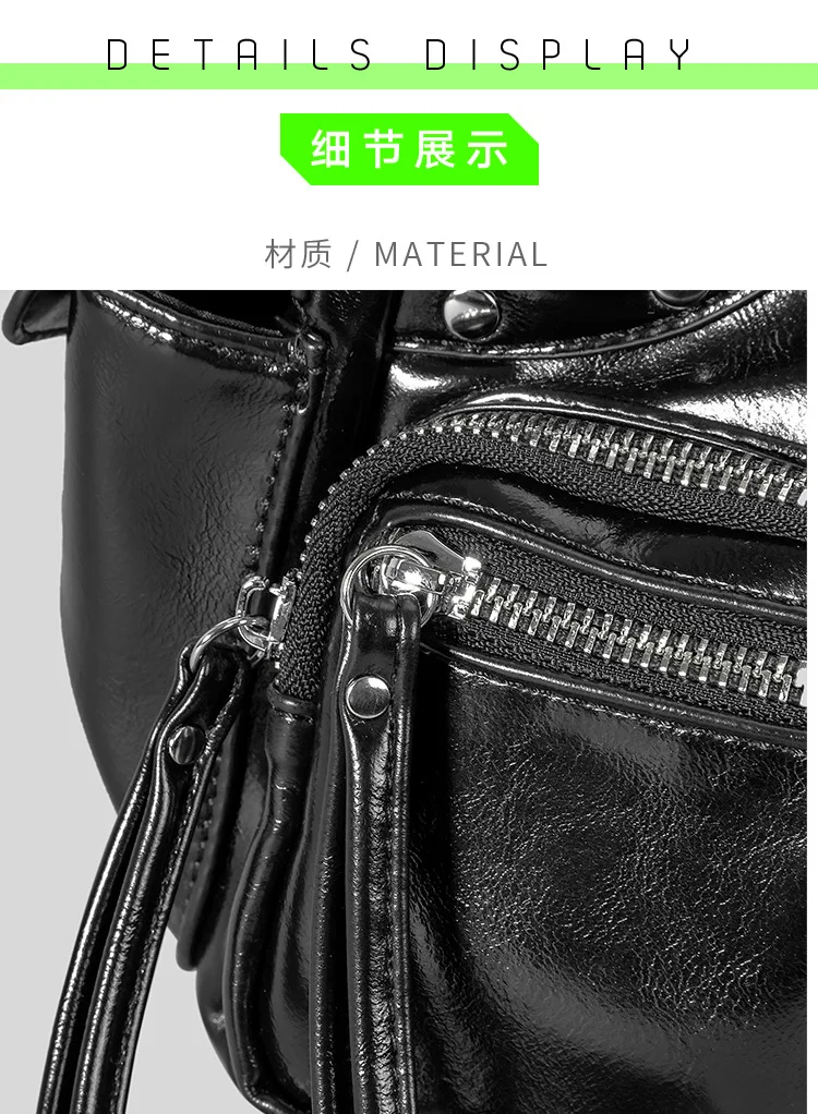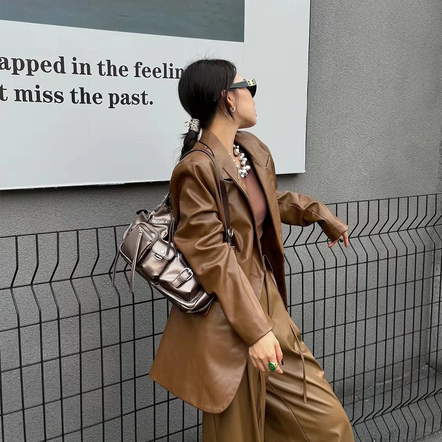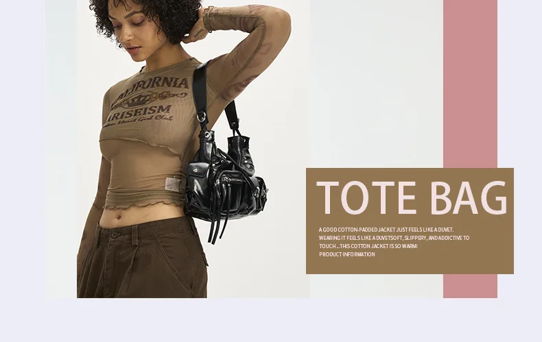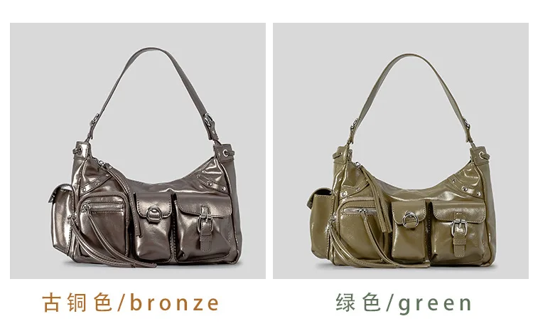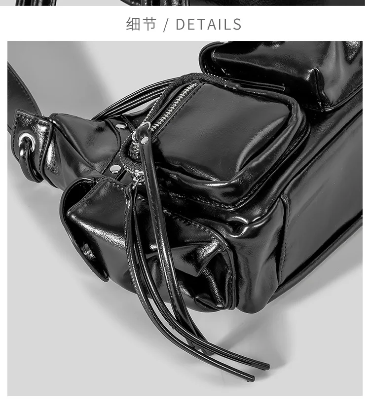 Victoria’s Vogue Vintage Rivet Multiple Pockets Motorcycle Bag Soft Pu Leather Women Handbags Long Tassel Shoulder Bags Retro Y2K Female Bag 2023