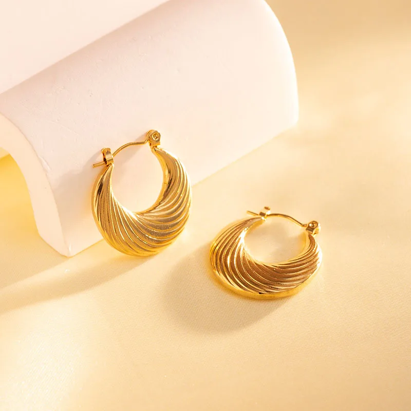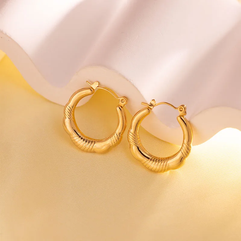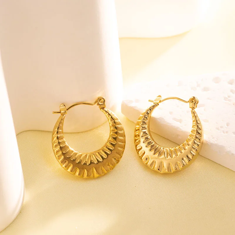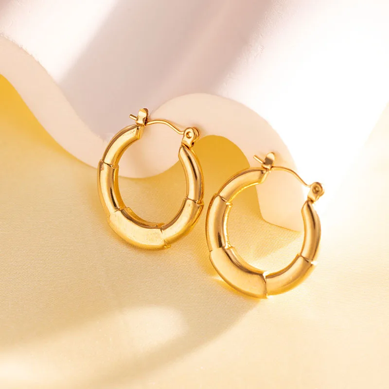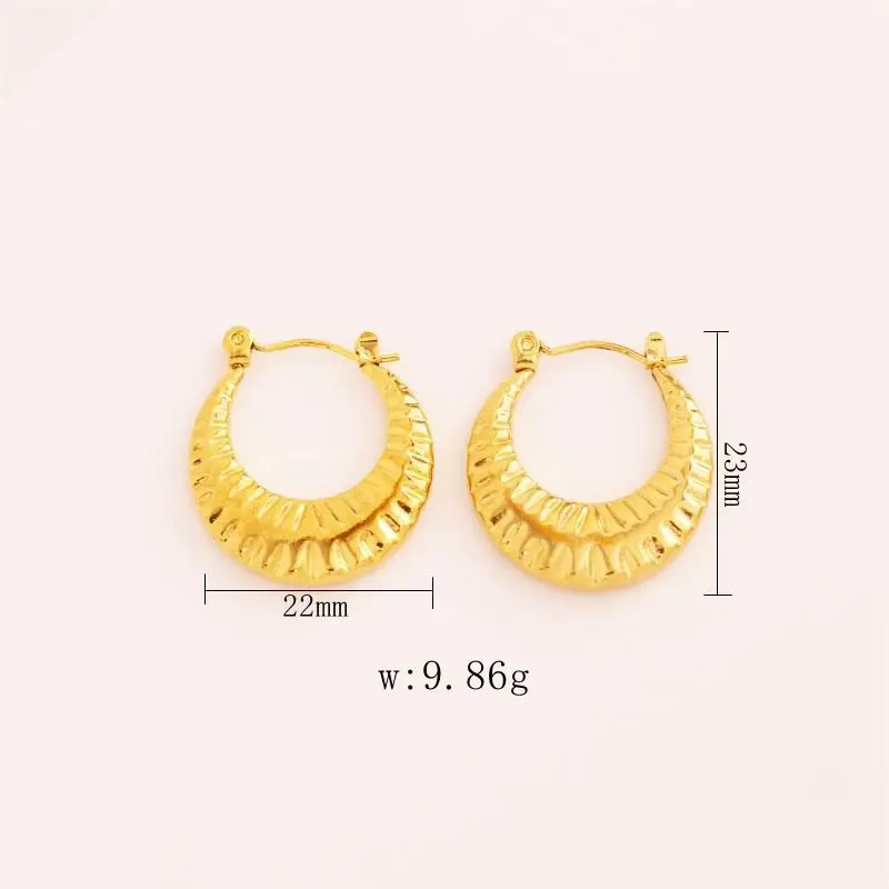 Victoria’s Vogue Vintage Stainless Steel Chunky Round Earrings For Women 2024 New Trending Gold Color Geometric Ear Hoops Earrings Jewelry Gift