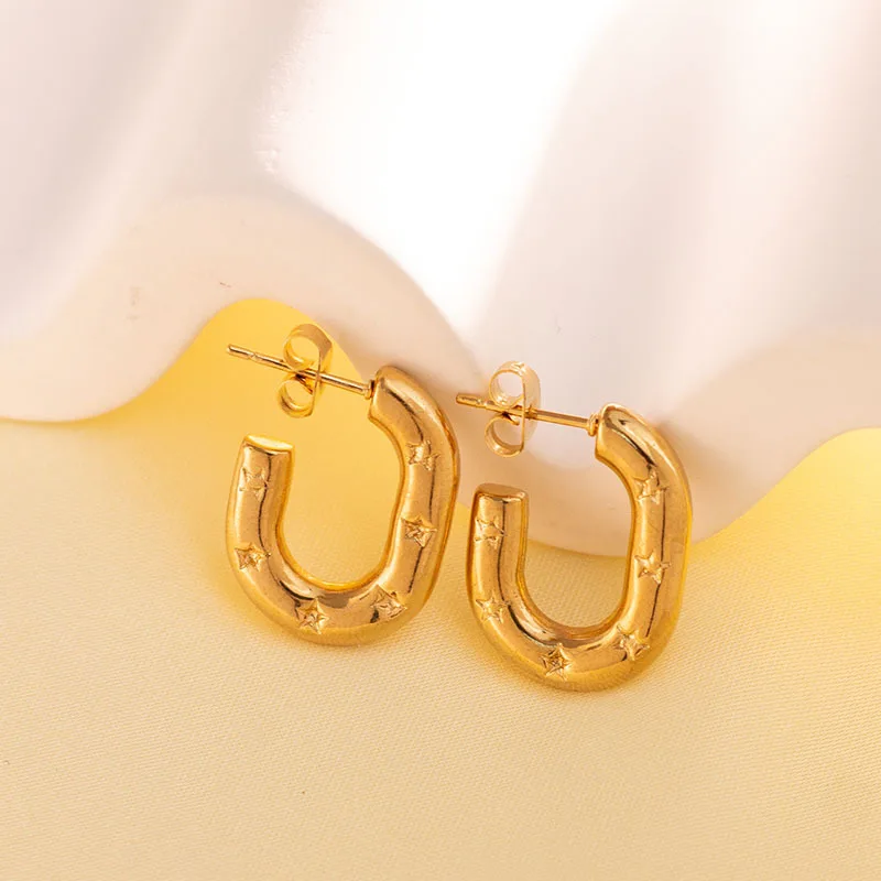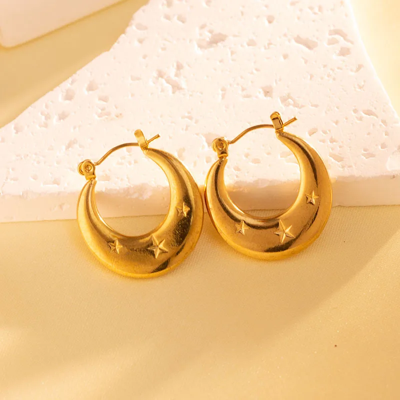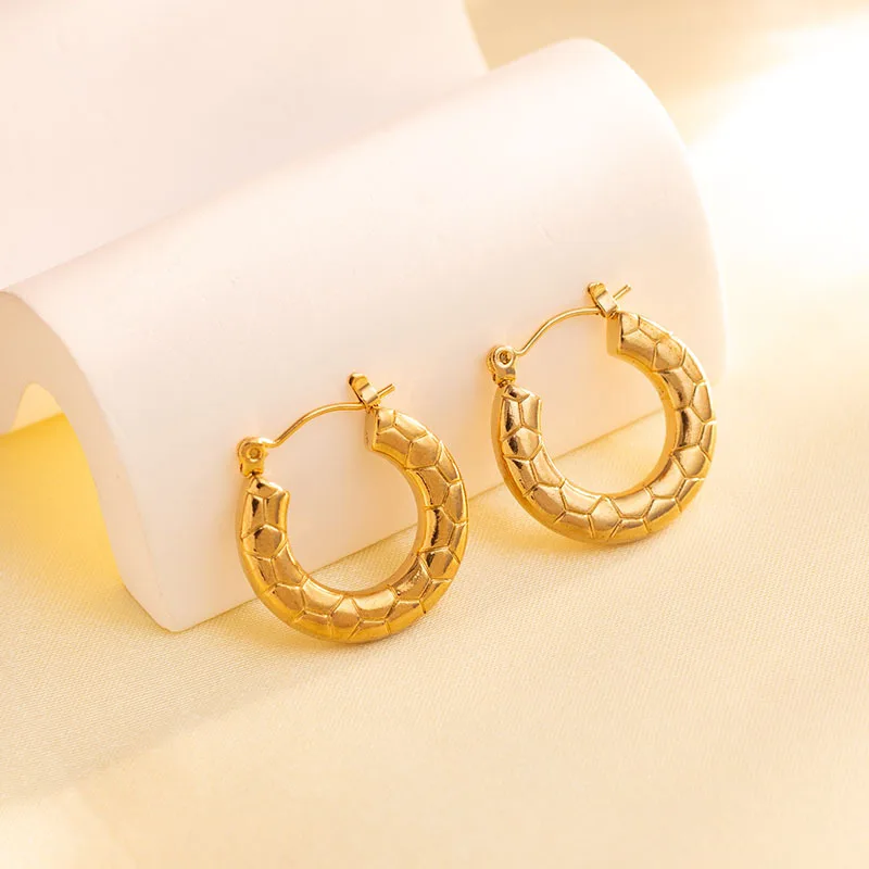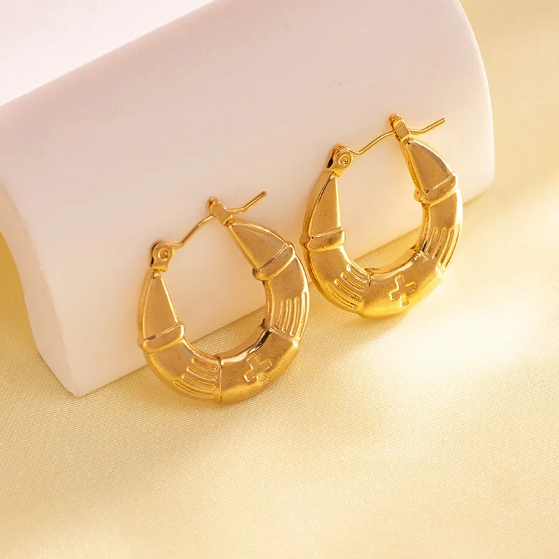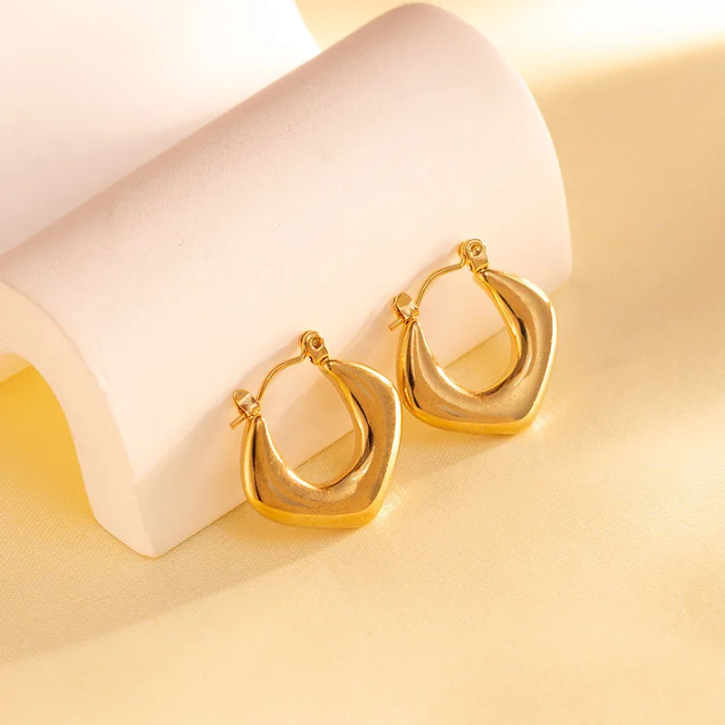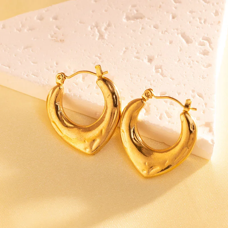 Victoria’s Vogue Vintage Stainless Steel Chunky Round Earrings For Women 2024 New Trending Gold Color Geometric Ear Hoops Earrings Jewelry Gift