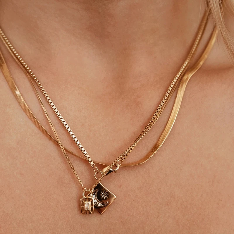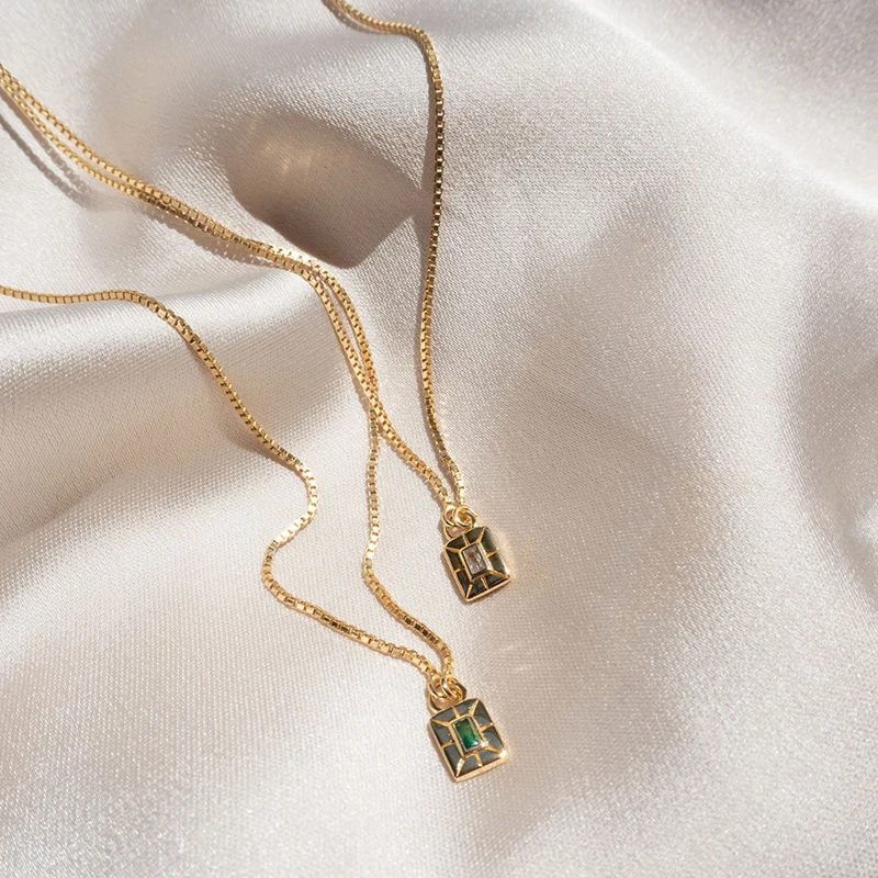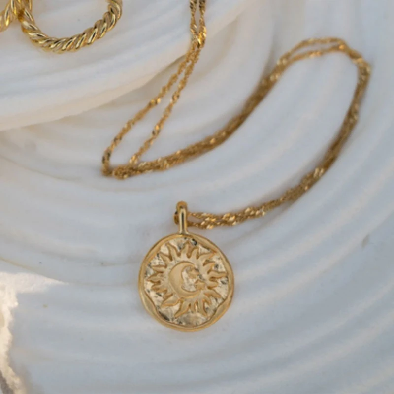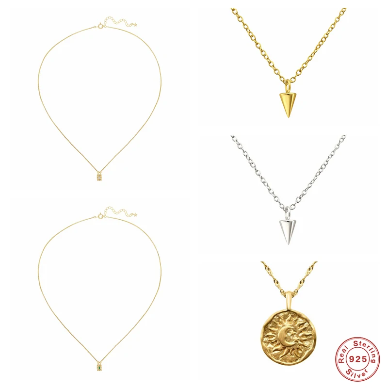 Victoria’s Vogue Vintage Sun Moon Charm Celestial Dainty Necklaces For Women Gift Green Zircon Cone Pendant Necklace Clavicle Choker Jewelry