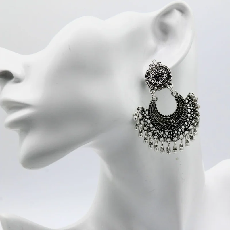 Victoria’s Vogue New Ethnic Gold Color Indian Jhumka Earrings for Women Pendient Heart Shape Beads Tassel Earring 2024 Vintage Brincos Jewelry