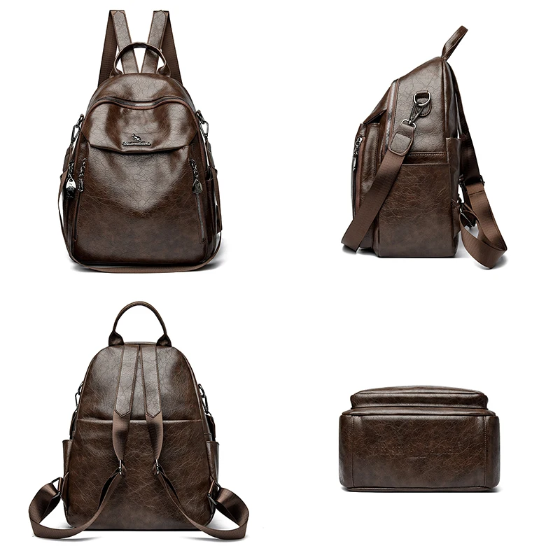 Victoria’s Vogue Vintage Women Leather Backpack Purse for Women 2025 High Quality Female Design Bagpack Rucksack Large Bookbag for Girl Sac a Dos