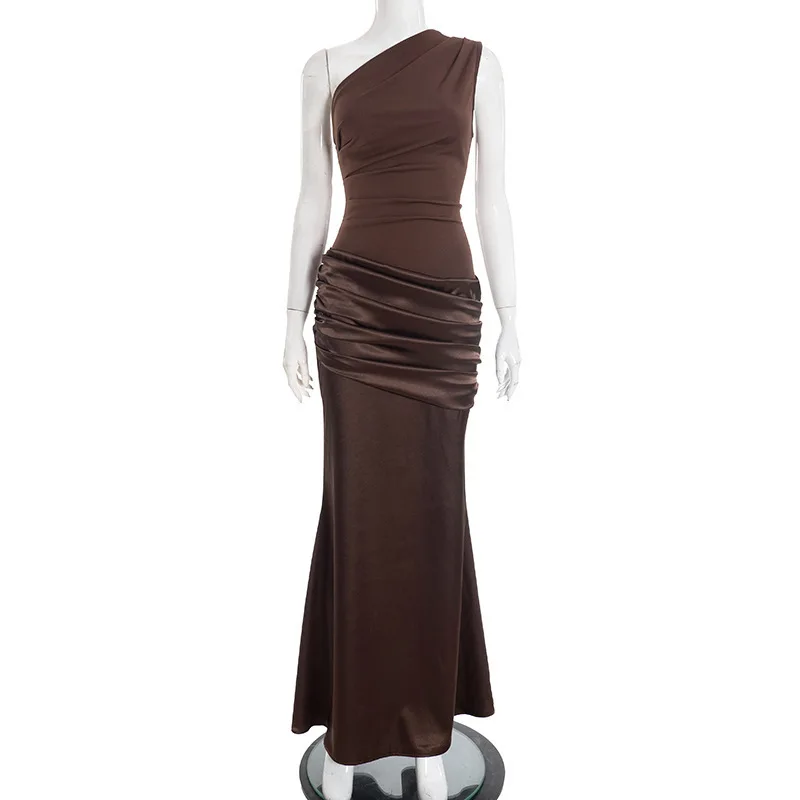 Victoria’s Vogue Waist Wrap Slim Bodycon Maxi Long Dress Women One Shoulder 2025 Summer Dress Evening Nightclub Sexy Party Dresses