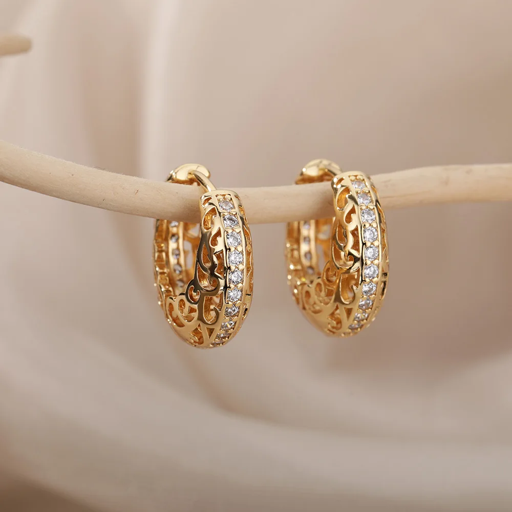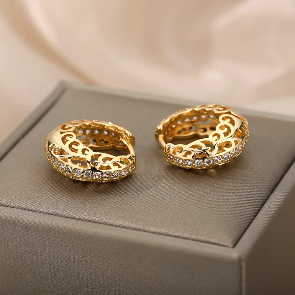 Victoria’s Vogue Weaving Exquisite Hollow Flower Hoop Earrings For Women Stainless Steel 2024 Fashion Wedding Party Gift Earrings Jewelry