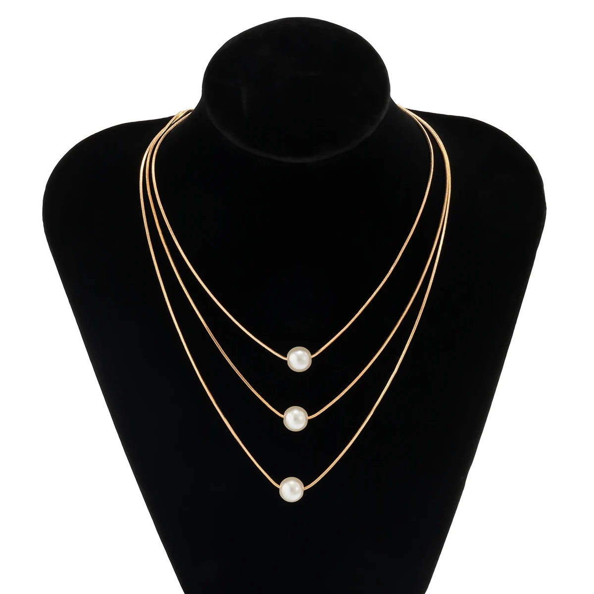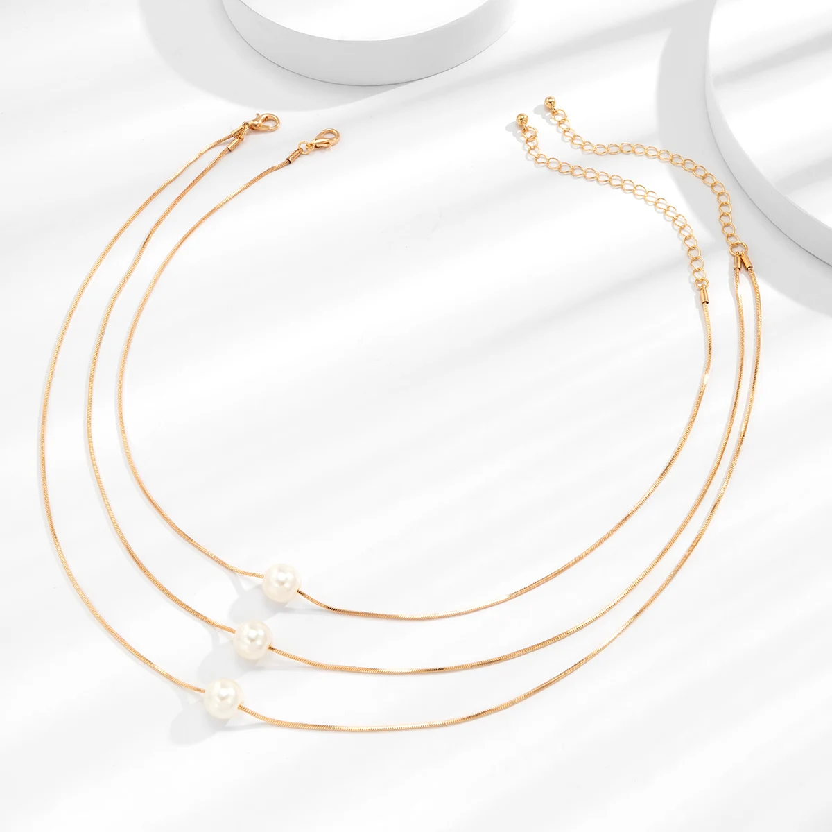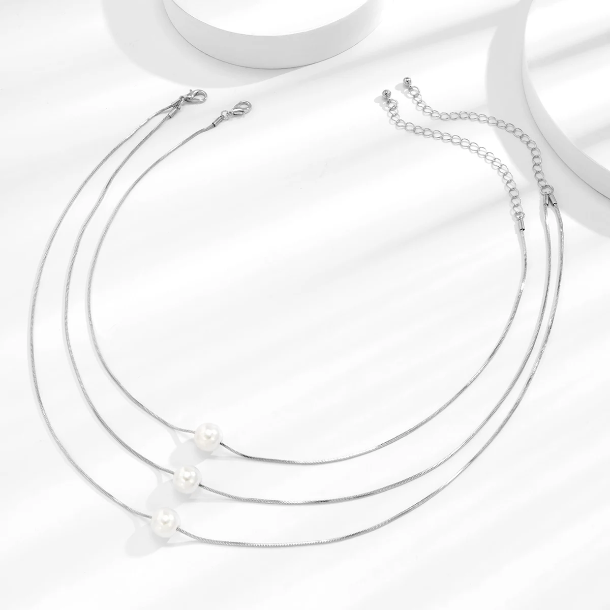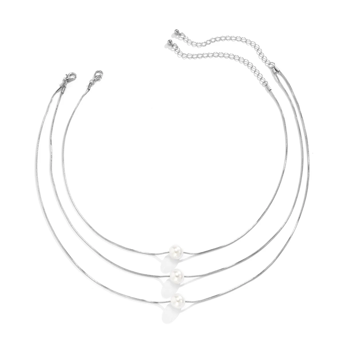 victoria’s vogue White Imitation Pearl Chain Choker Necklaces for Women Punk Multi Layered Thin Snake Chain Necklaces Jewelry Collier