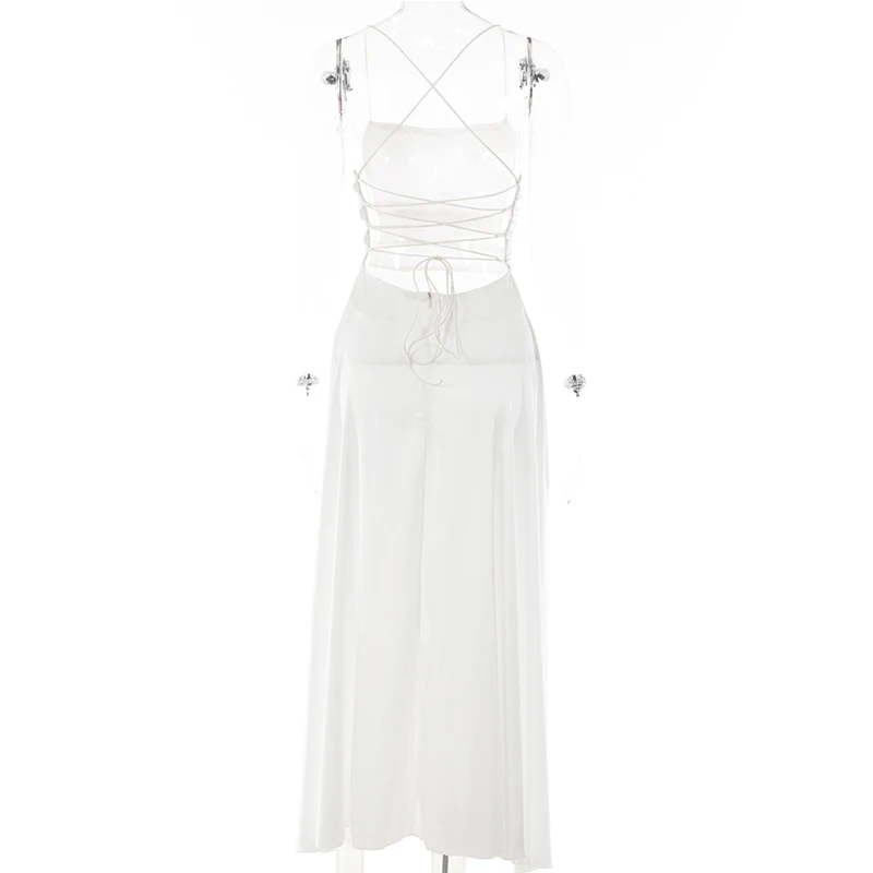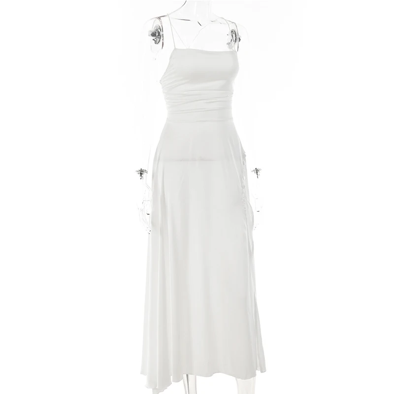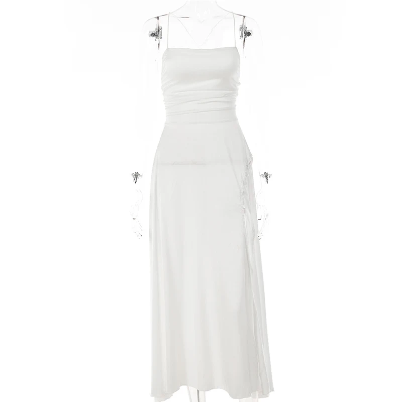 victoria’s vogue White Midi Calf Dress For Woman V-Neck Sleeveless Cami Criss Side Split Elegant Sexy Wrap Clubwear Fashion Dress 2021