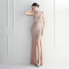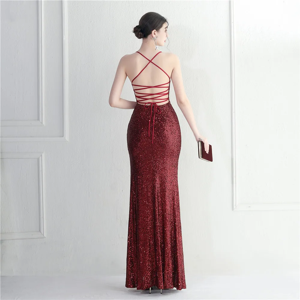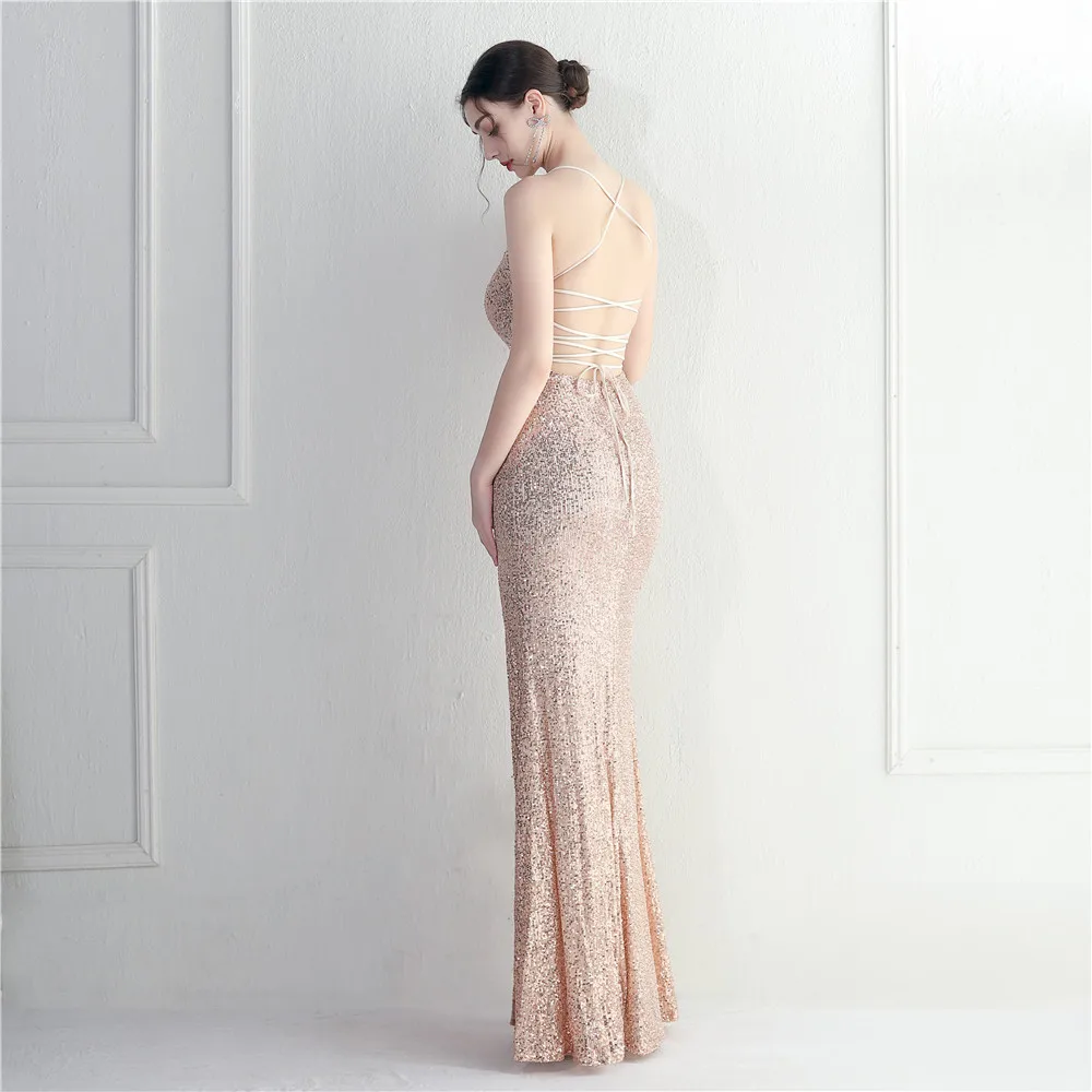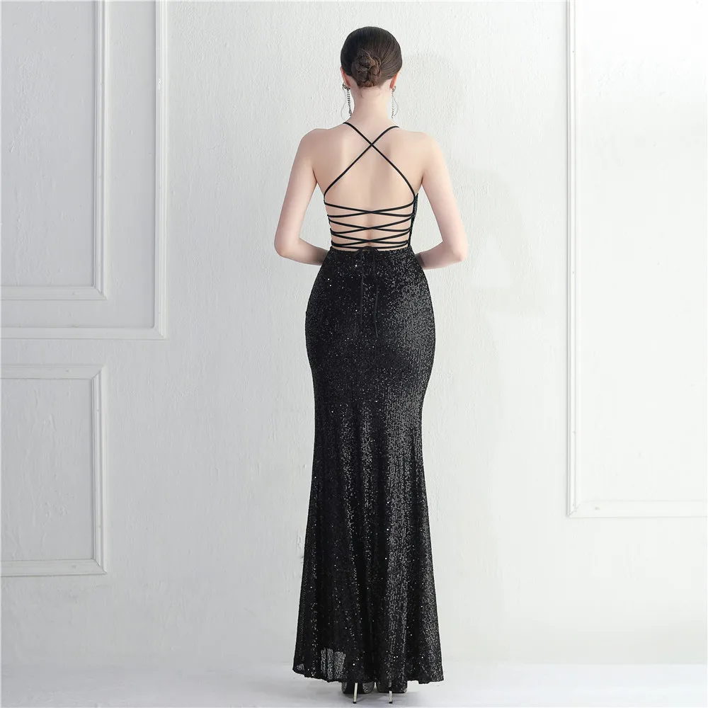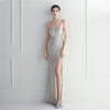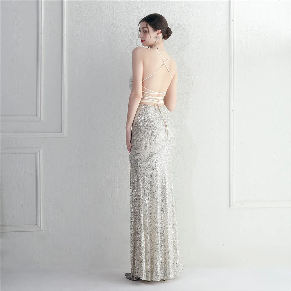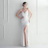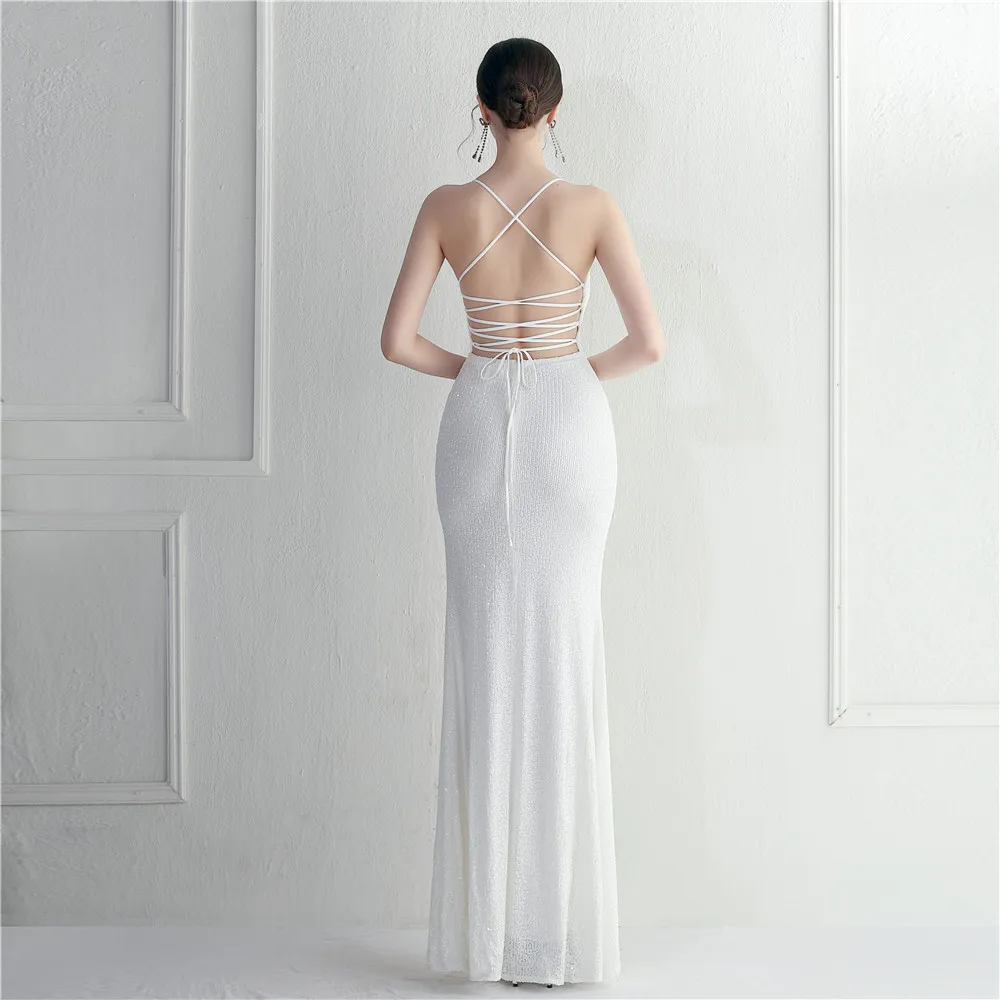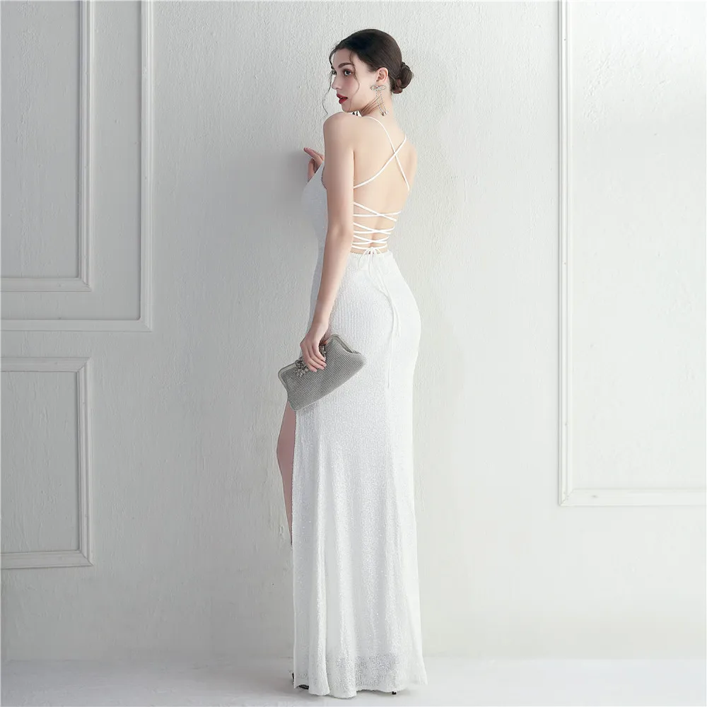 Victoria’s Vogue White Sequin Dress Backless Sexy Slit Long Party Evening Dresses V Neck Stretch Cocktail Prom Dress