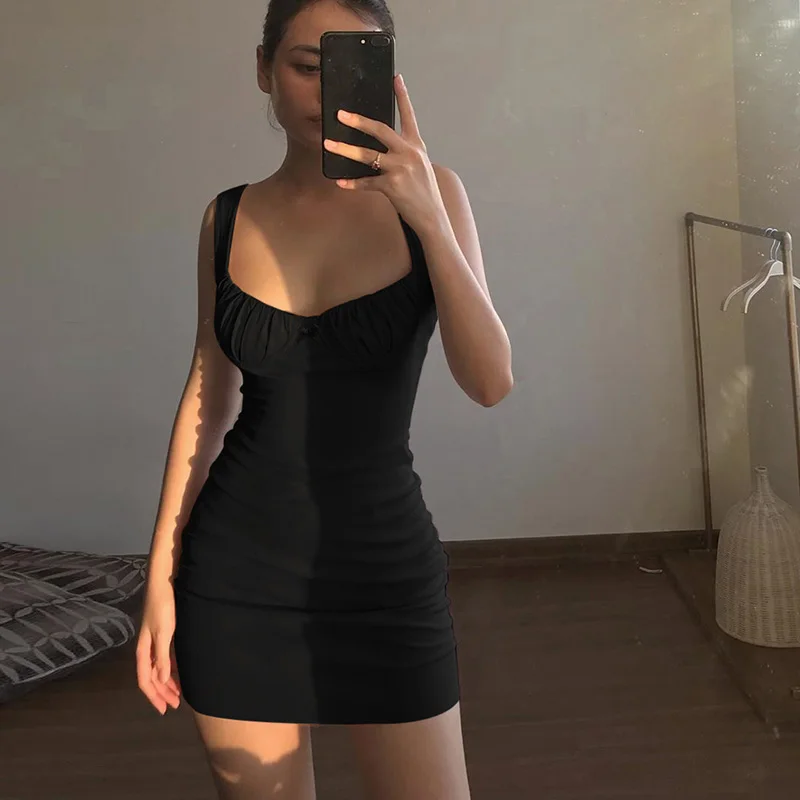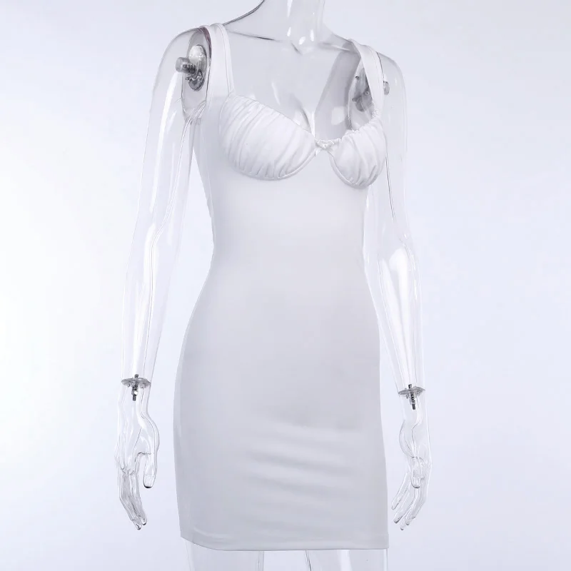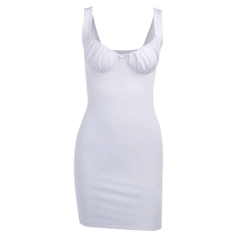 victoria’s vogue White Short Dresses Women Skinny V-Neck Sleeveless Sexy Ruched Elastic Bodycon Fashion Summer MIni Dresses Solid Color