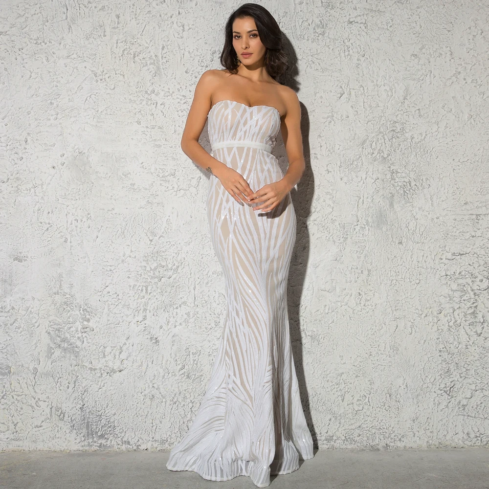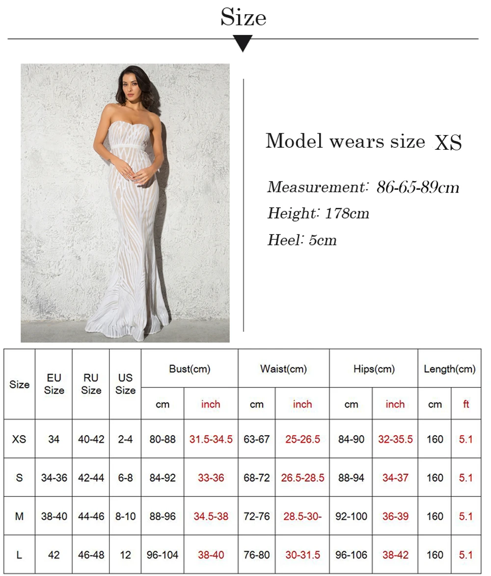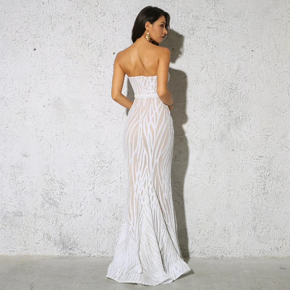 victoria’s vogue White Strapless Sequined Maxi Dress Floor Length Stretch Empire Sleeveless Mermaid Dress