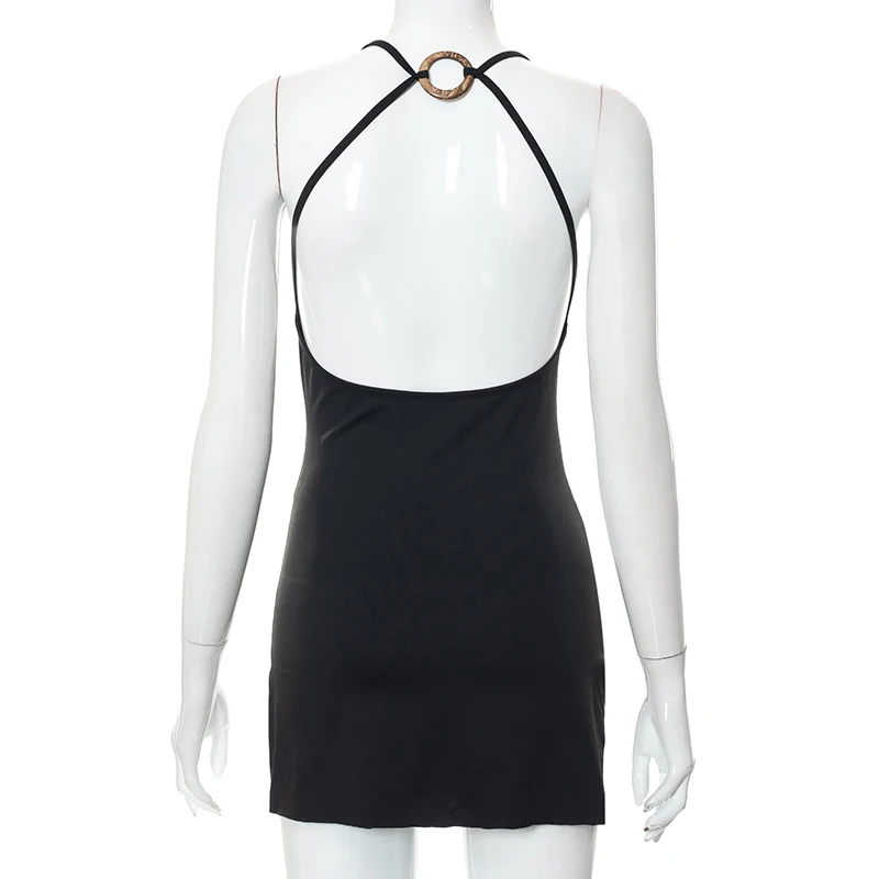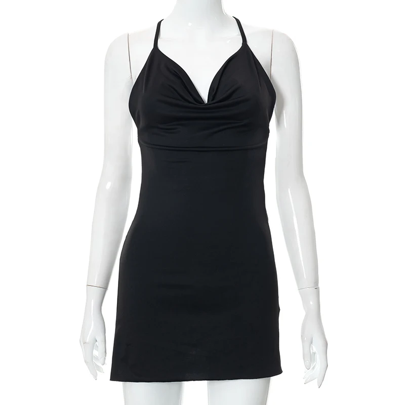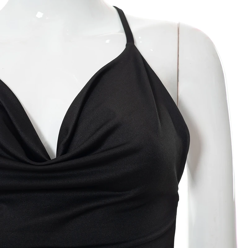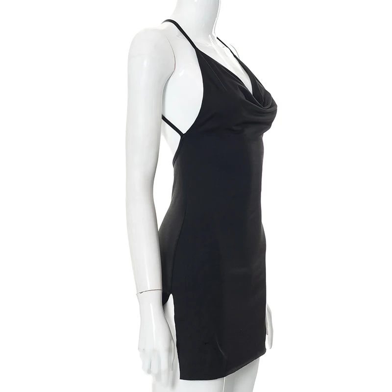 victoria’s vogue Women 2022 Spring/Summer New Sling Sexy Slim Swing Collar Split Solid Color Versatile Dress Women