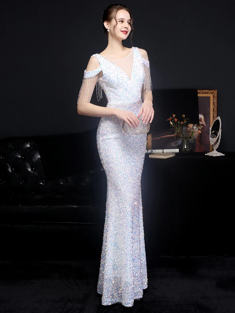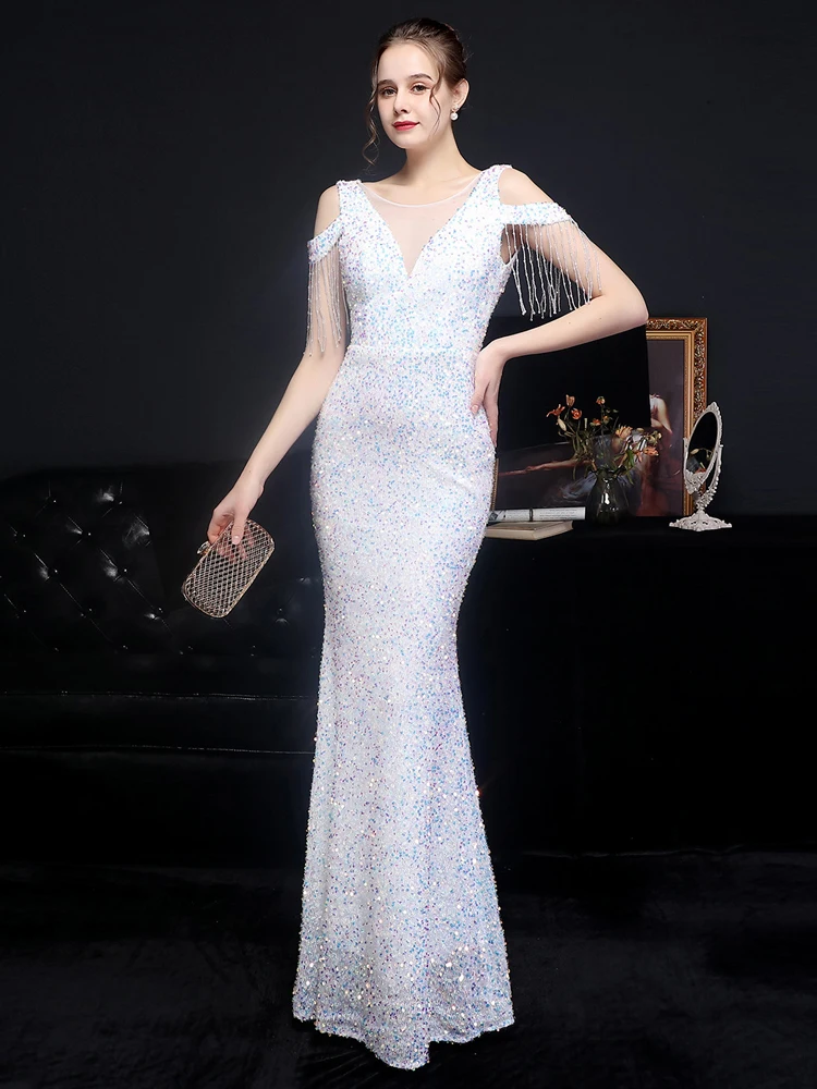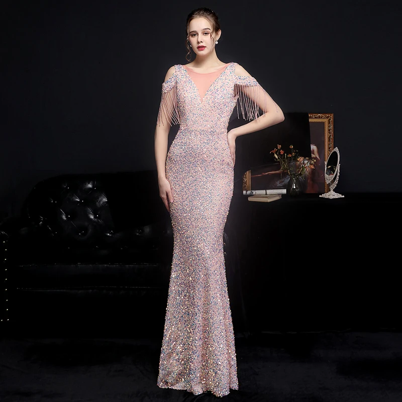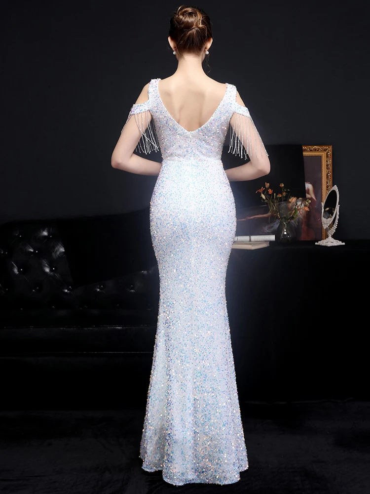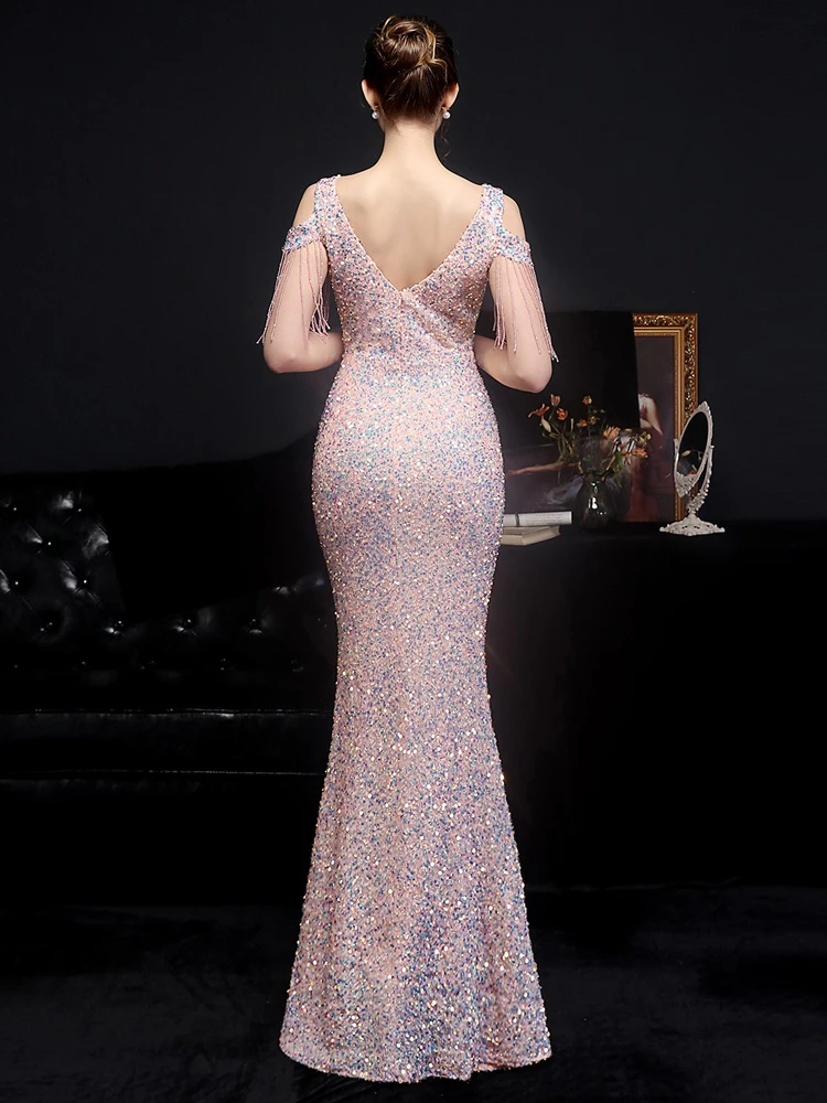 victoria’s vogue Women 2022New Off Shoulder Party Bodycon Maxi Dress Elegant V Neck Gold Sequin Evening Dress 18580