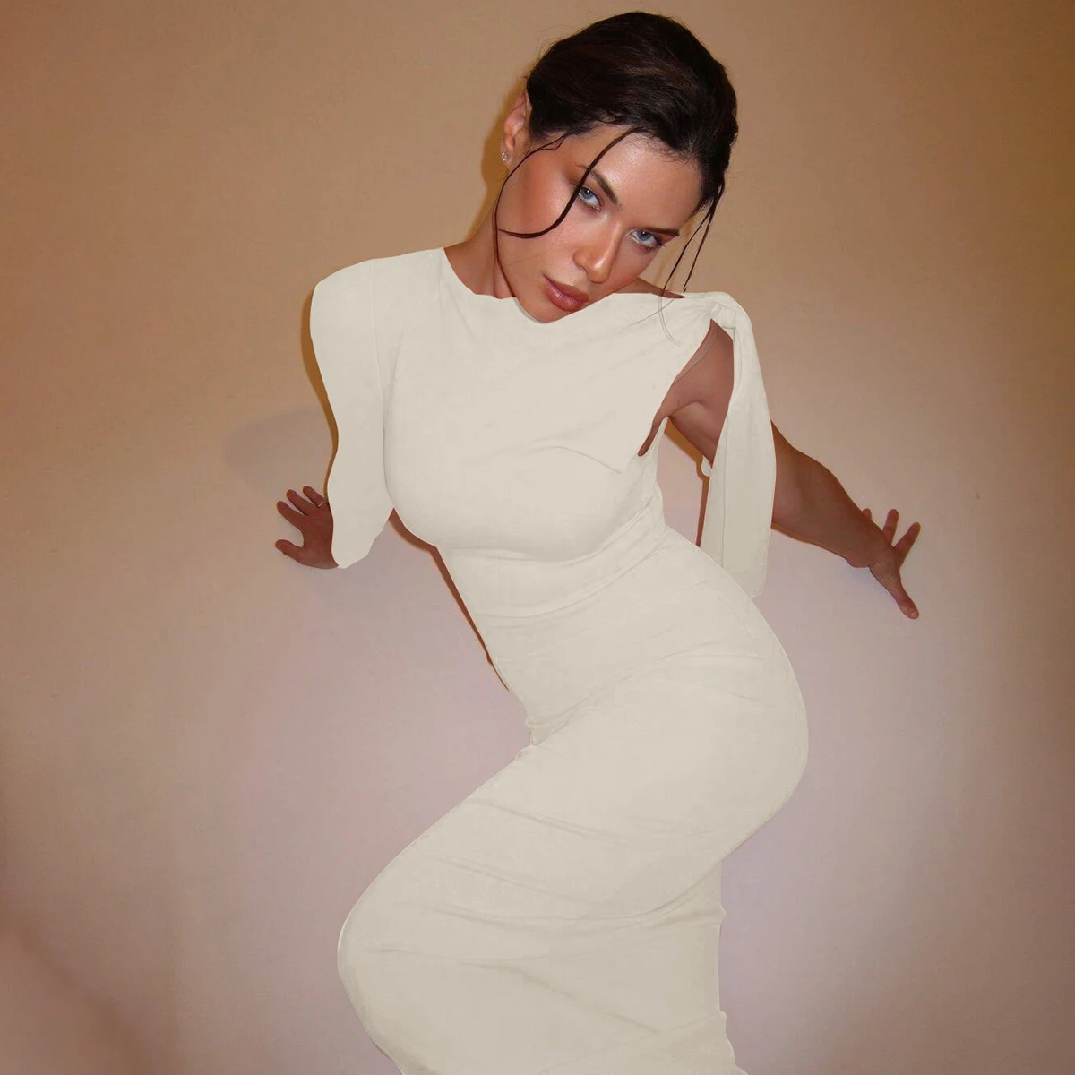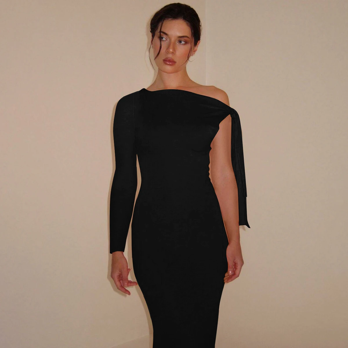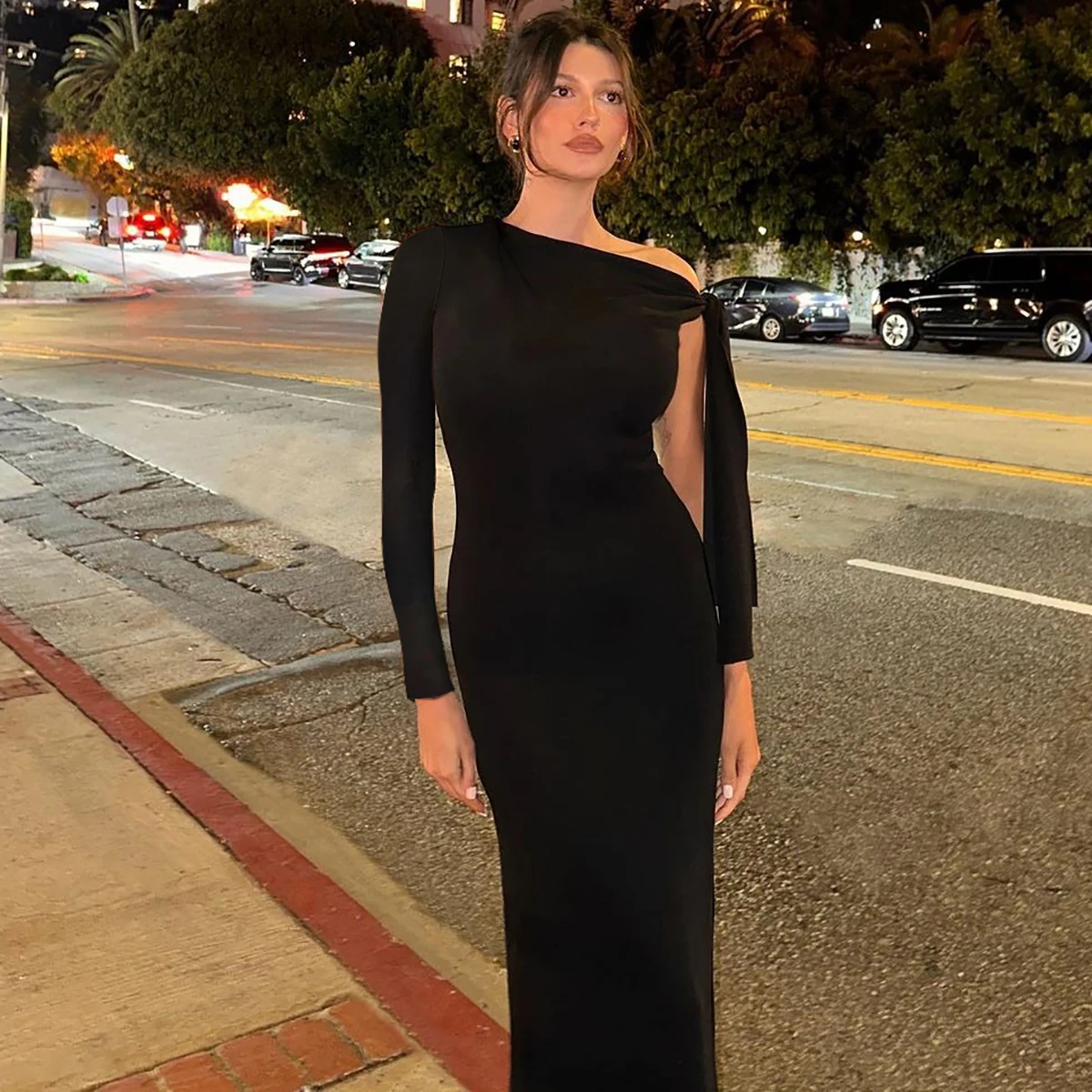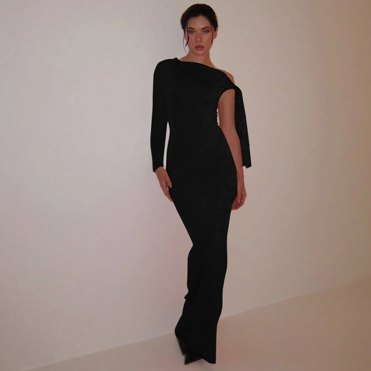 Victoria’s Vogue Women 2024 Spring Autumn Long Sleeve Party Club Evening Bodycon Basic Black Long Dress Wholesale Items For Business