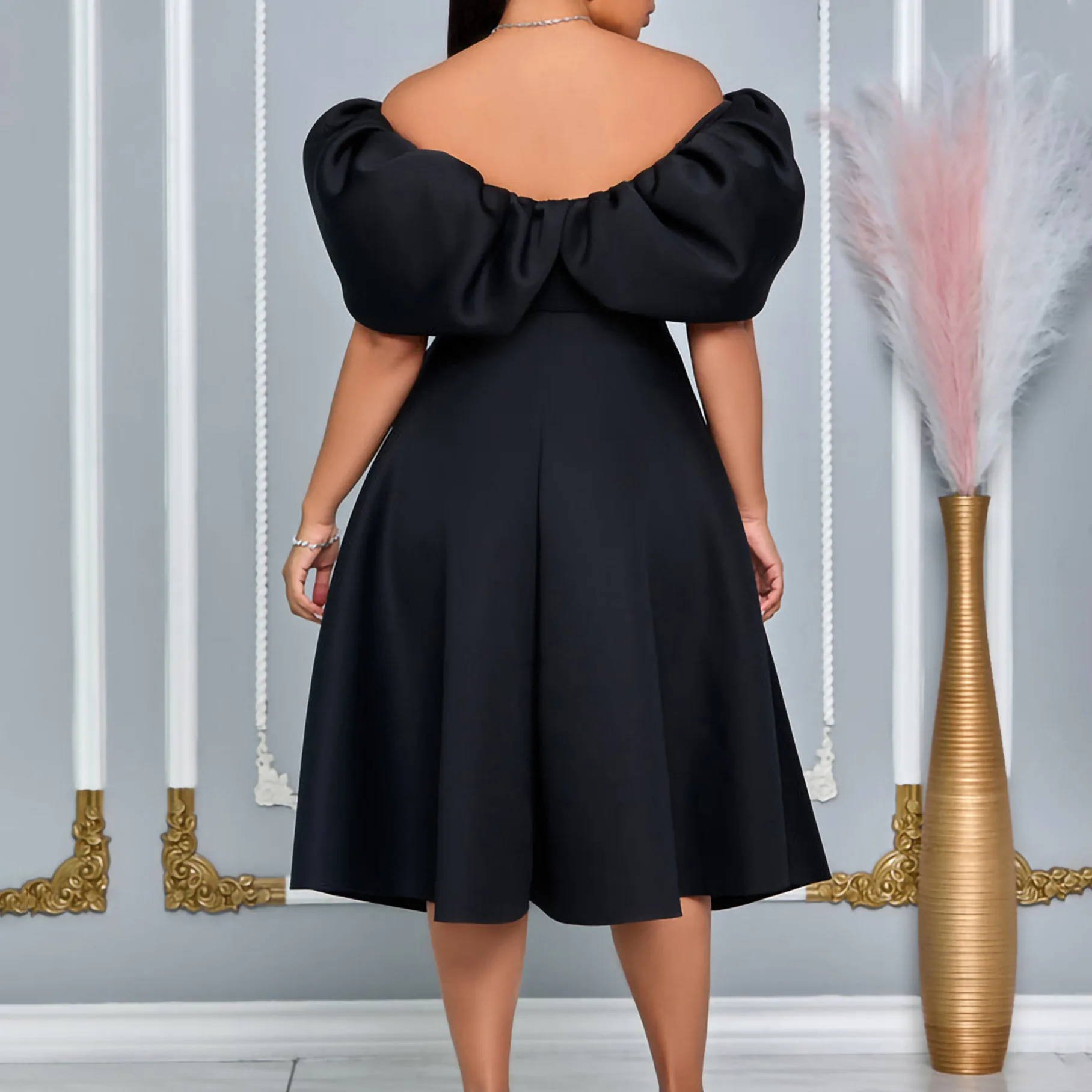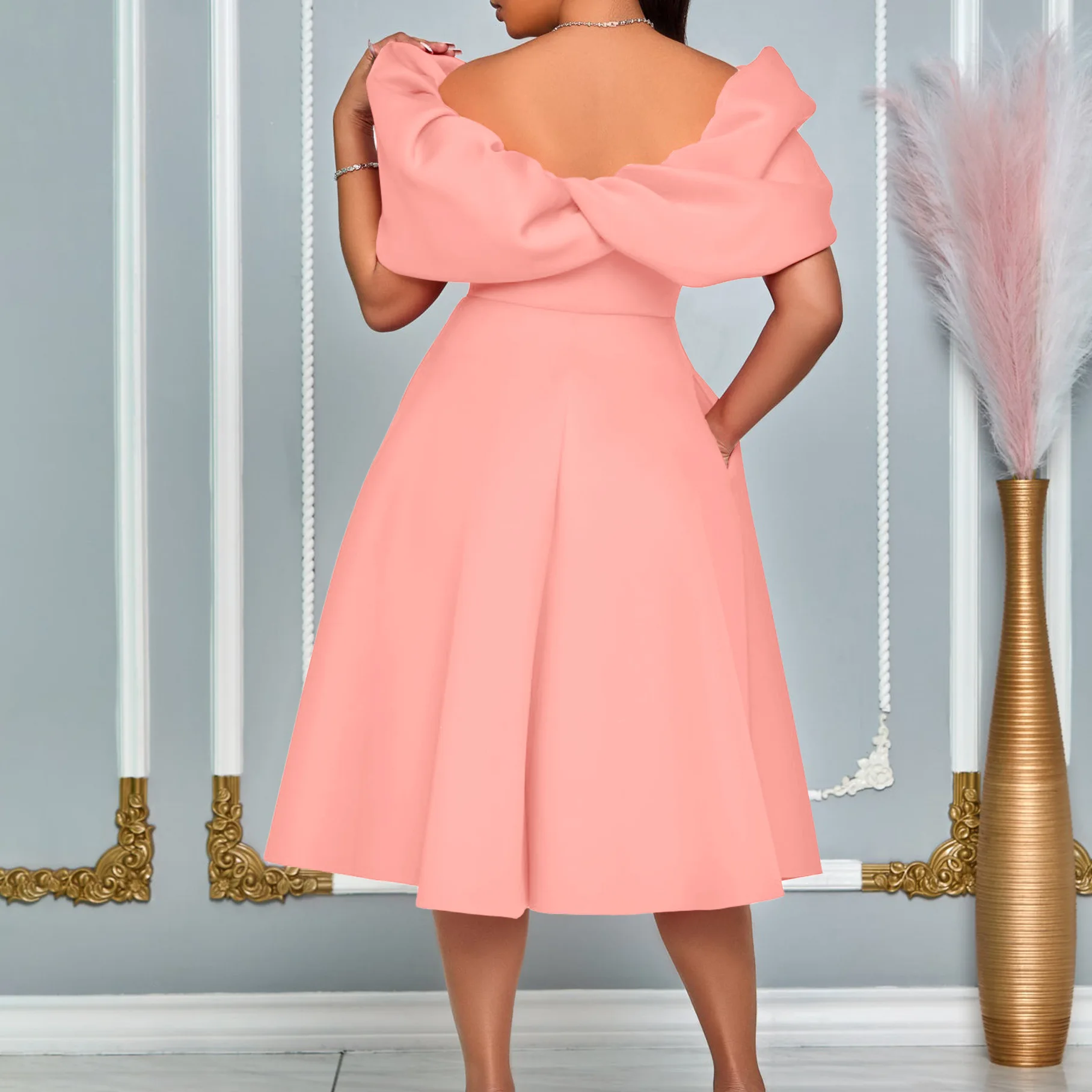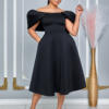 Victoria’s Vogue Women A Line Pleted Party Dress Elegant Short Sleeves Off Shoulder African Female Birthday Robes Occasion Wedding Guest Classy