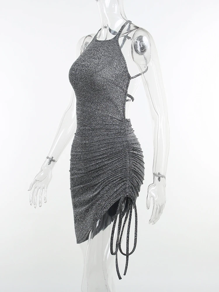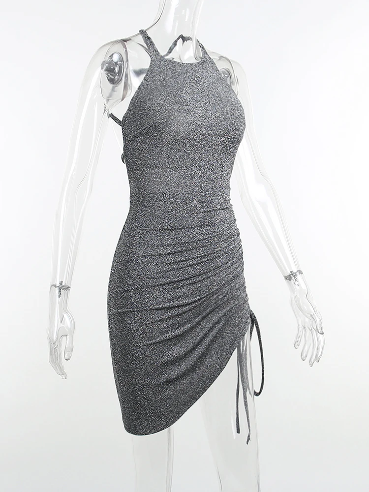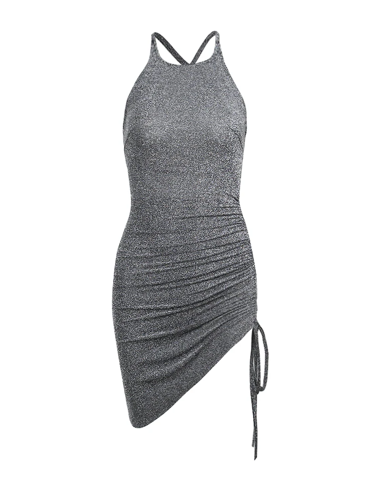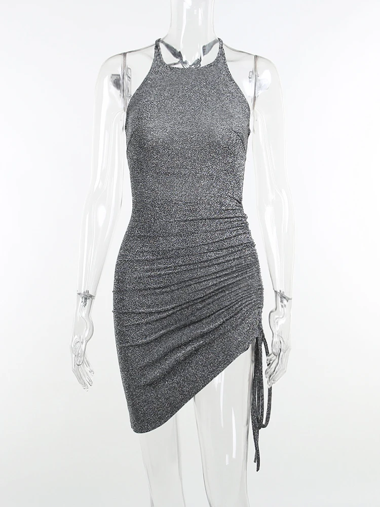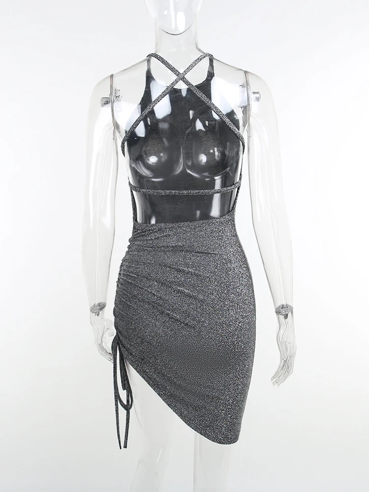 victoria’s vogue Women Backless Party Dress Knit Clubwear Bling Sequin Asymmetrical Sexy Bling Sequin Sleeveless Elegant Mini Dresses