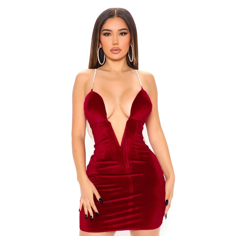 victoria’s vogue Women Deep V Neck Pleated Dress Sexy Slim Sleeveless Club Clothes 2022 Spring Solid Backless Spaghetti Strap Dress